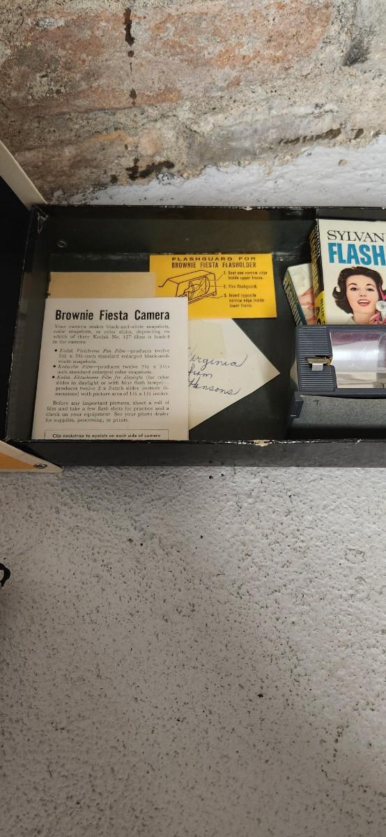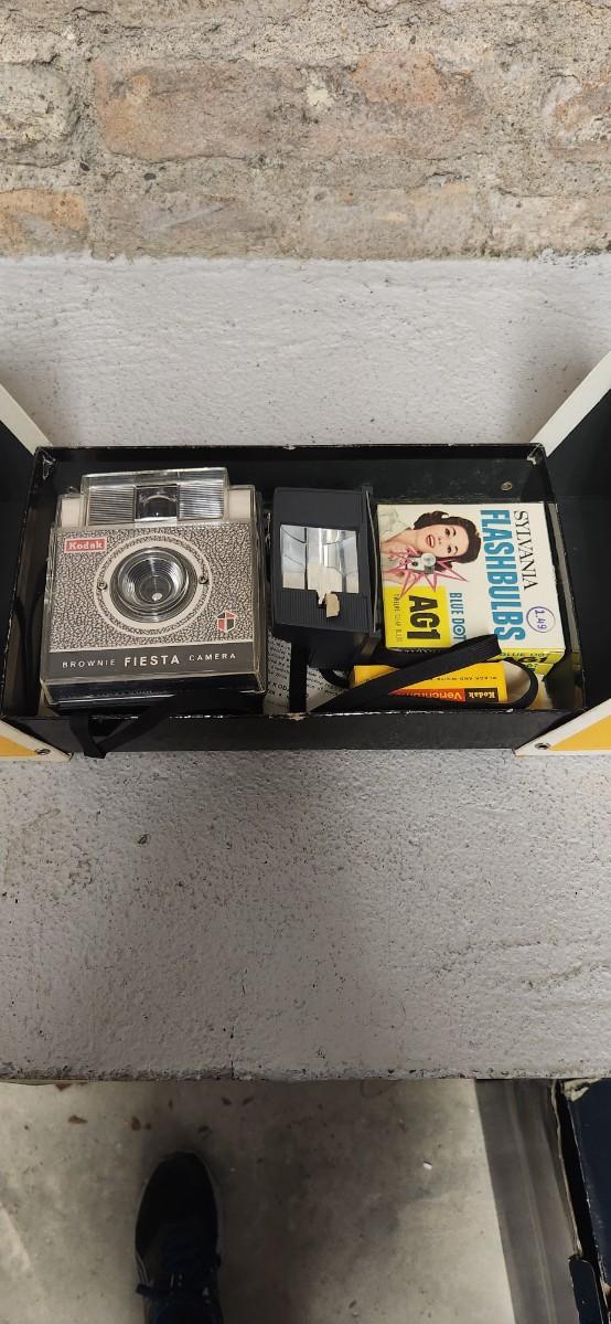 Kodak Brownie Fiesta in box with extras. Fits in medium flat rate box.
