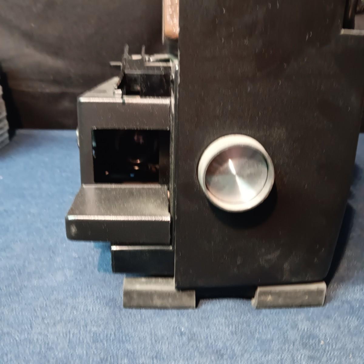 LAMP IS GOOD AND PROJECTOR SEEMS TO WORK WELL BUT IS MISSING THE REEL PIN