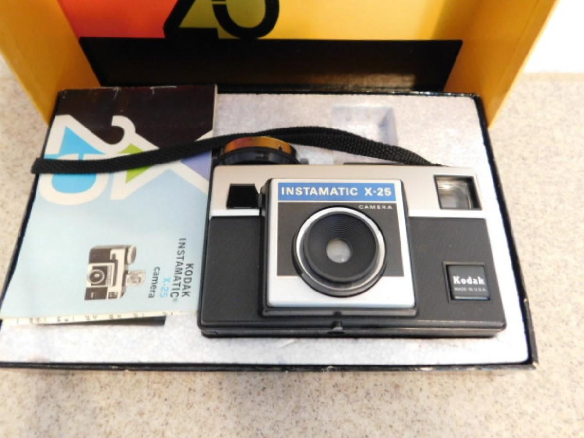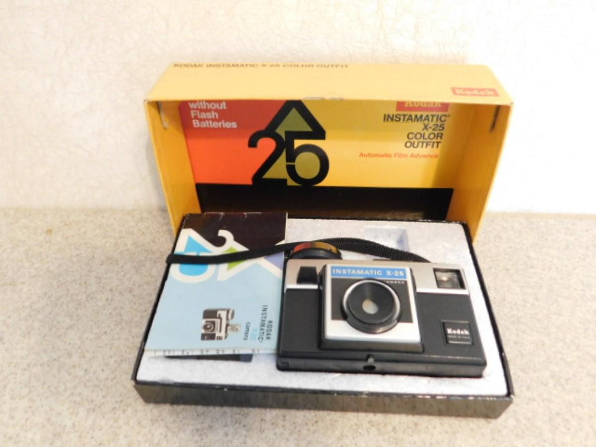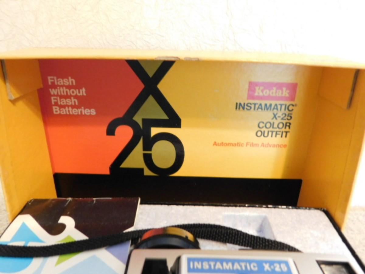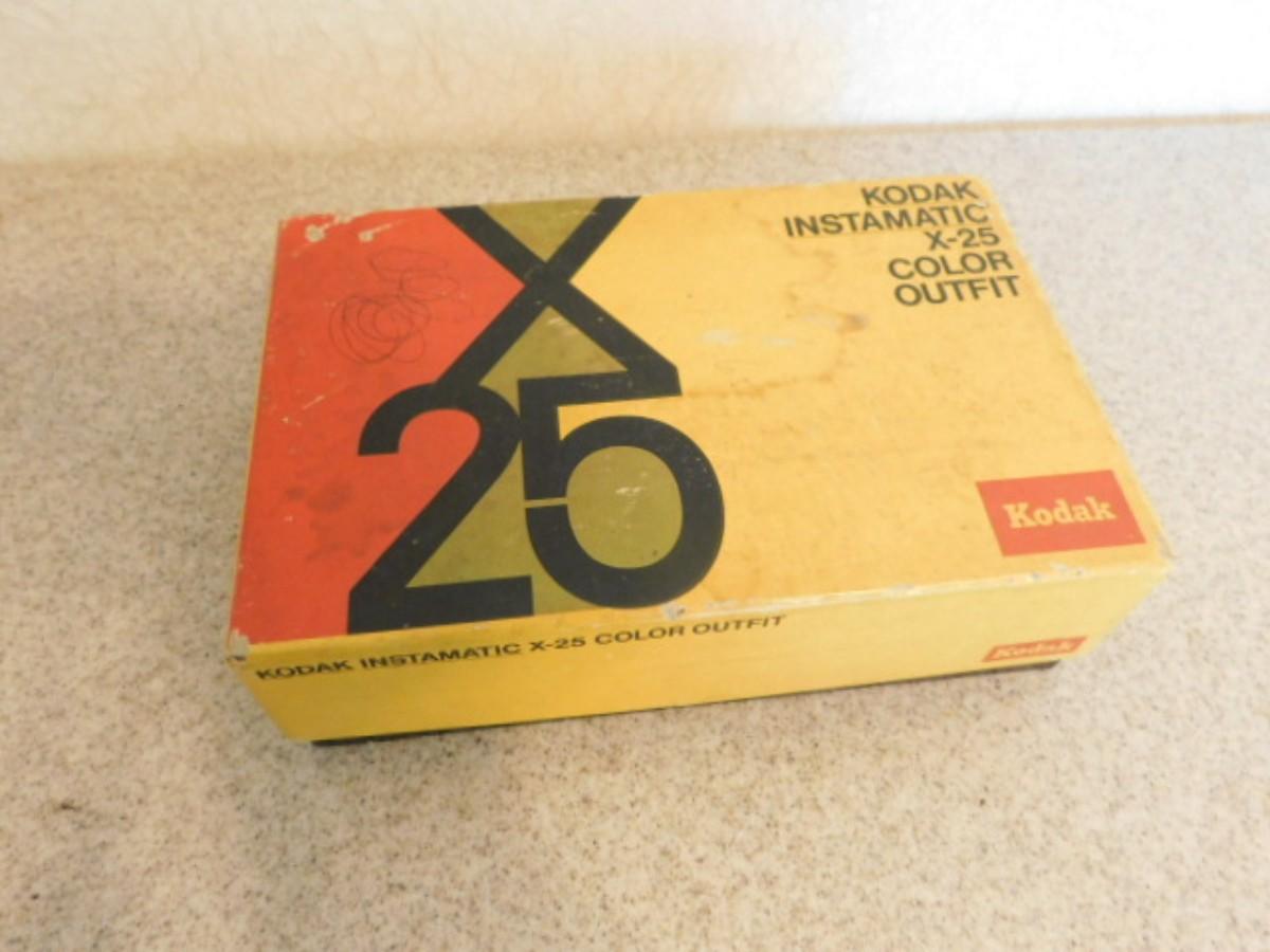 Kodak Instamatic X-25 Color Camera in Original Box. Exterior of box has cosmetic issues as shown