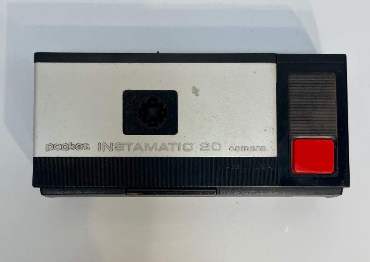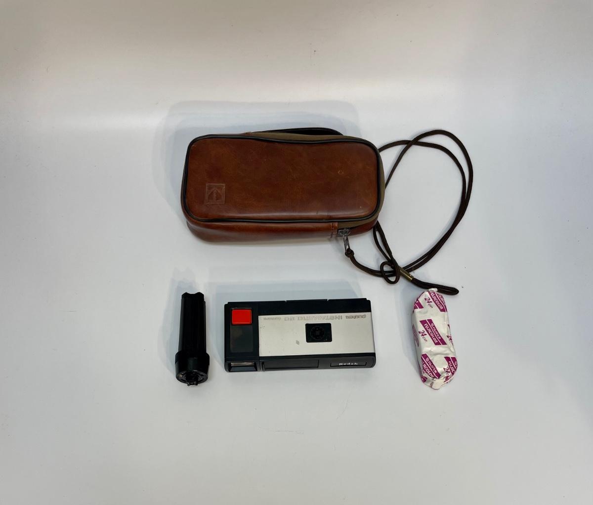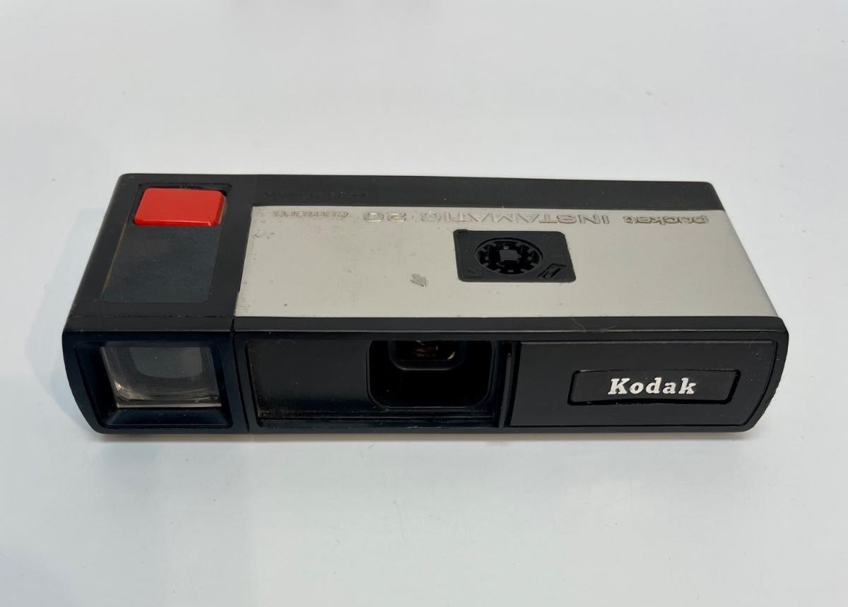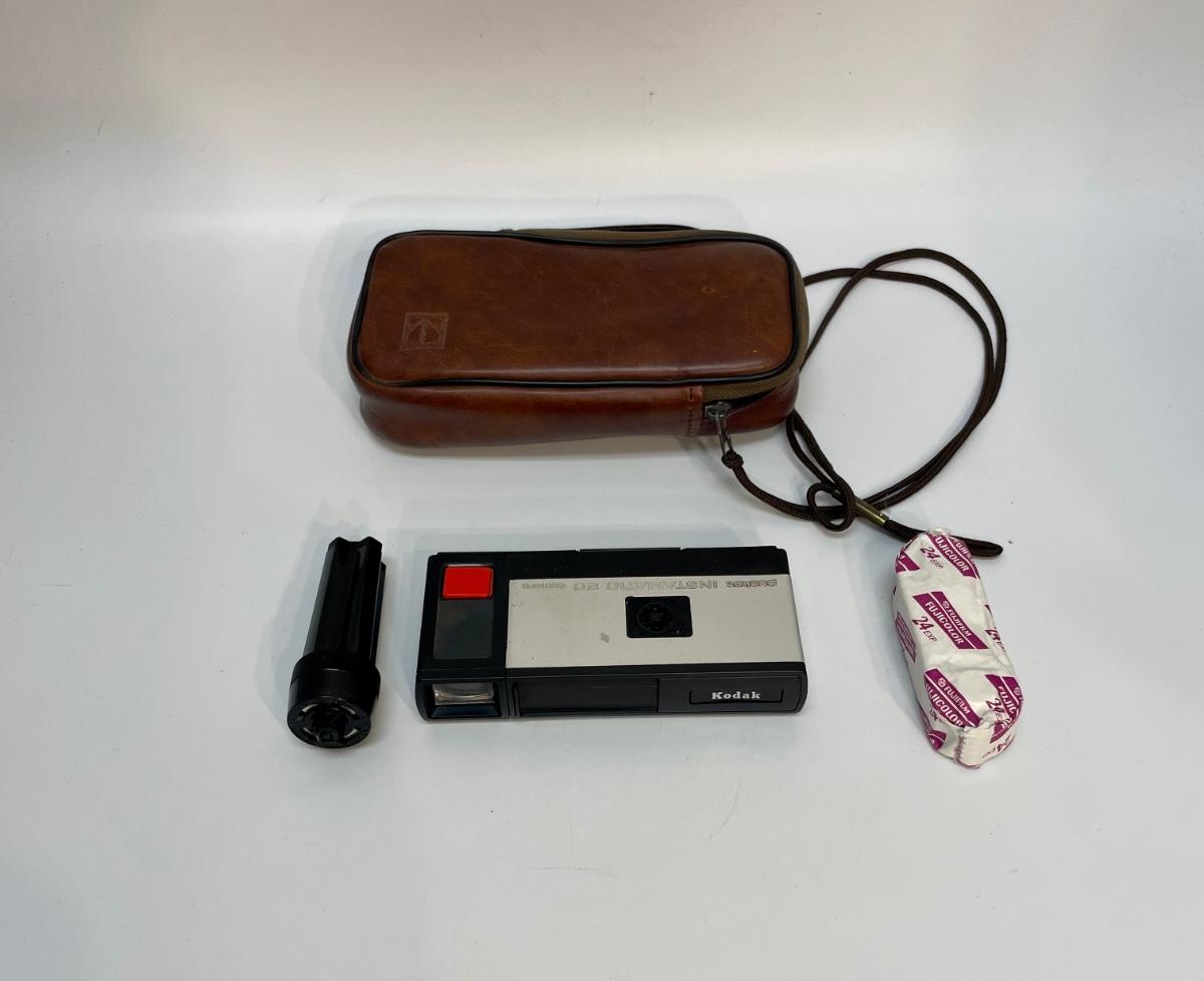 Vintage Kodak camera with 1 roll of film, magic cube flash attachment, and zippered case. Uses 110 24 exposure film cartridges. Camera has been tested, works fine.