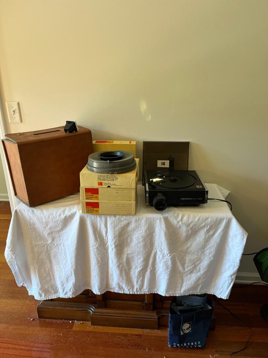 Kodak Slide Carousel Projector Model 860H and Da-Lite Silver Screen (G)