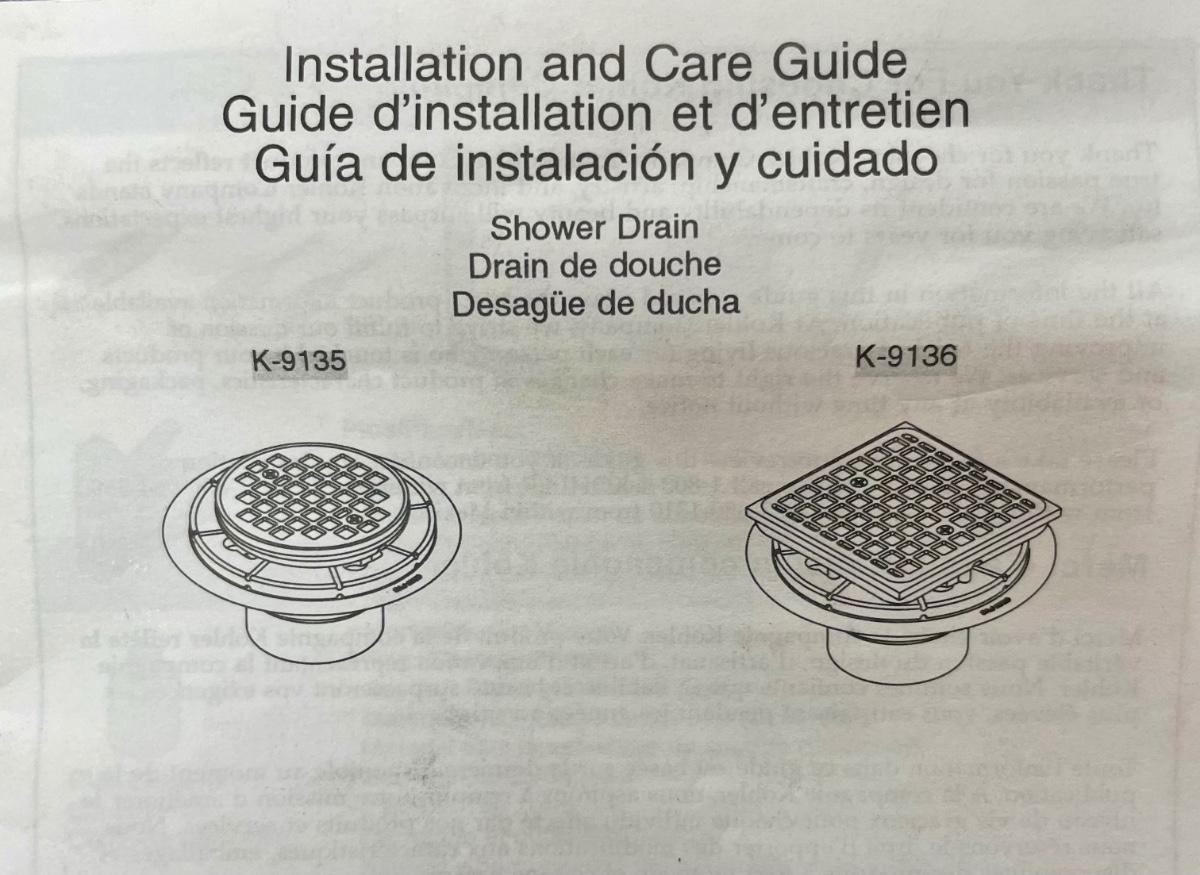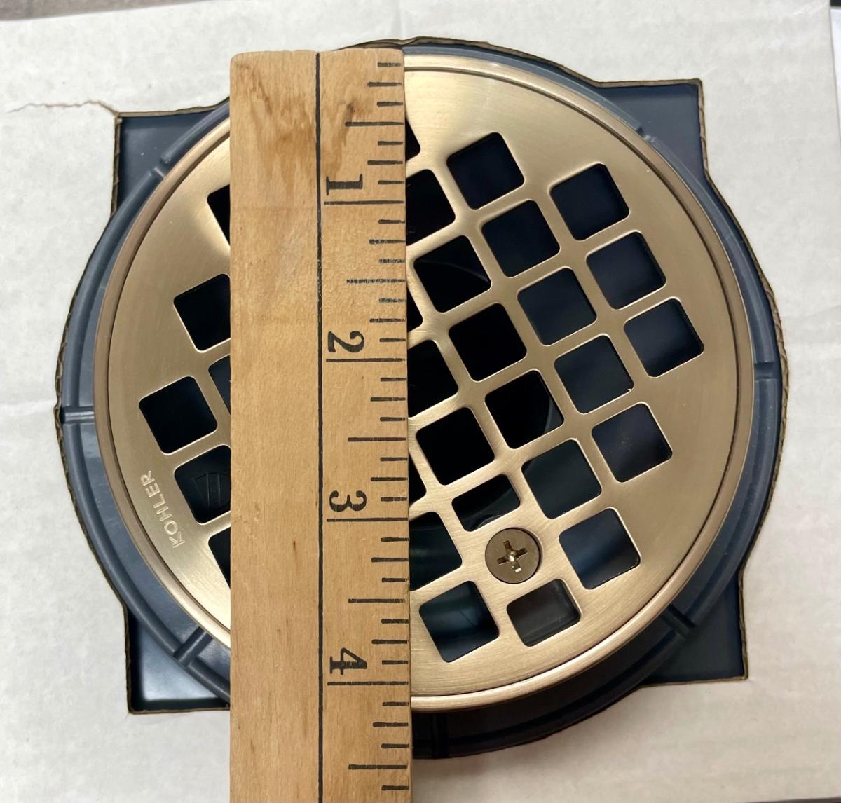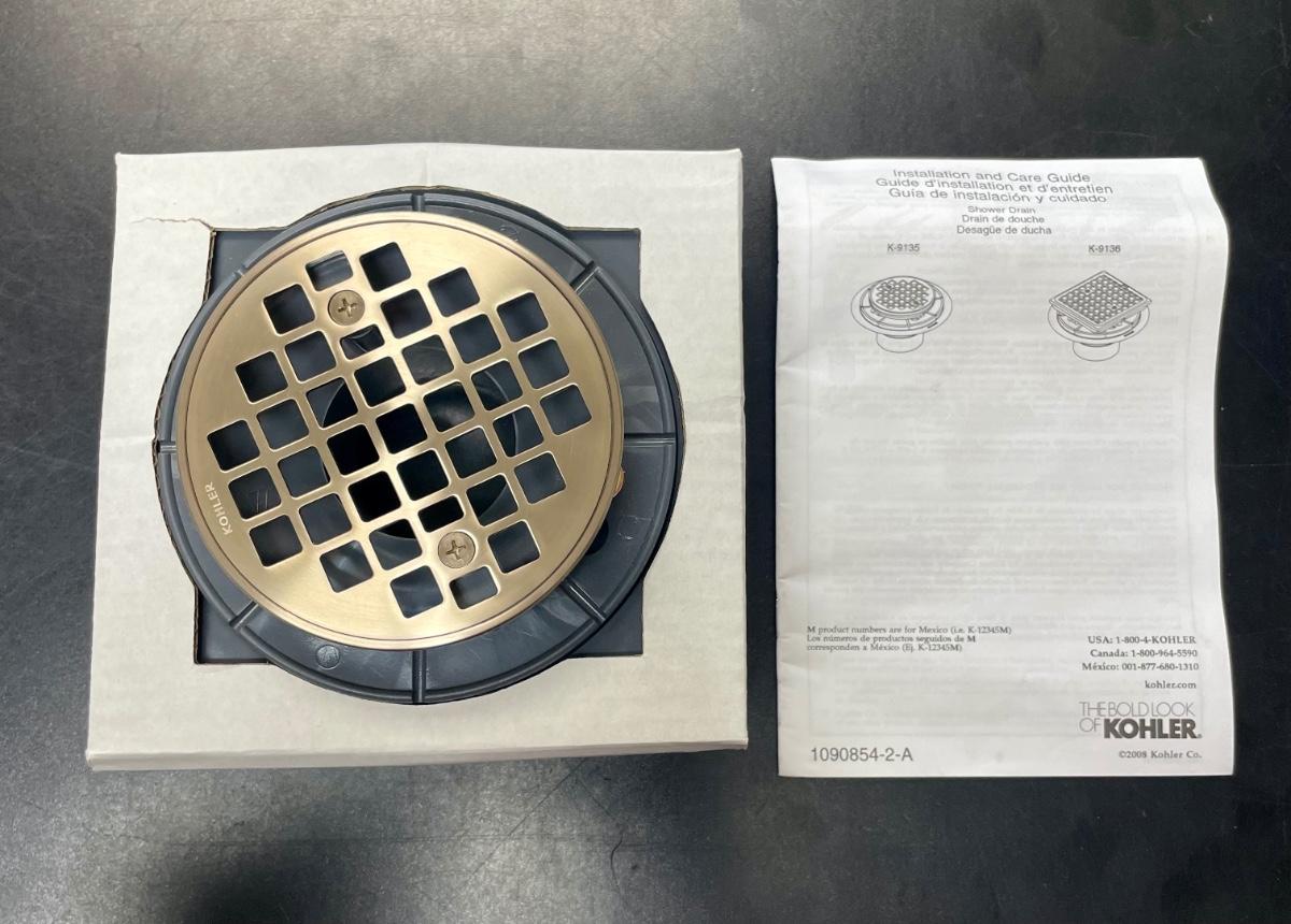 Model 9135-BV. Drain is approx. 4" across. Kit is new in box.