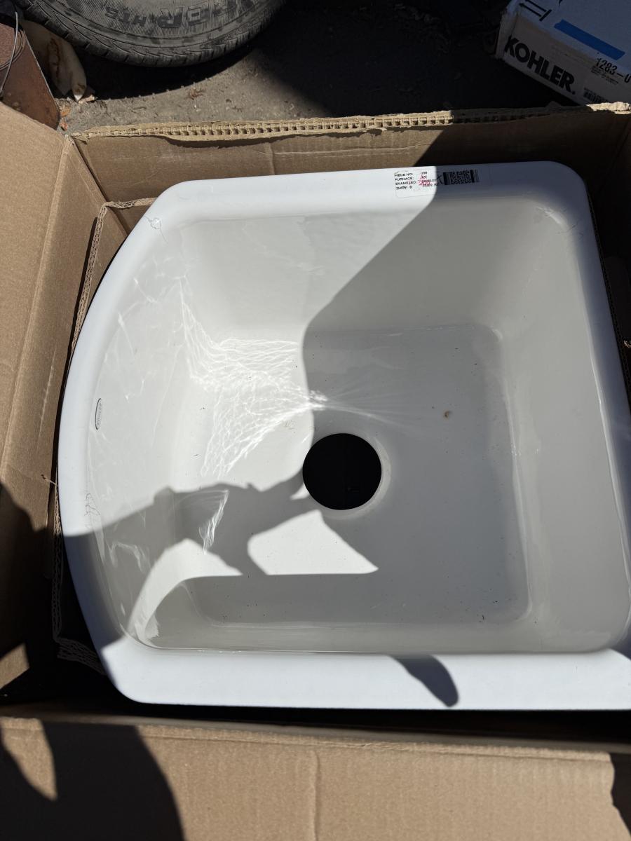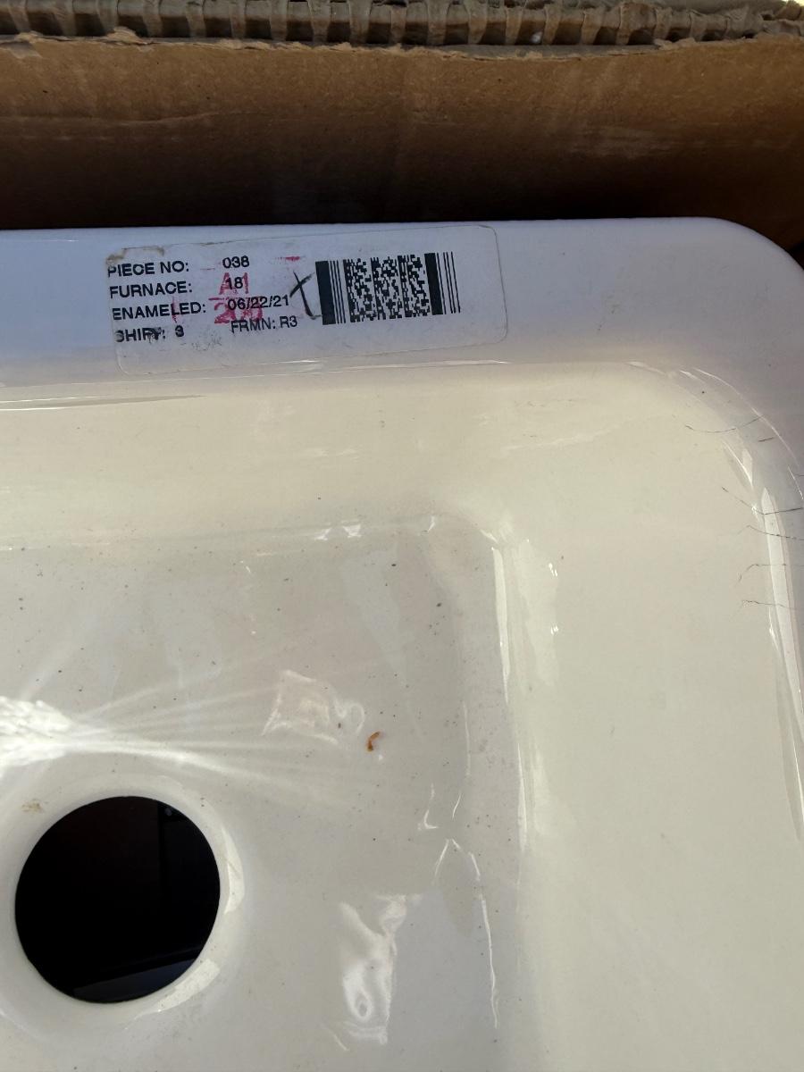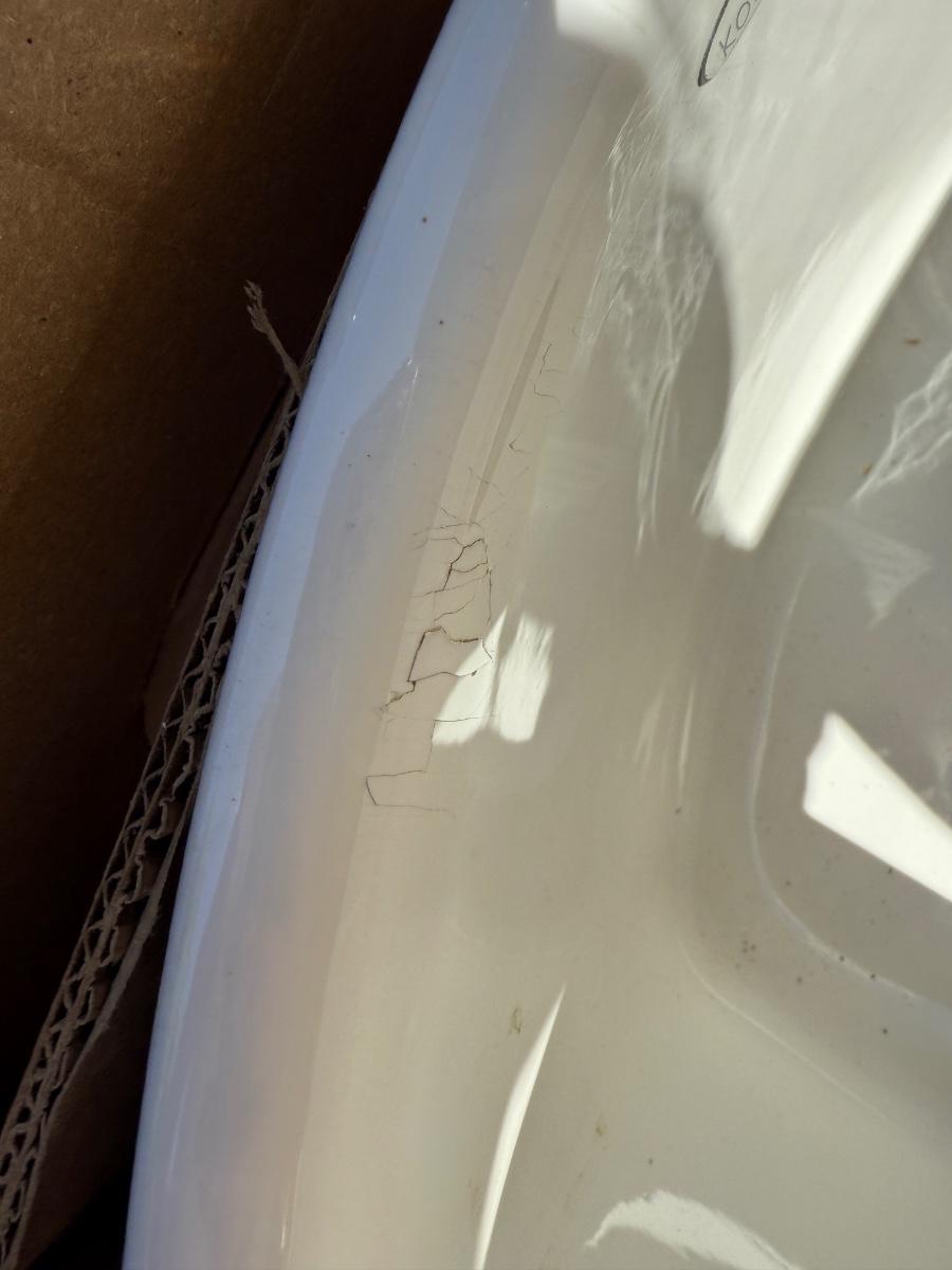 This sink is new in the box but came with 2 hair line cracks. They don’t go through. This is a great sink.