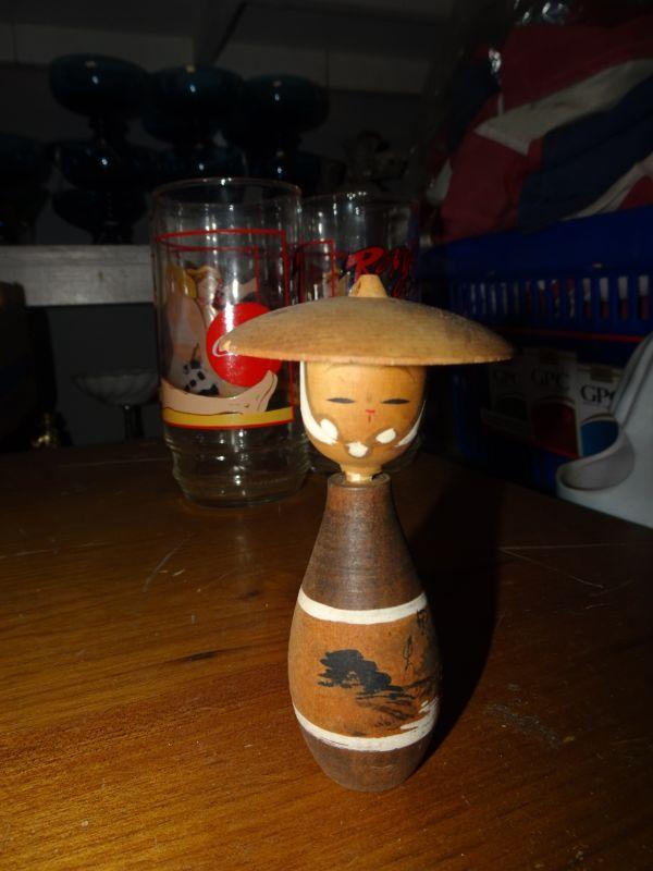 Kokeshi Wooden Doll, Hand Painted - Vintage Japanese doll