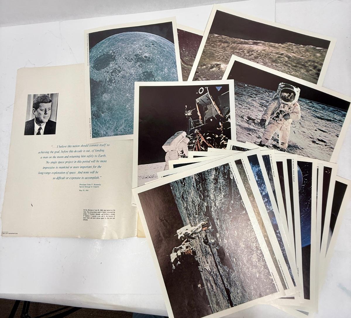 Hardback book from 1969 with a set of color photos from the famous moon missions. Good condition.