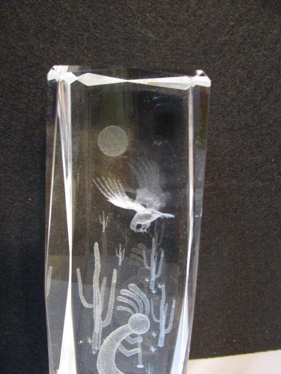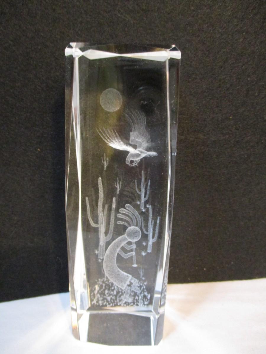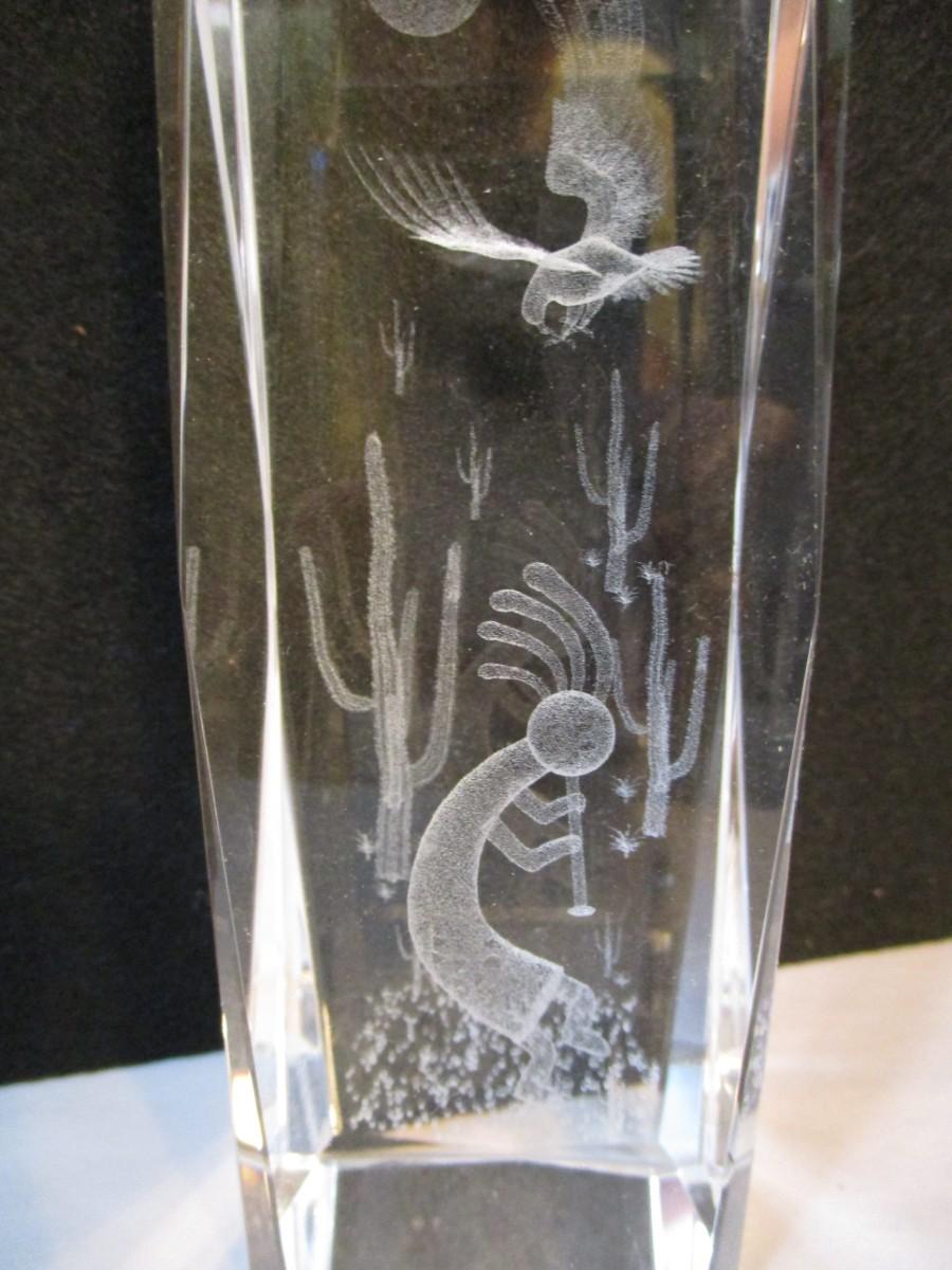 Kokopelli In The Desert With Sun 3D Etched Carved Crystal Art Glass
