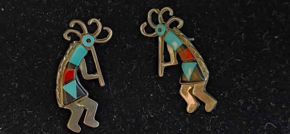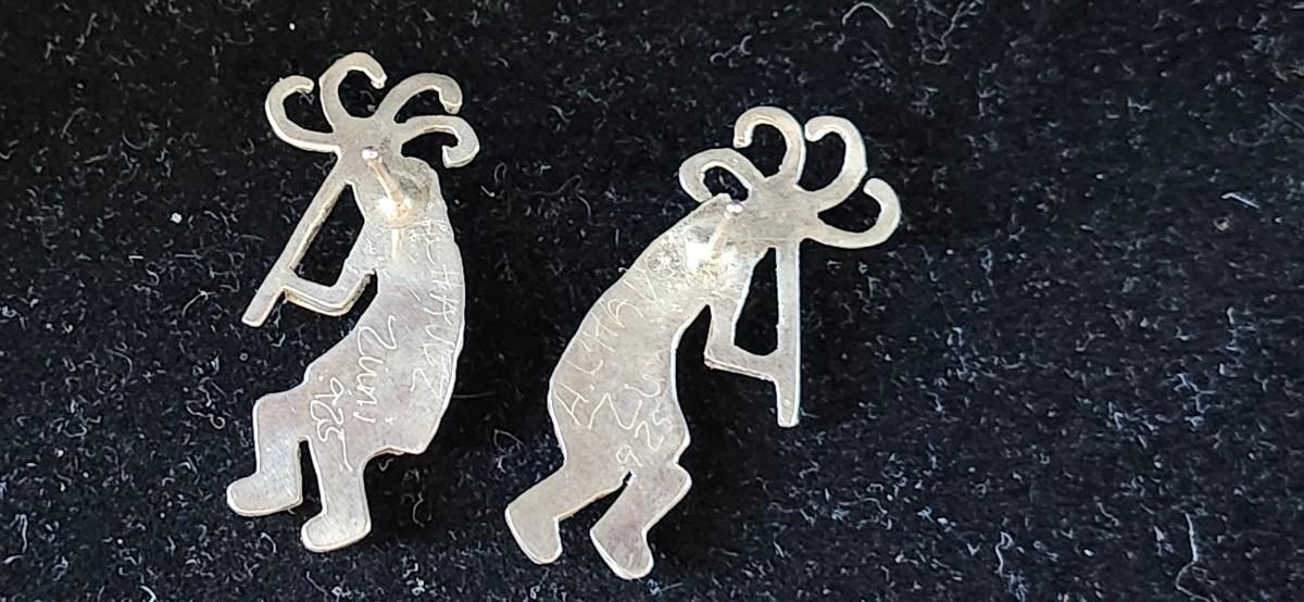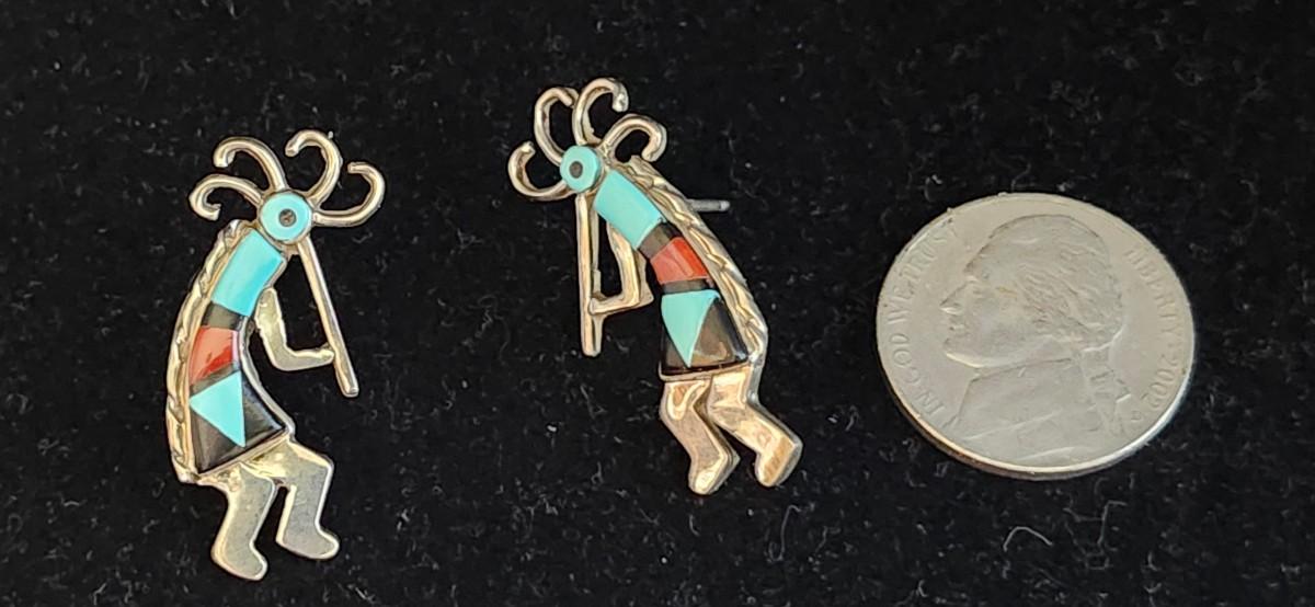 Lovely Zuni inlaid earrings, signed A. Chavez. 925 silver
