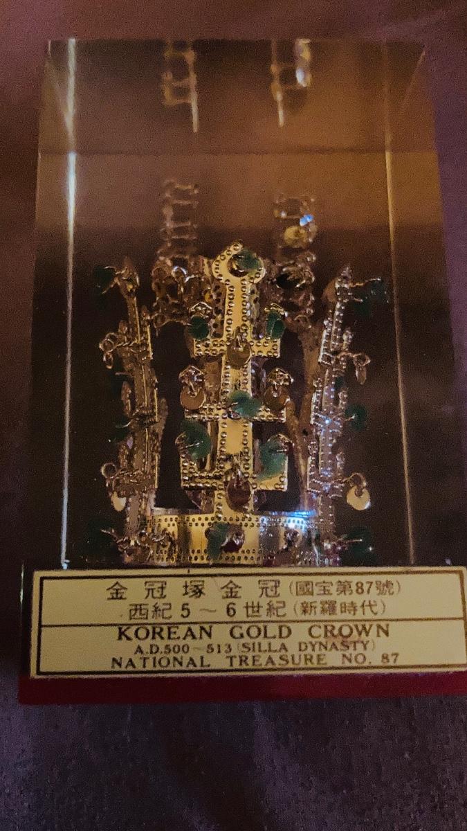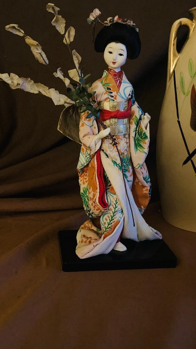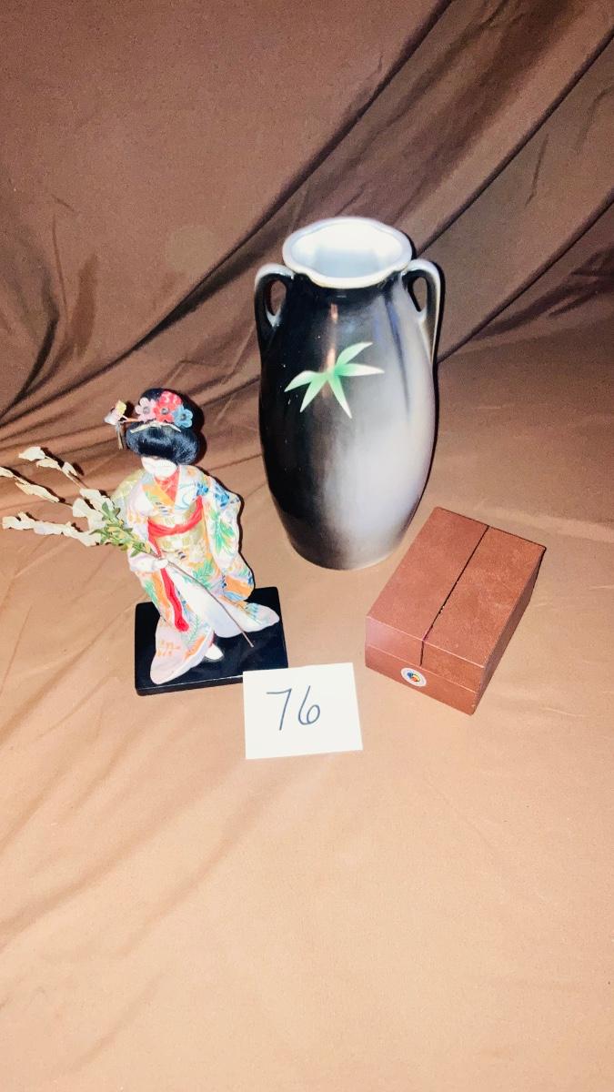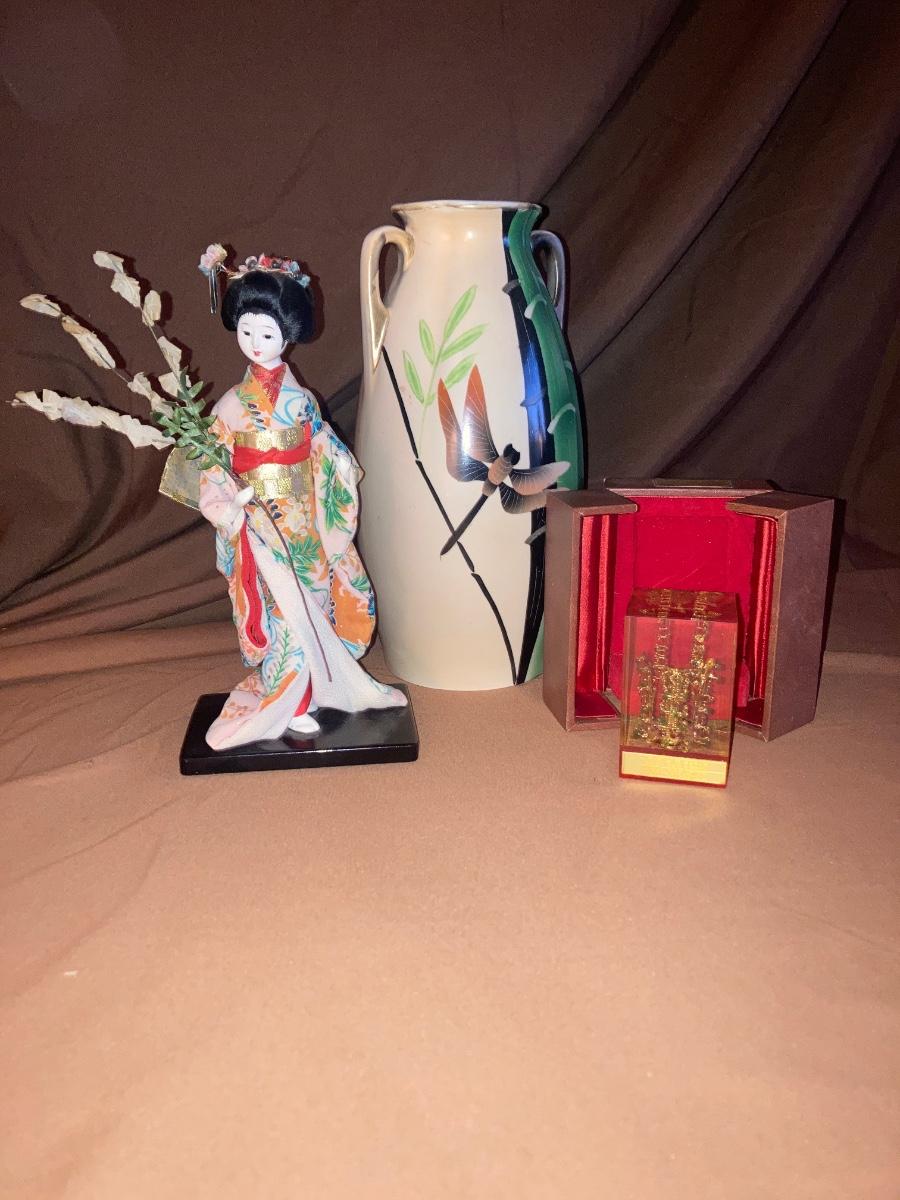 KOREAN GOLD CROWN PAPER WEIGHT, PRETTY GEISHA DOLL AND VASE