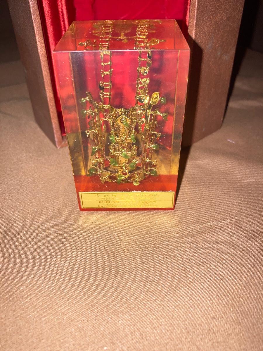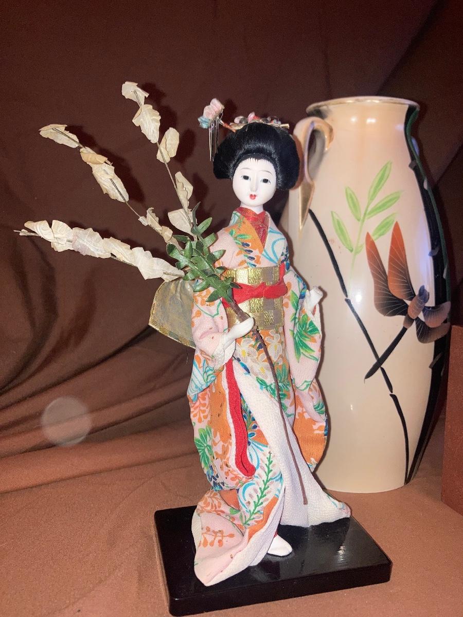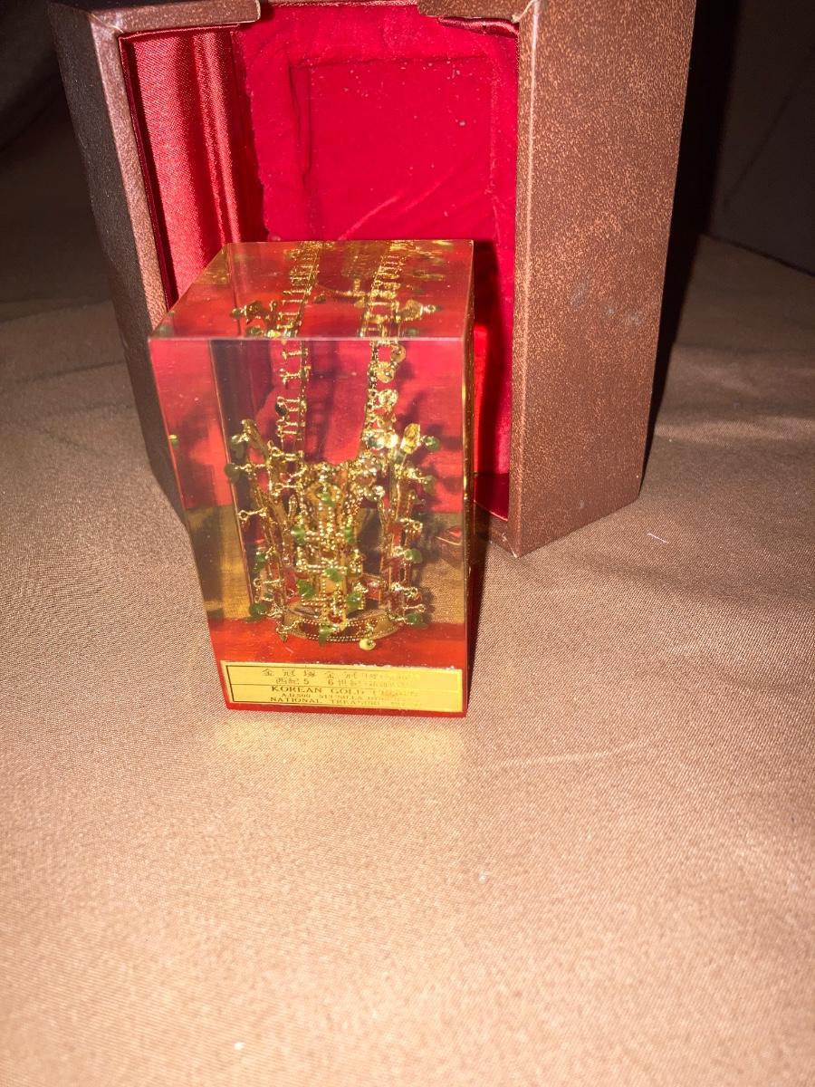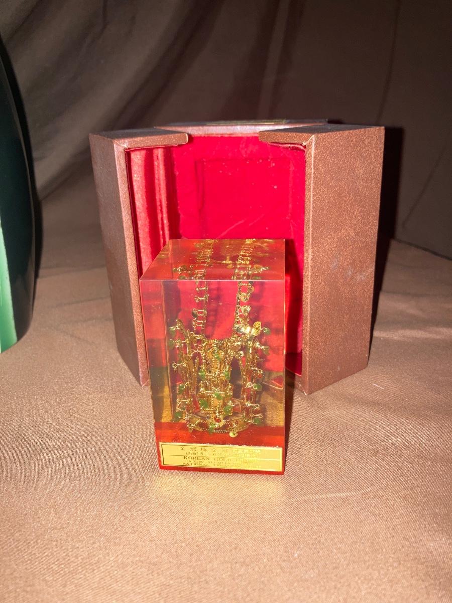 KOREAN GOLD CROWN PAPER WEIGHT, PRETTY GEISHA DOLL AND VASE