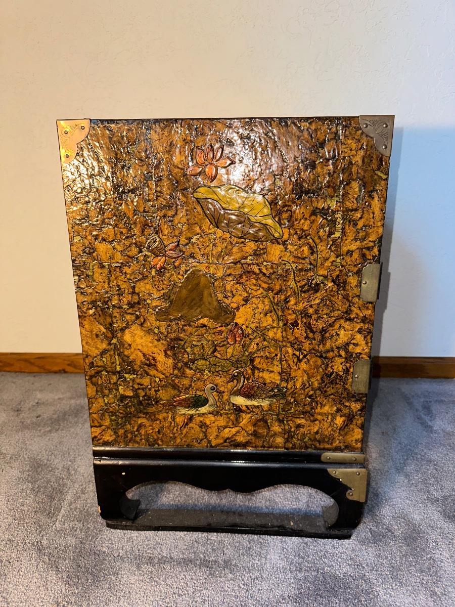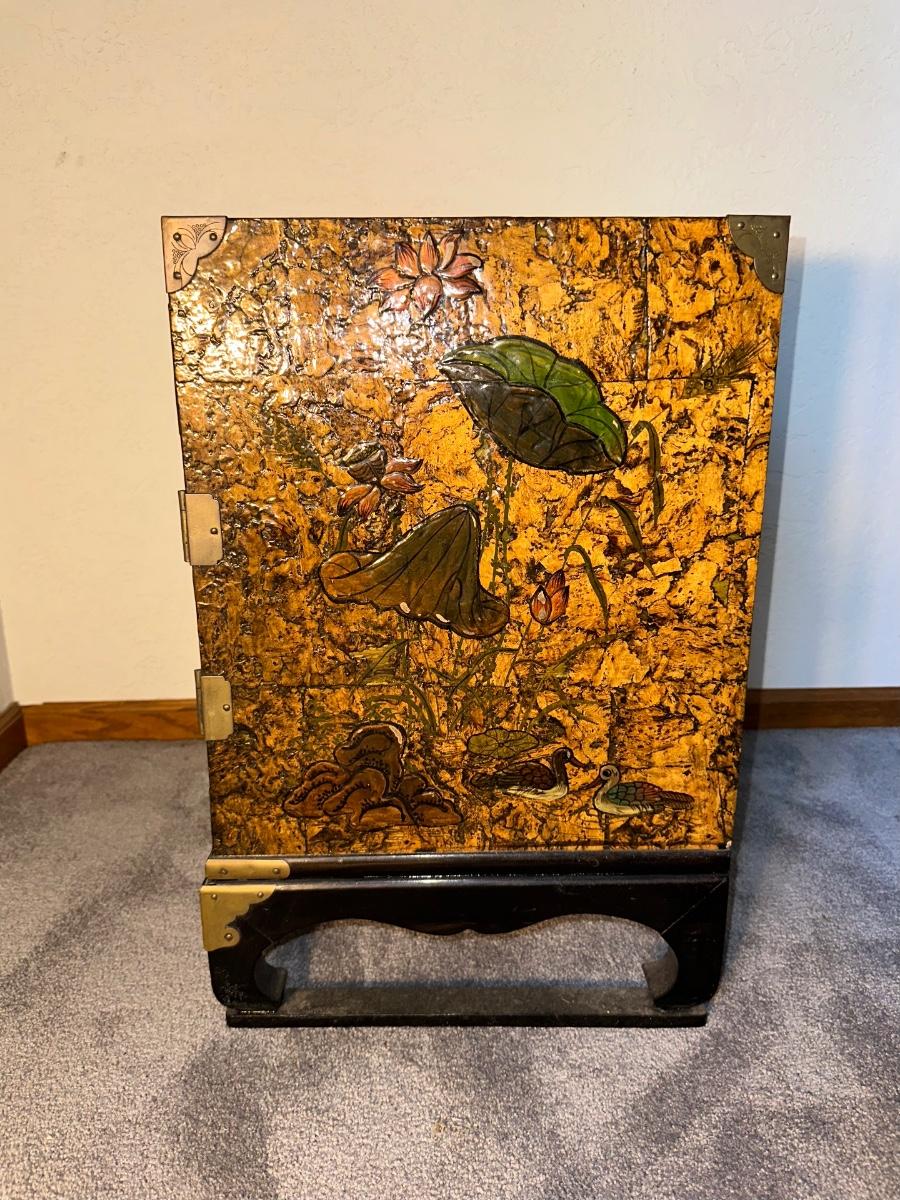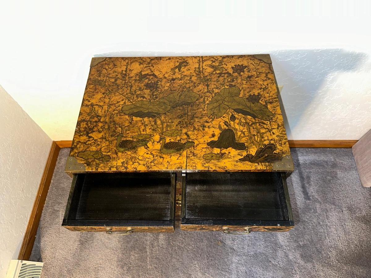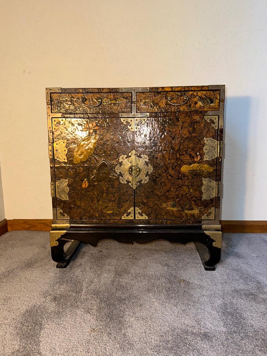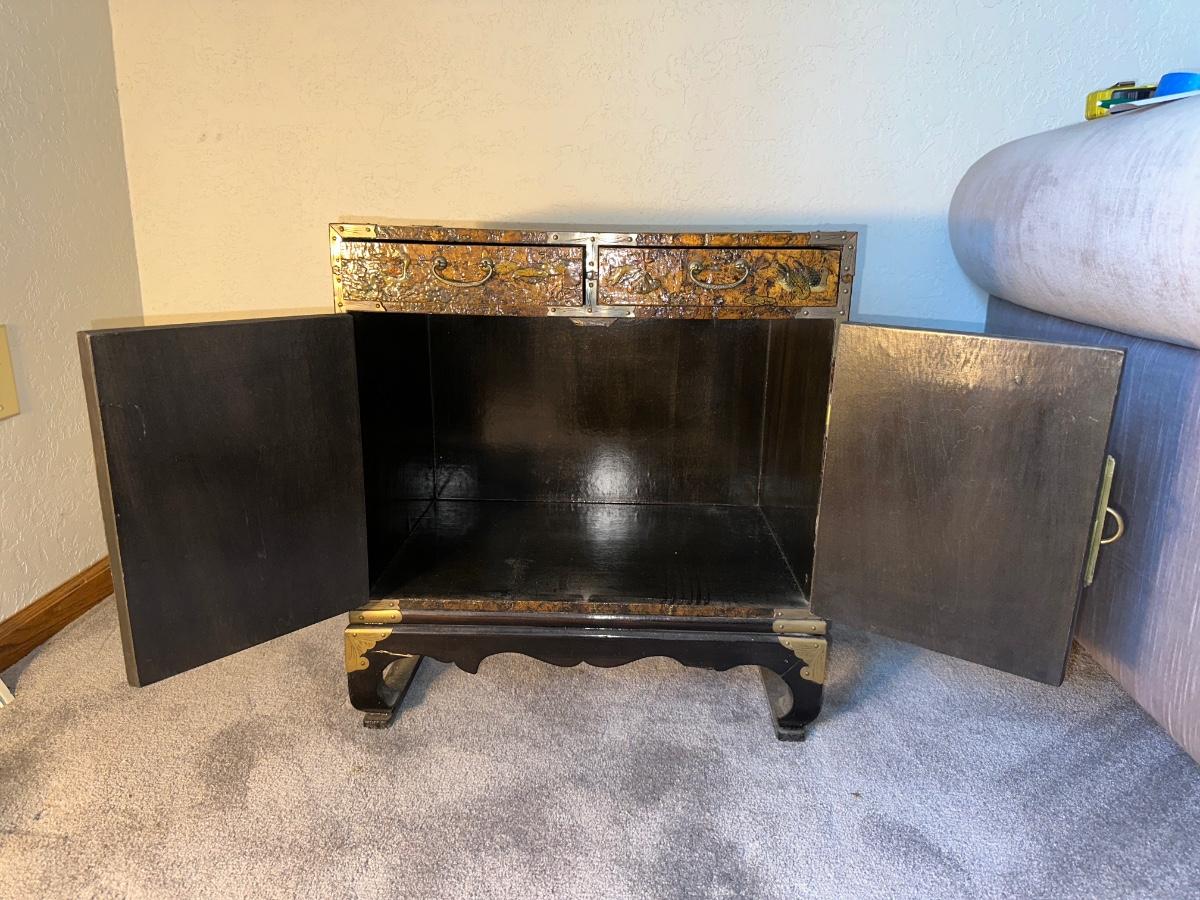 KOREAN LACQUERED END TABLE WITH 2 DRAWERS AND 2 DOOR CABINET
