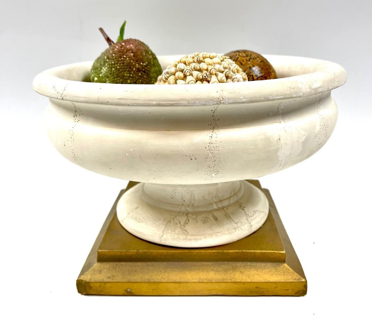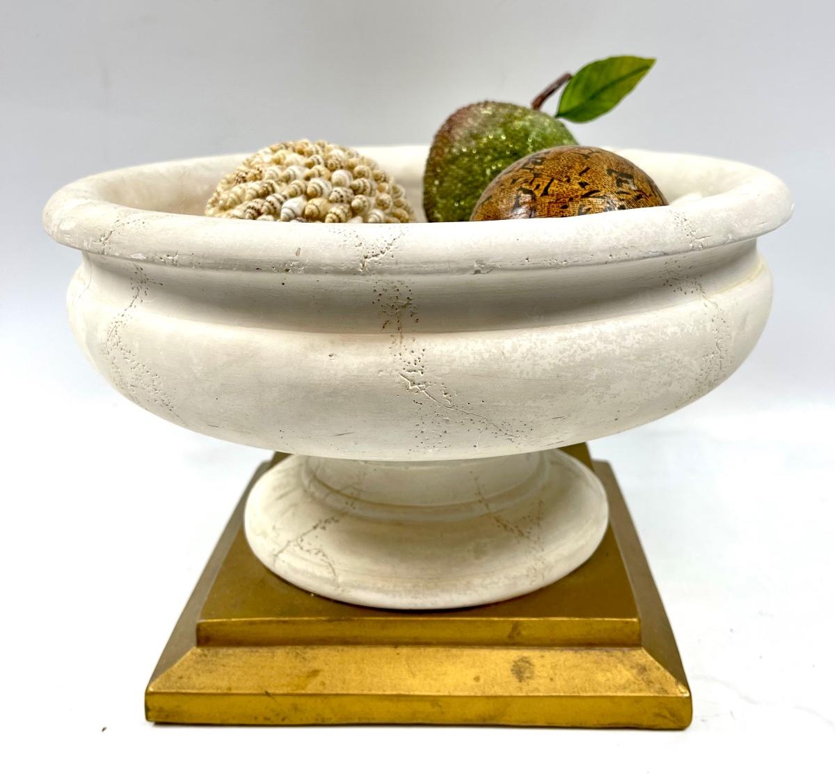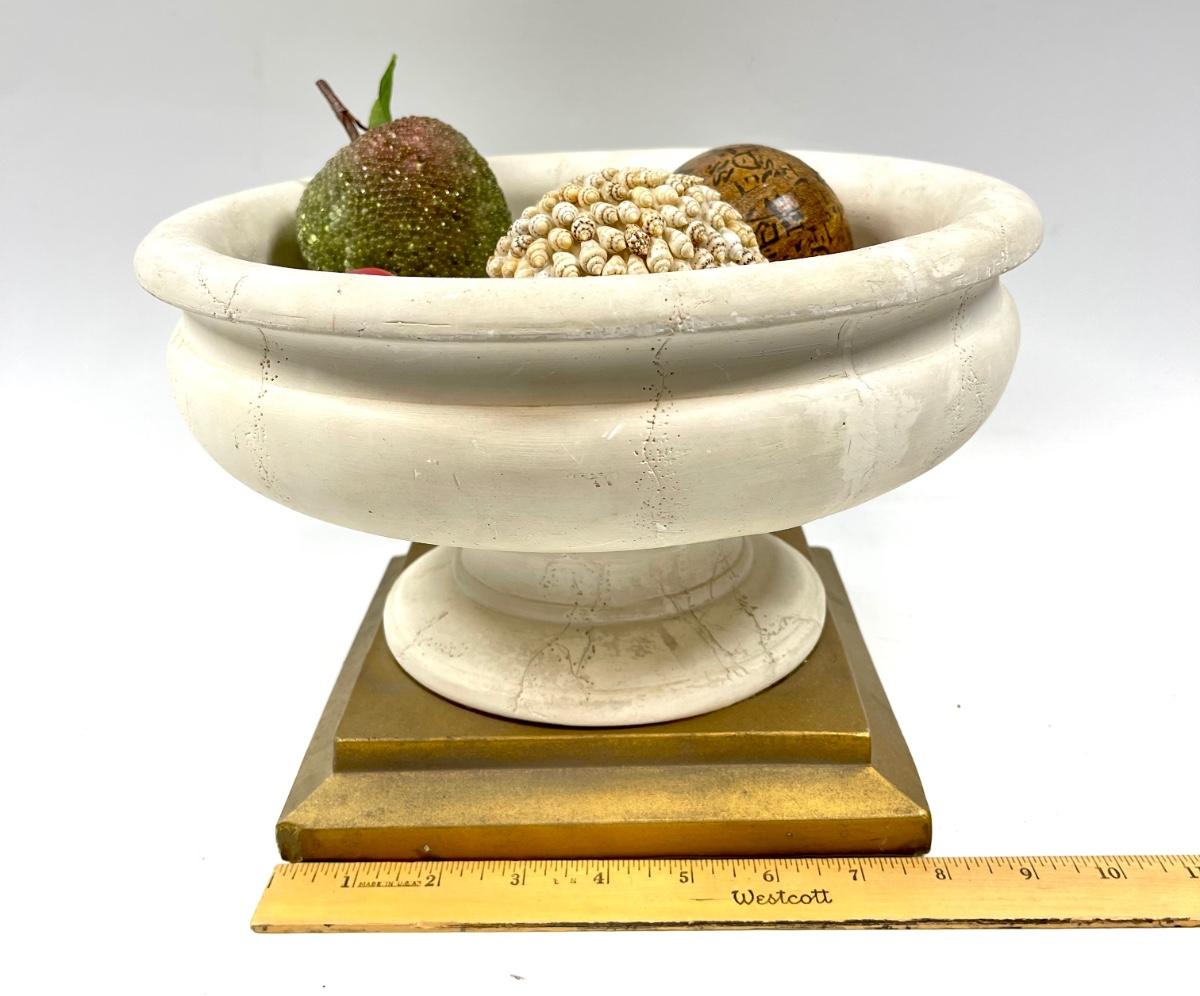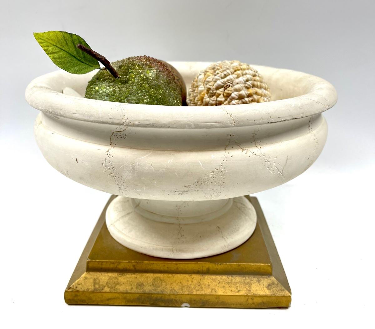 Korean Made white stone fruit bowl with gold base With fake fruit