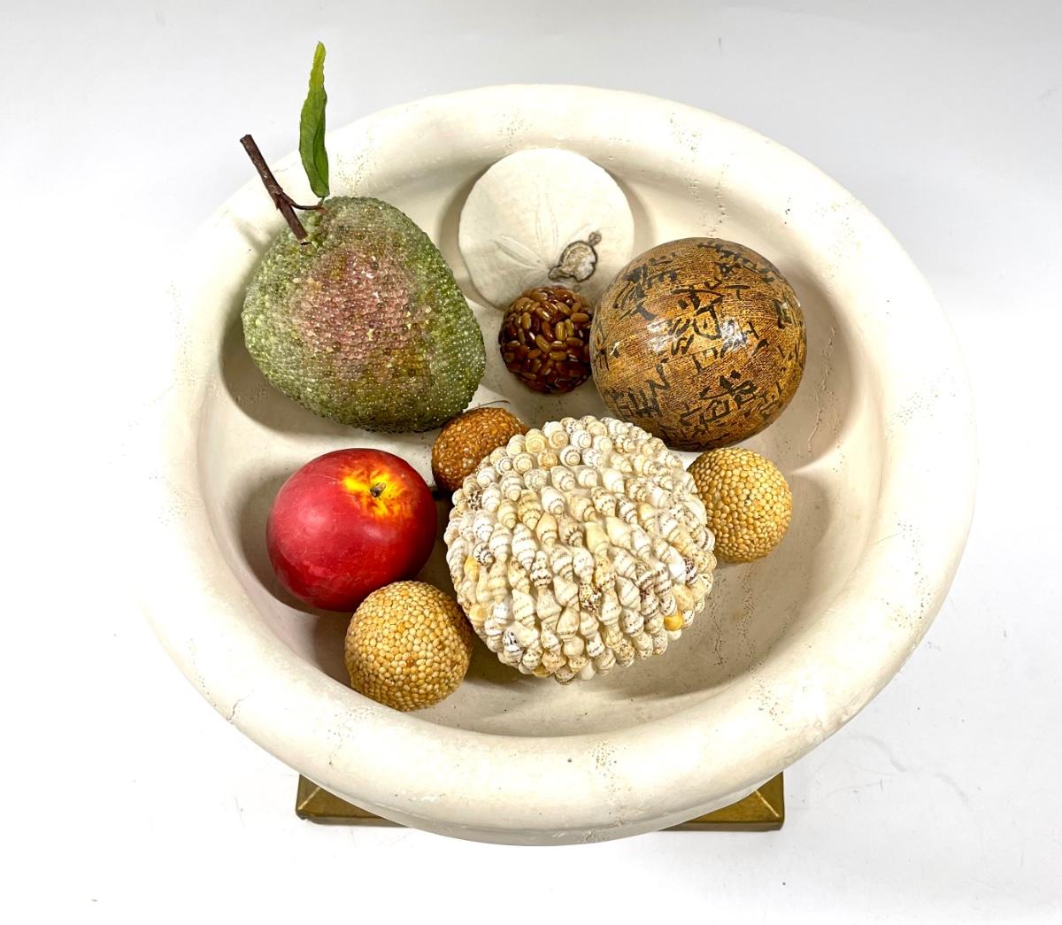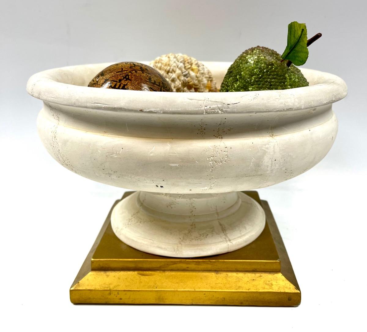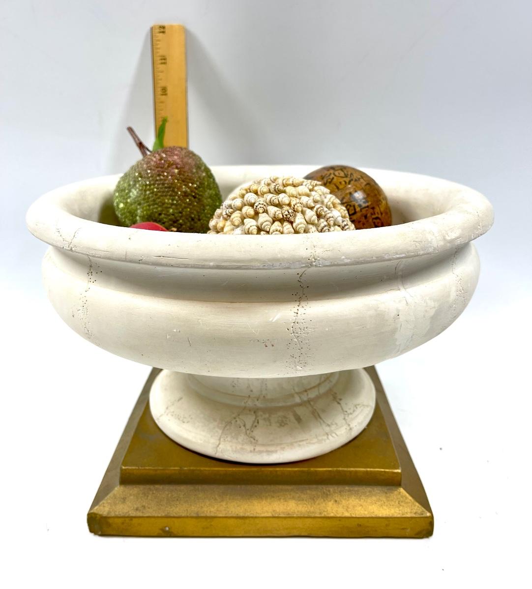 Korean Made white stone fruit bowl with gold base With fake fruit