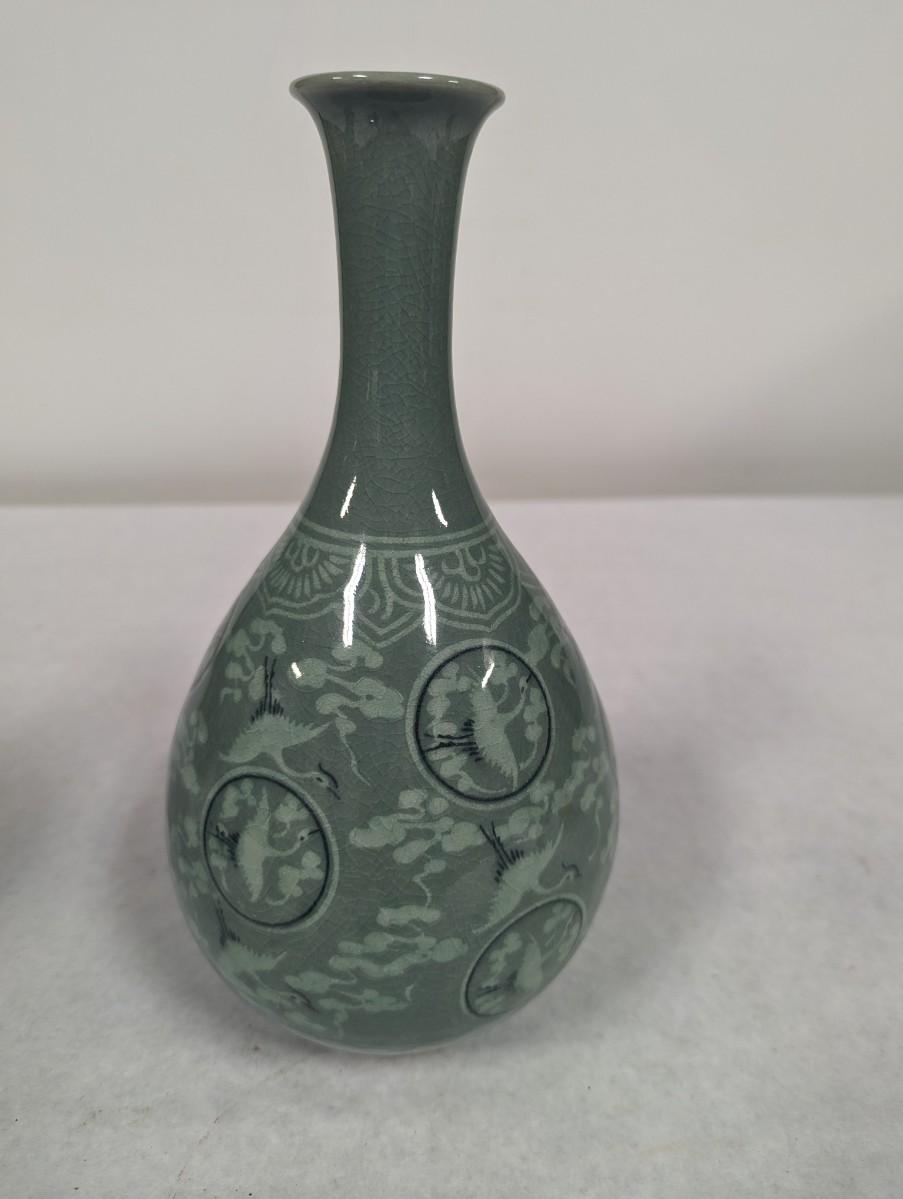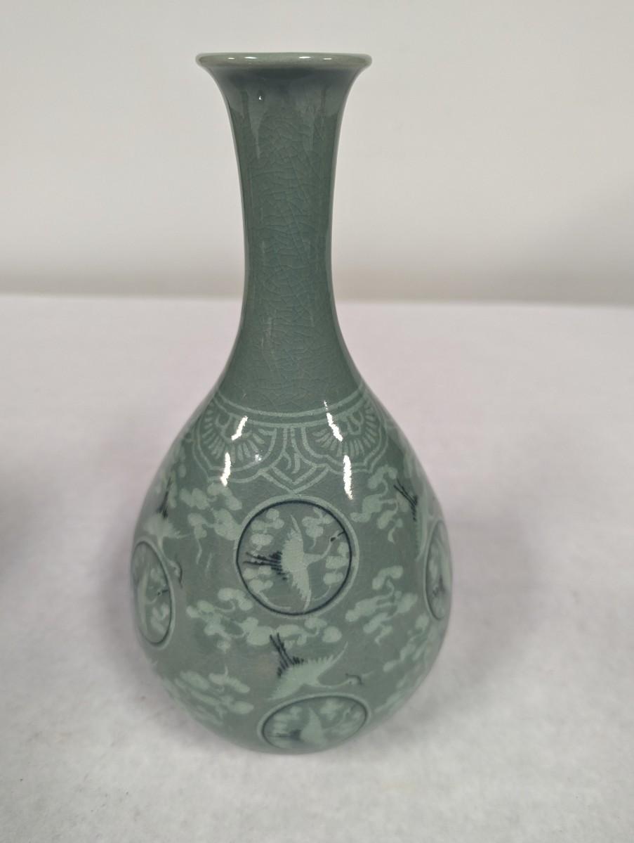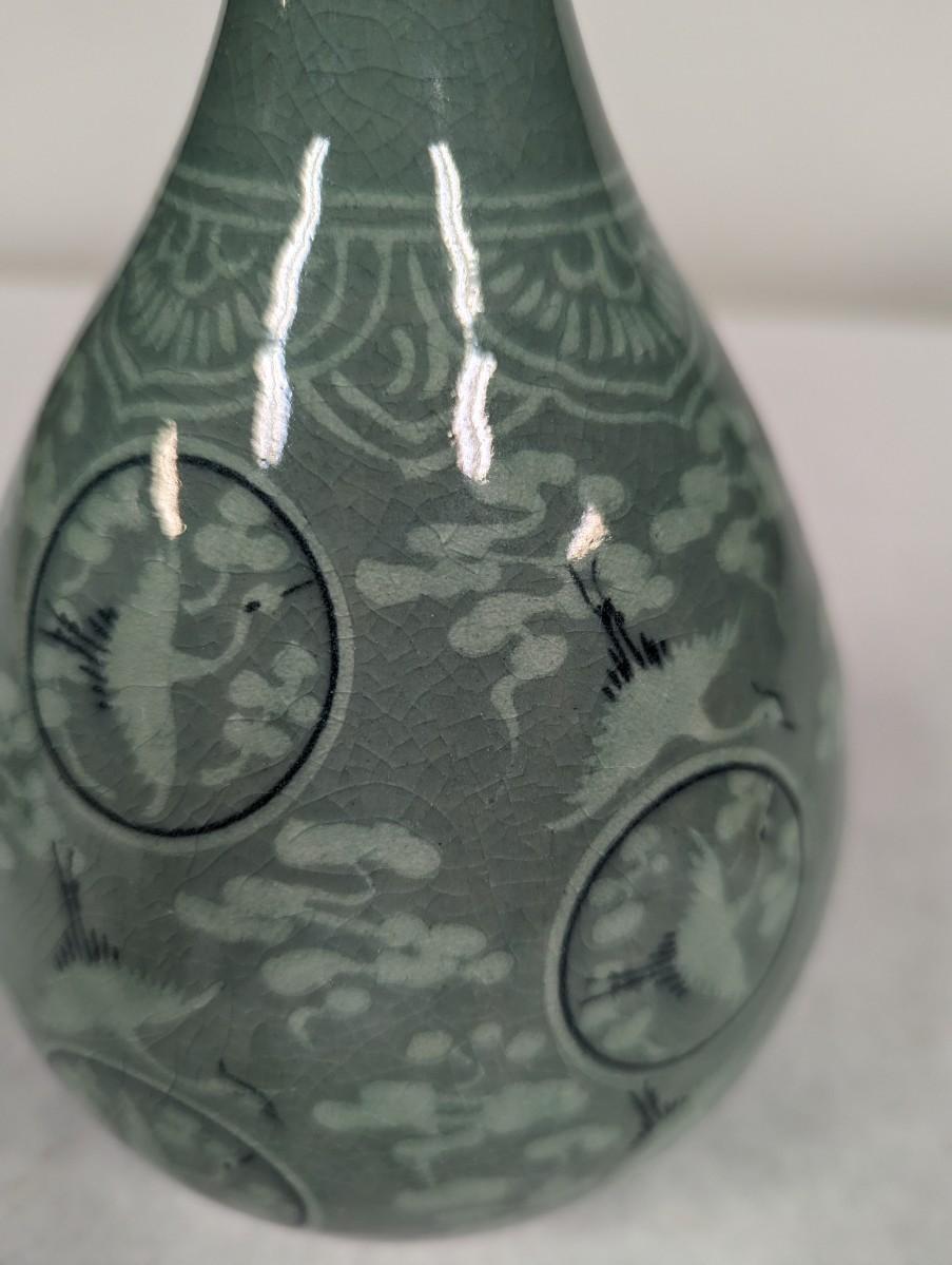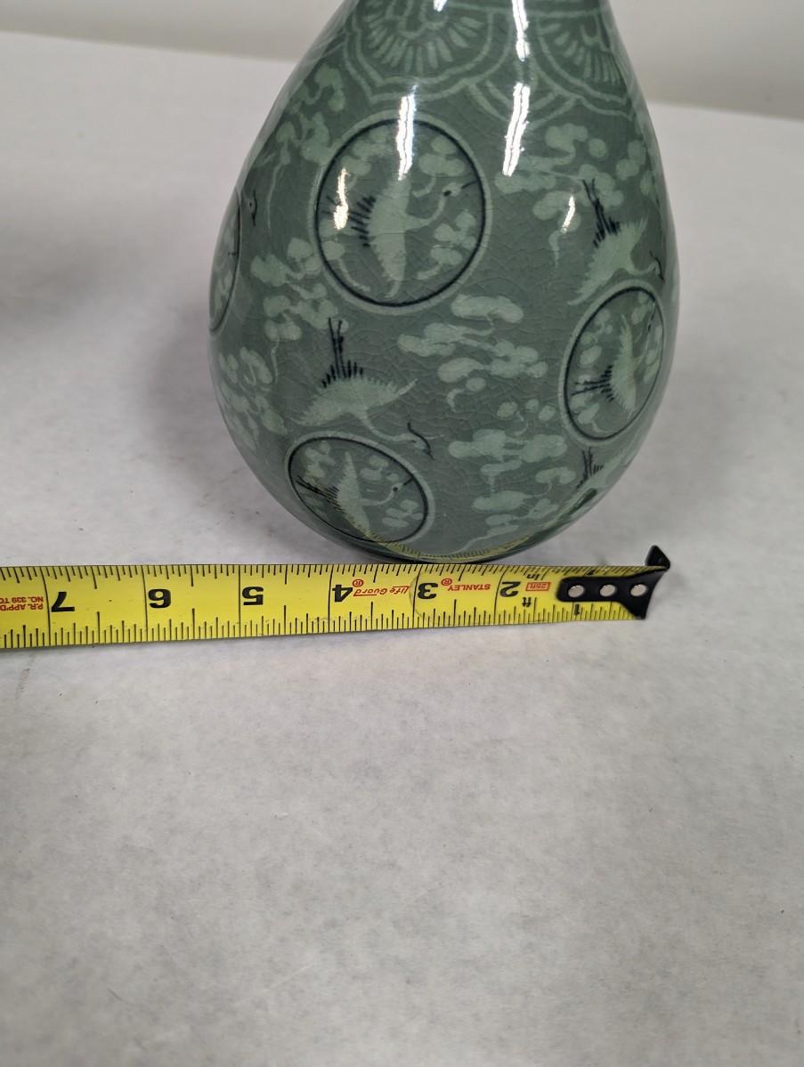 Korean Glazed Vase Clouds Flying Cranes Pattern Crackle Finish Signed