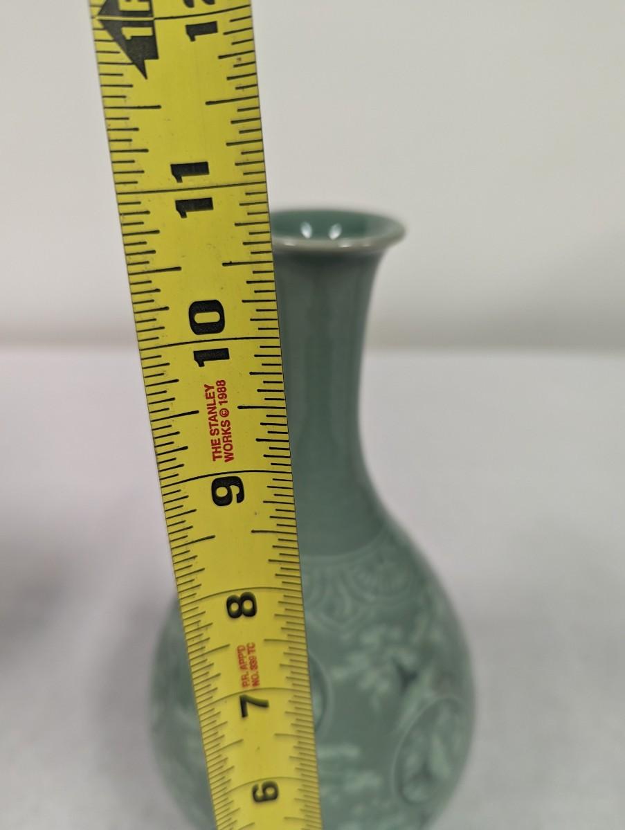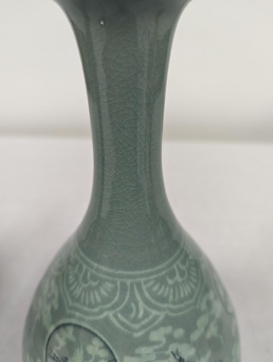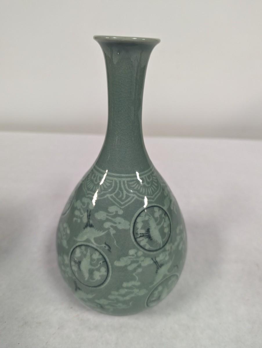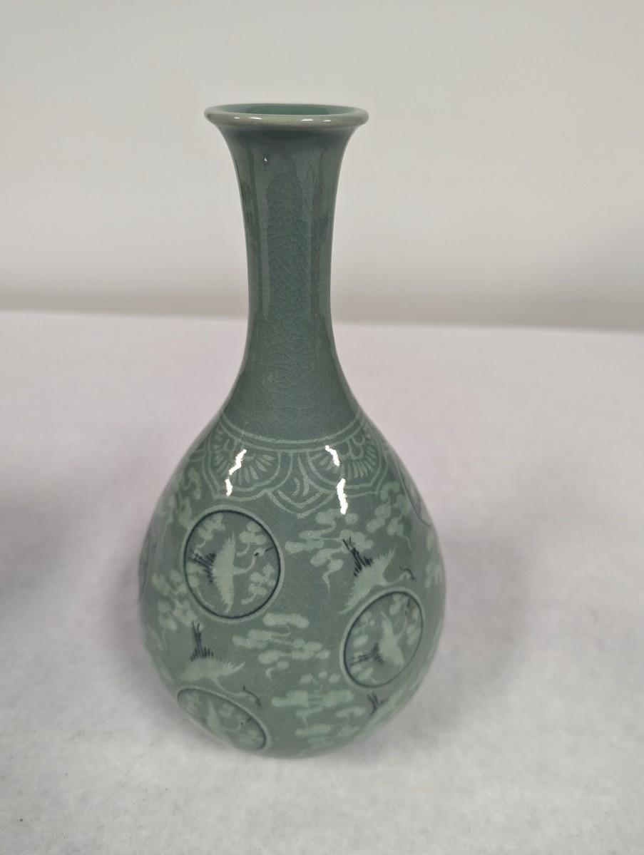 Korean Glazed Vase Clouds Flying Cranes Pattern Crackle Finish Signed