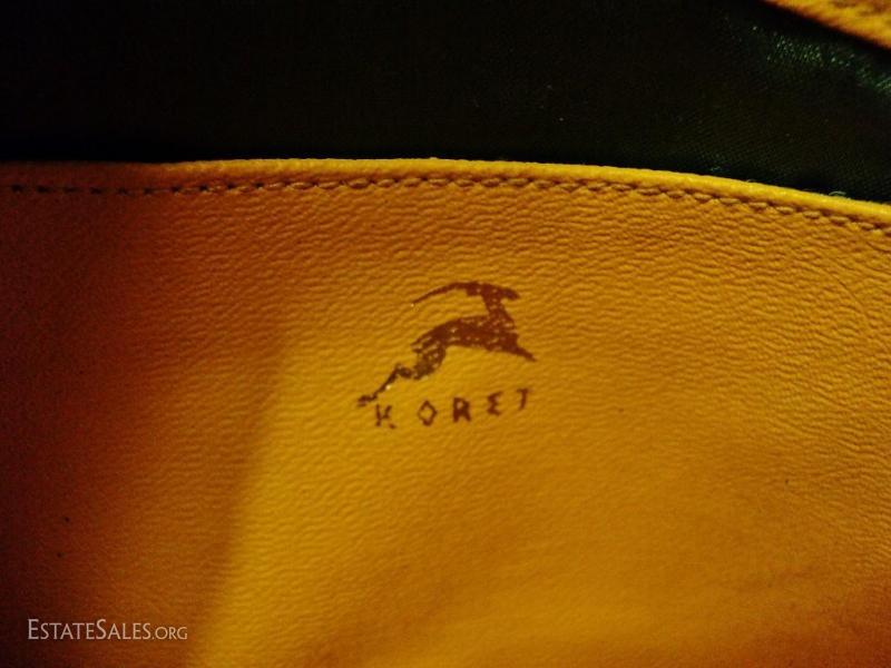 Rare and amazing bag. All crochet with leather inside and the iconic Koret name in gold The handle are gold overlay with emerald bamboo and gold hardware.some lightening of the aqua crochet but it blends in .