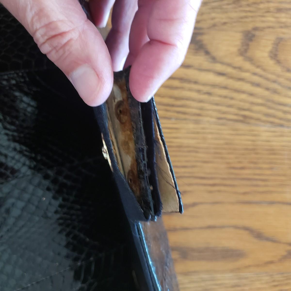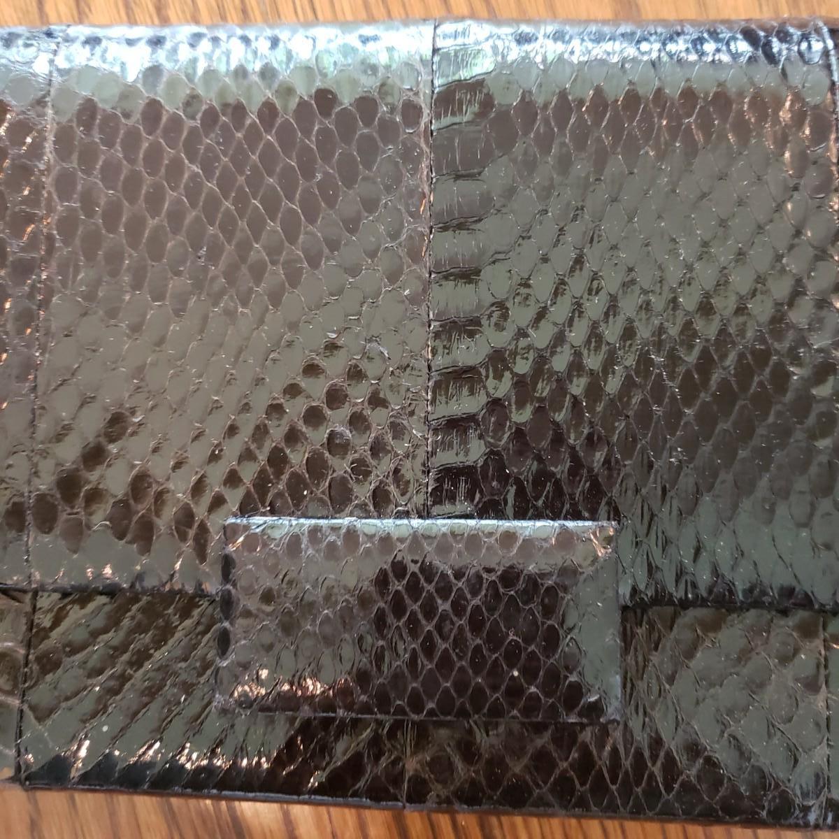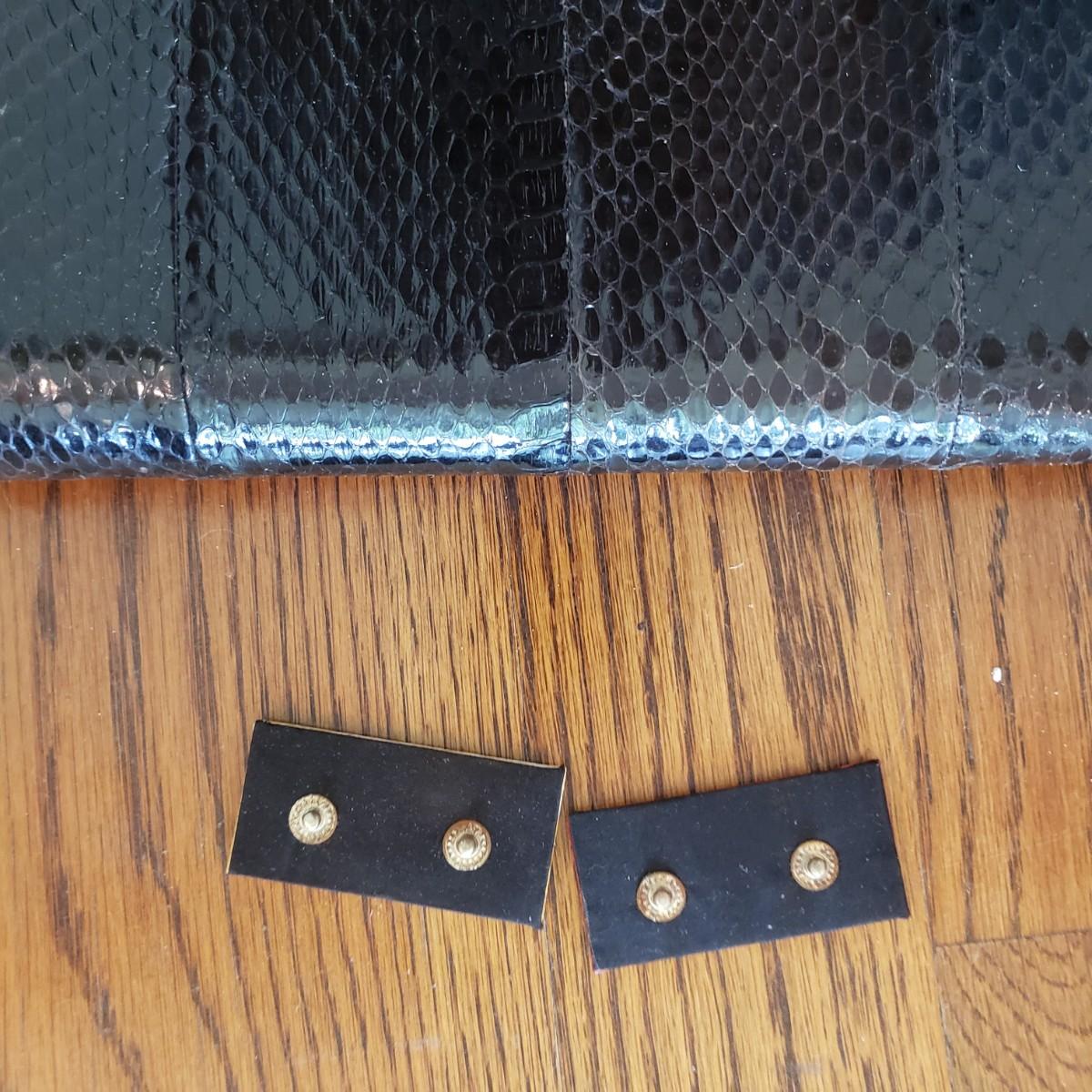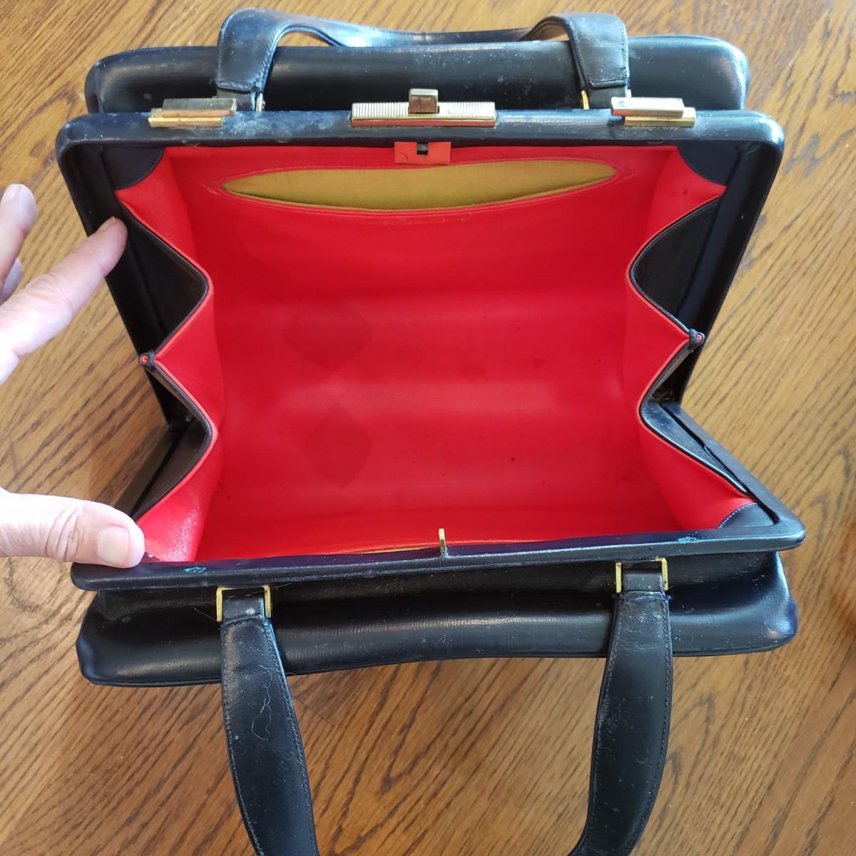 These five vintage style purses have a larger and smaller Koret purses in this lot. The larger Koret purse measures 10" x 3" x 7"H. The faux reptile shiny black purse by Whiting & Davis has its snap cover peeling off. It comes with two interchangeable snap covers. The black embroidered red flower purse is missing its strap. Overall condition issues due to age. All the purses could use a good cleaning.