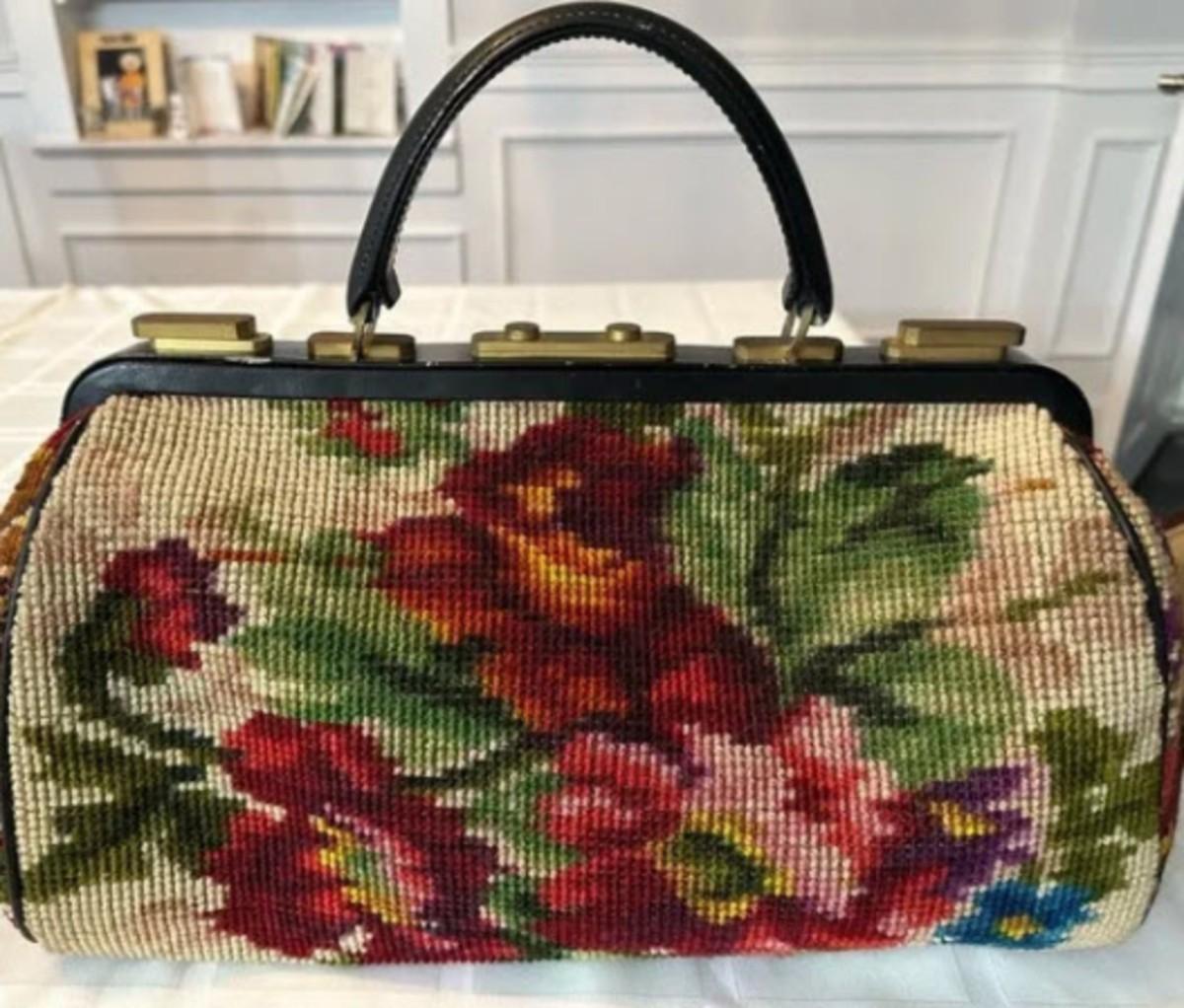 Koret Roses Frame Carpet Bag 1960s Leather Interior Handbag- Rare Find