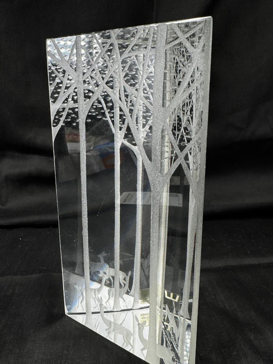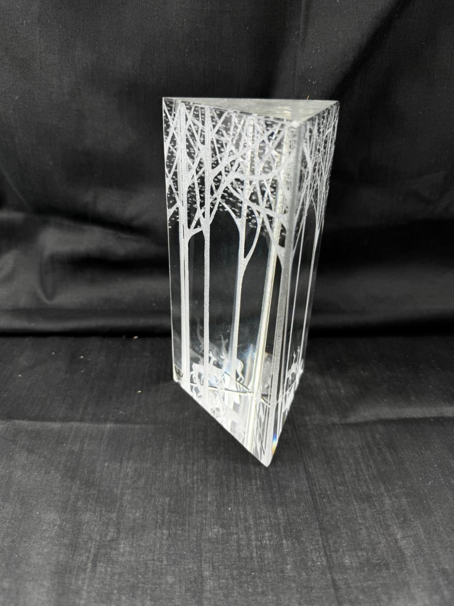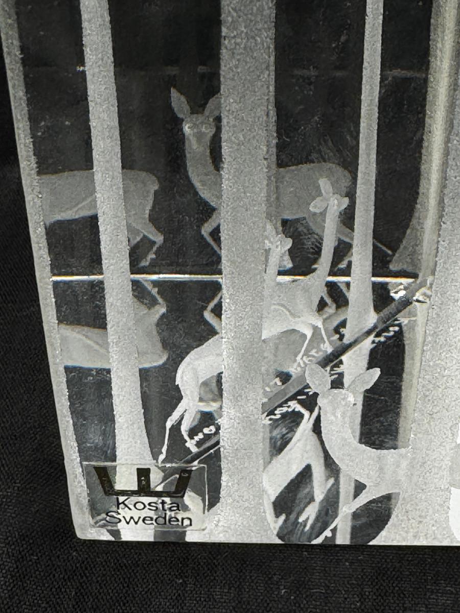 Kosta Boda 'Deers in the Forest' Triangular Prism glass sculpture