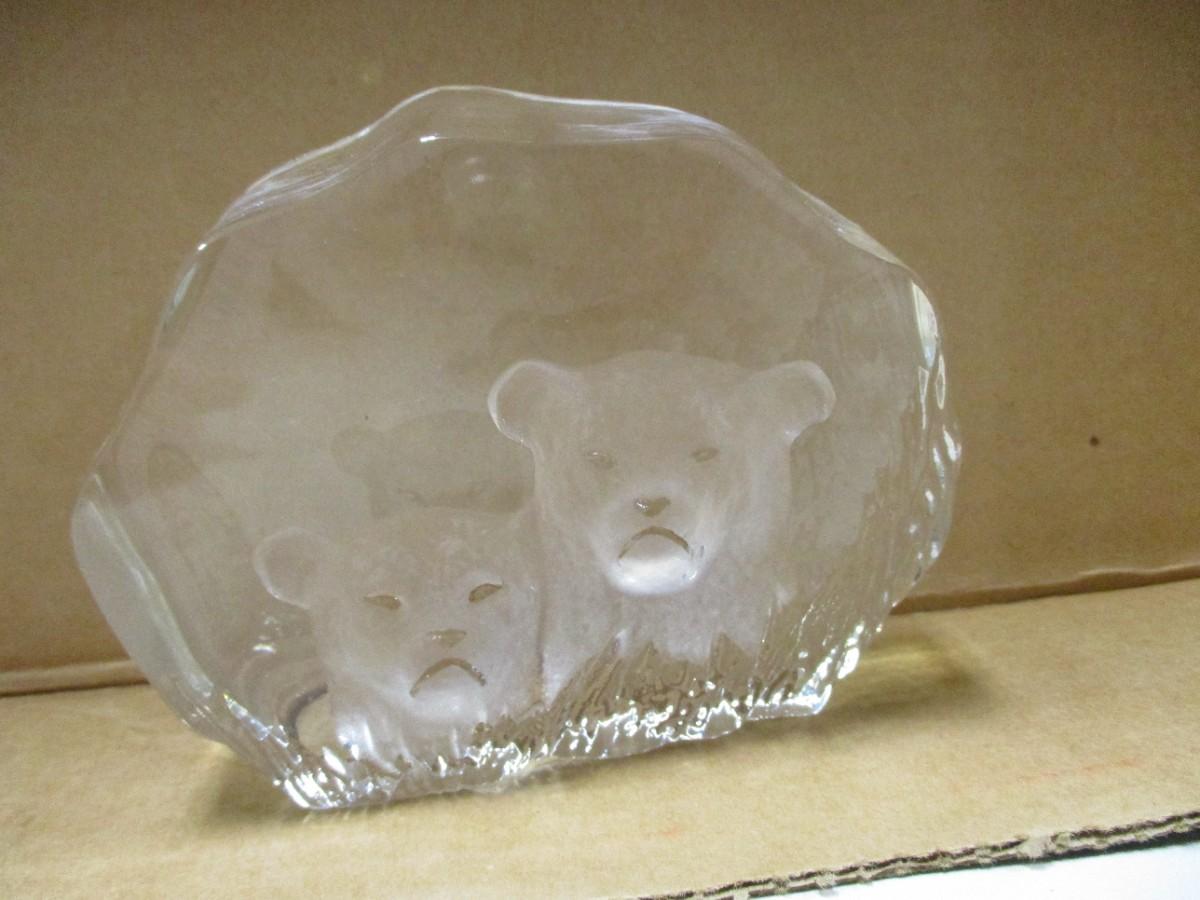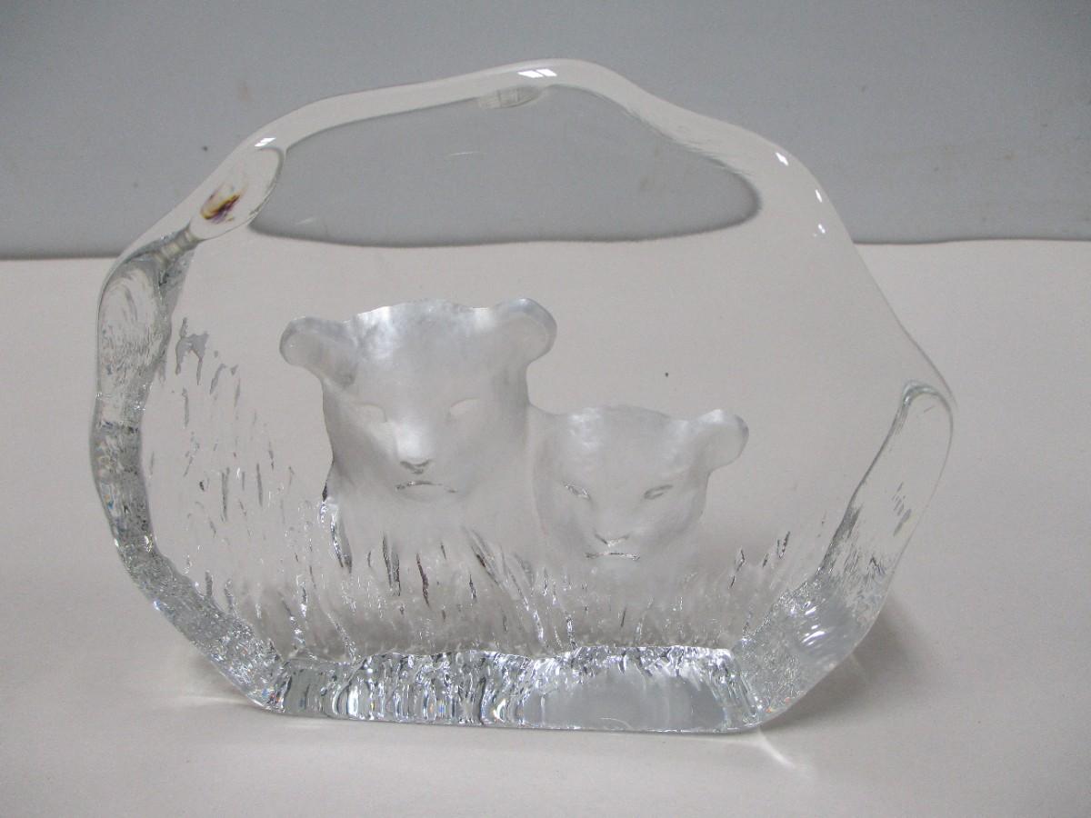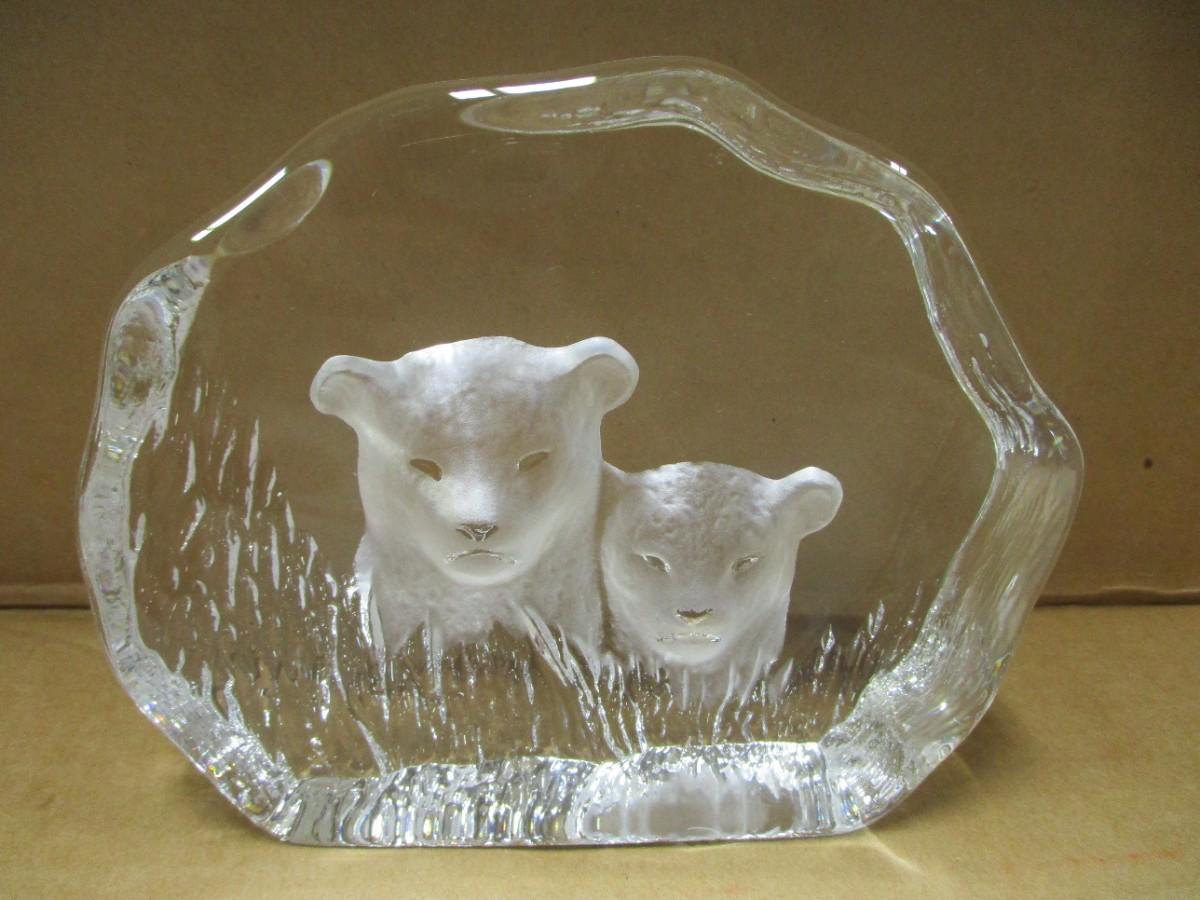 Kosta Boda Sweden Iceberg Glass Sculpture Artist Mats Jonasson COUGARS MT LIONS