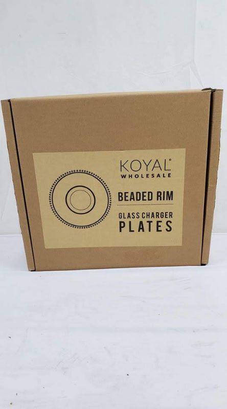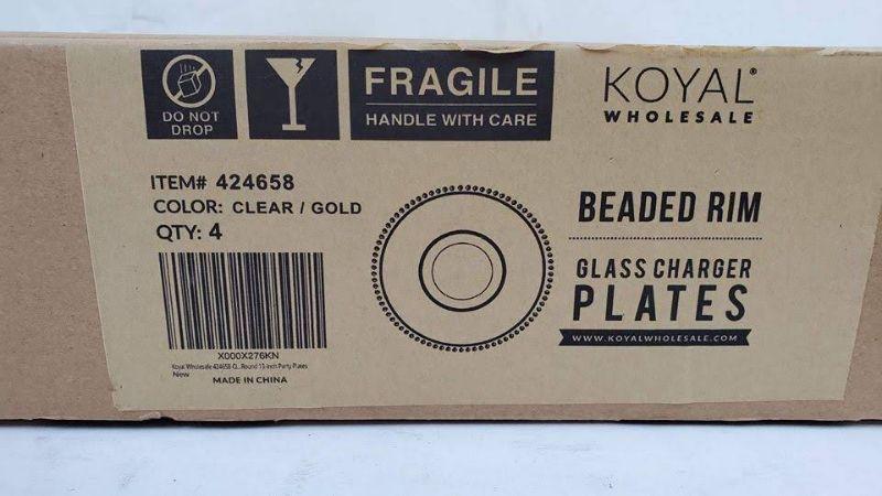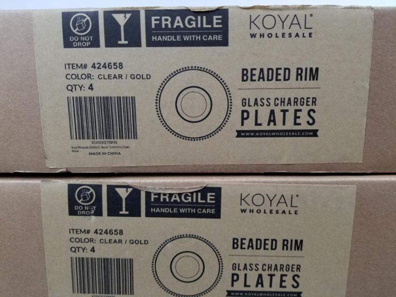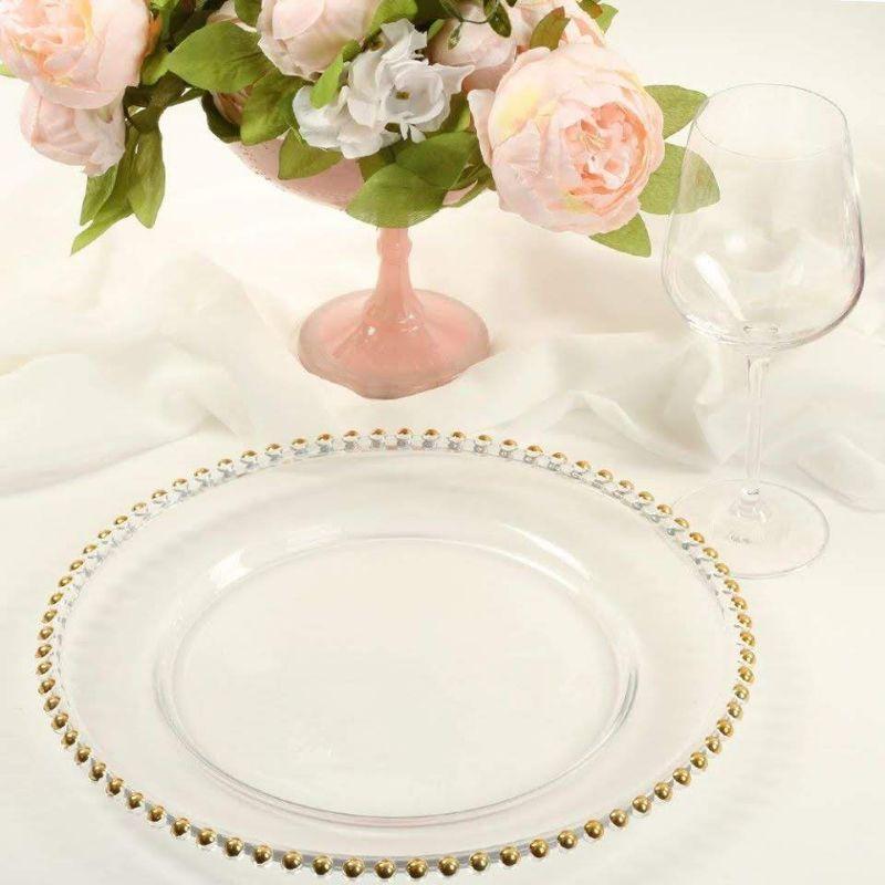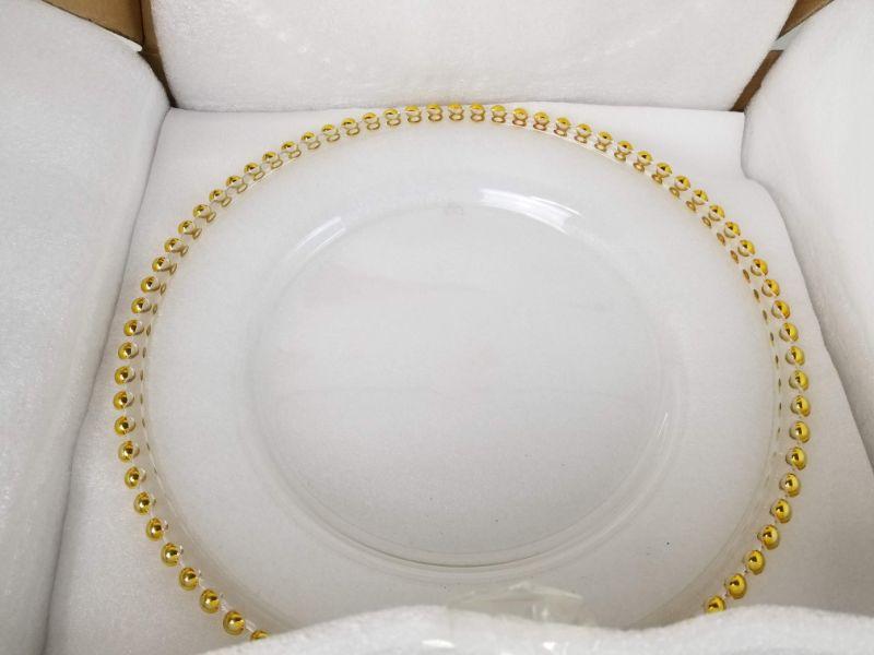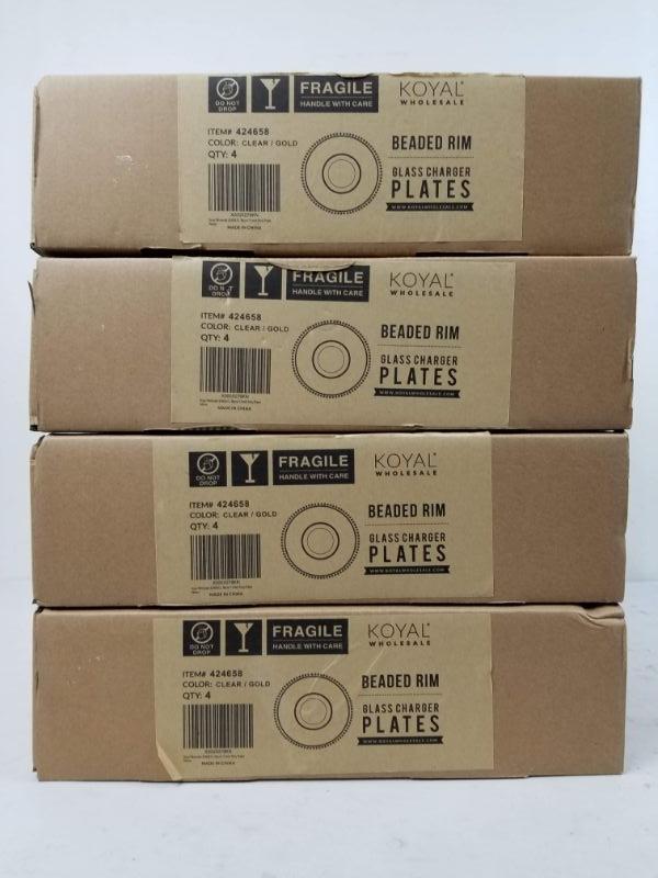 4 Packages of 4 (16 Total) Koyal Wholesale Clear Glass Gold Beaded Couture Charger Plates - New