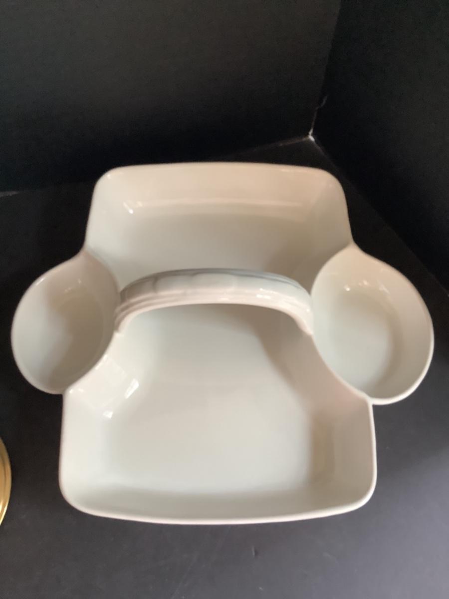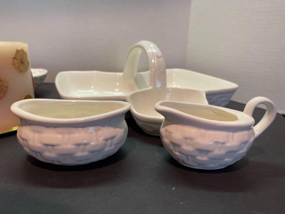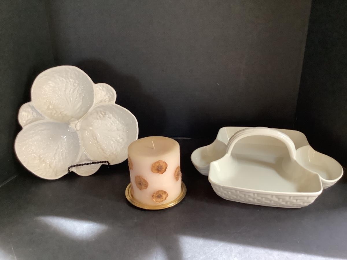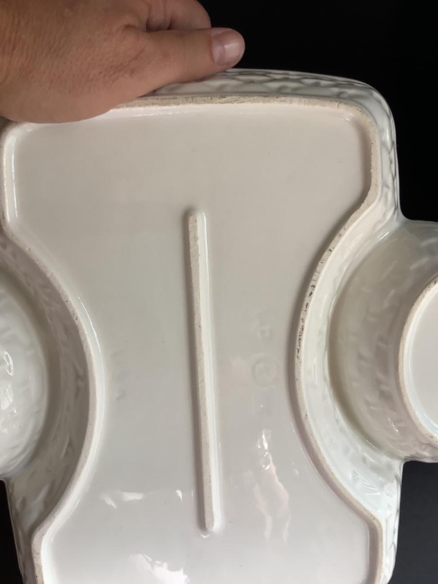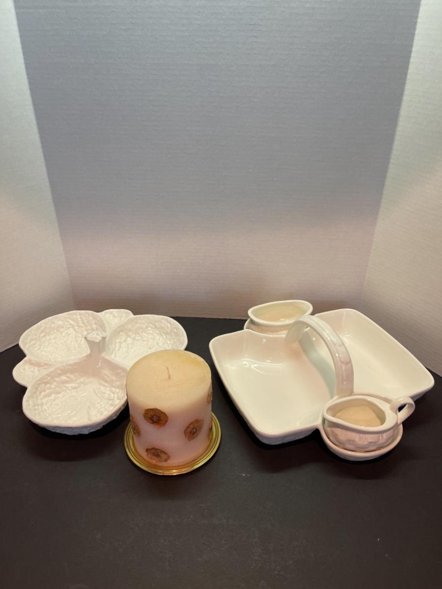 K/P1. 883. Ceramic Strawberry Lattice Bowl & Ceramic Three Section Lettuce Leaf Dish