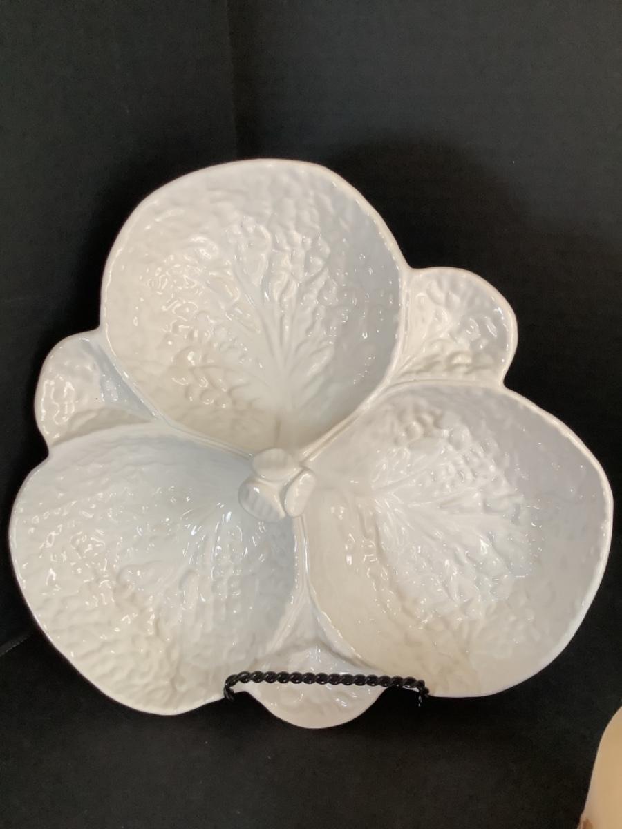 Ceramic Three Section Lettuce Leaf Dish - 10.5” Wide