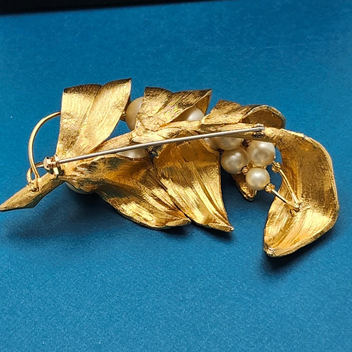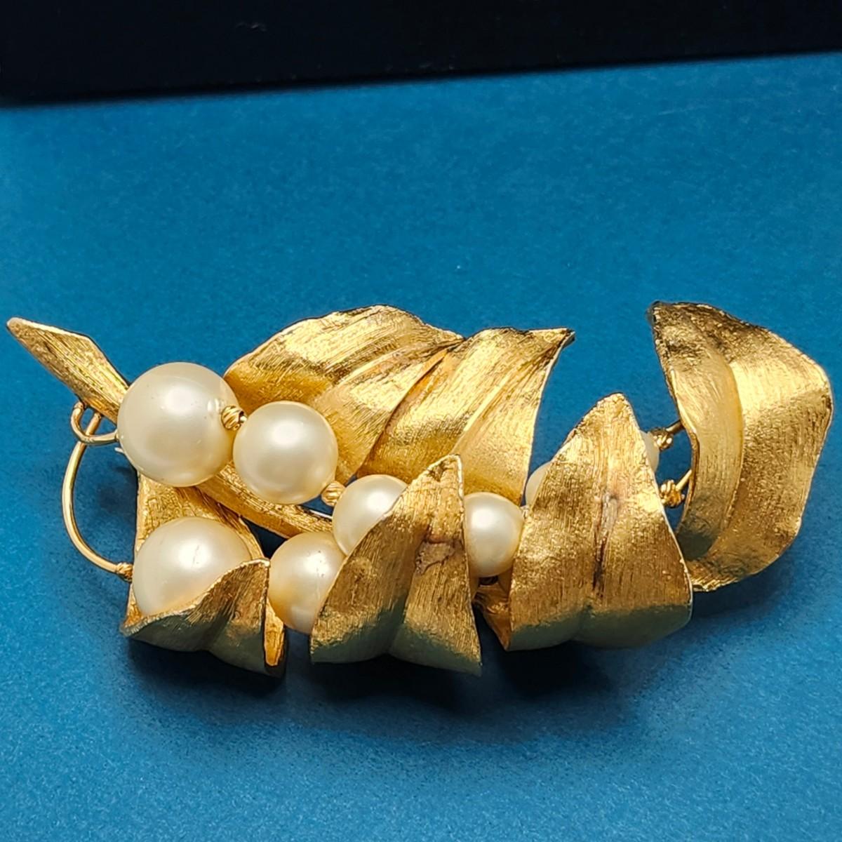 Beautiful vintage pin, gold tone and pearls figural pin.