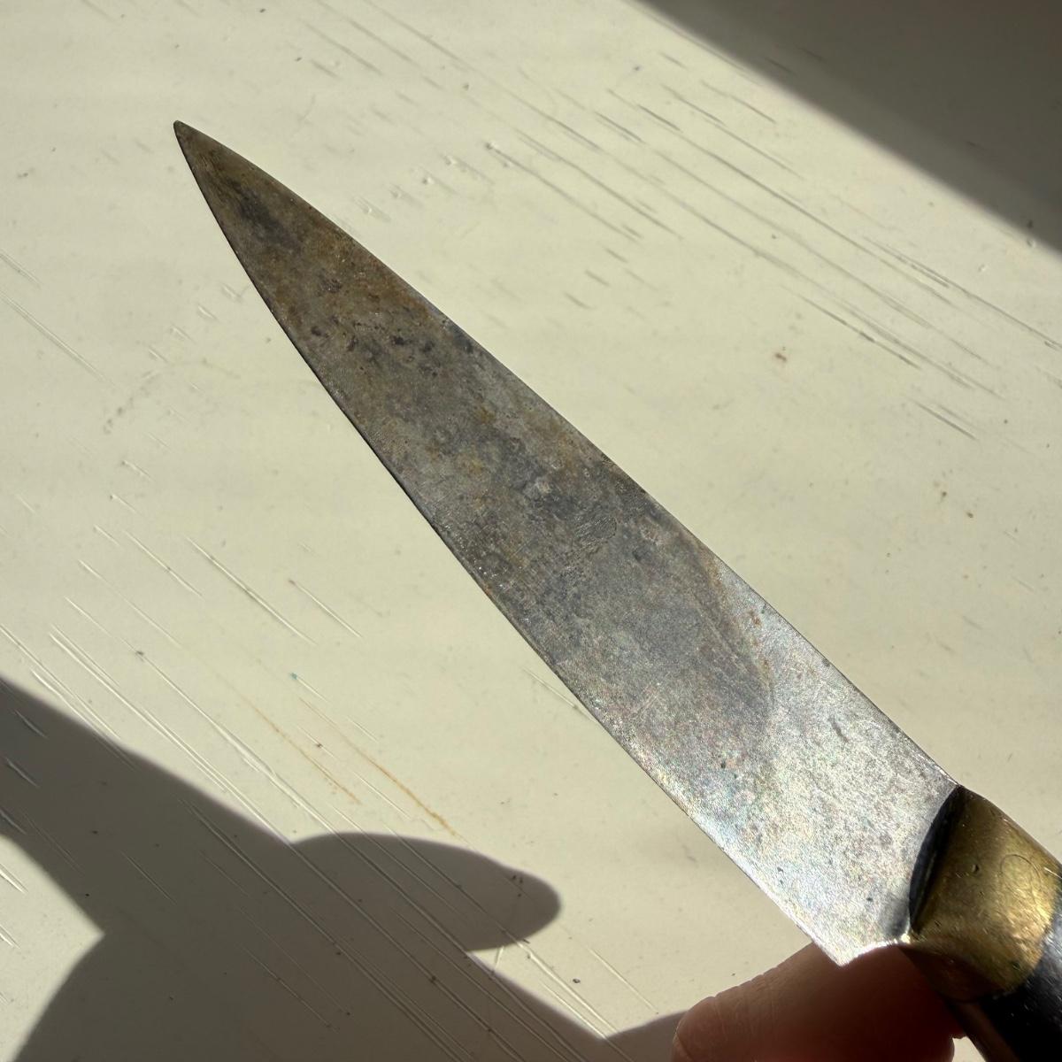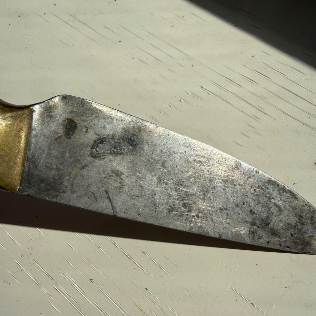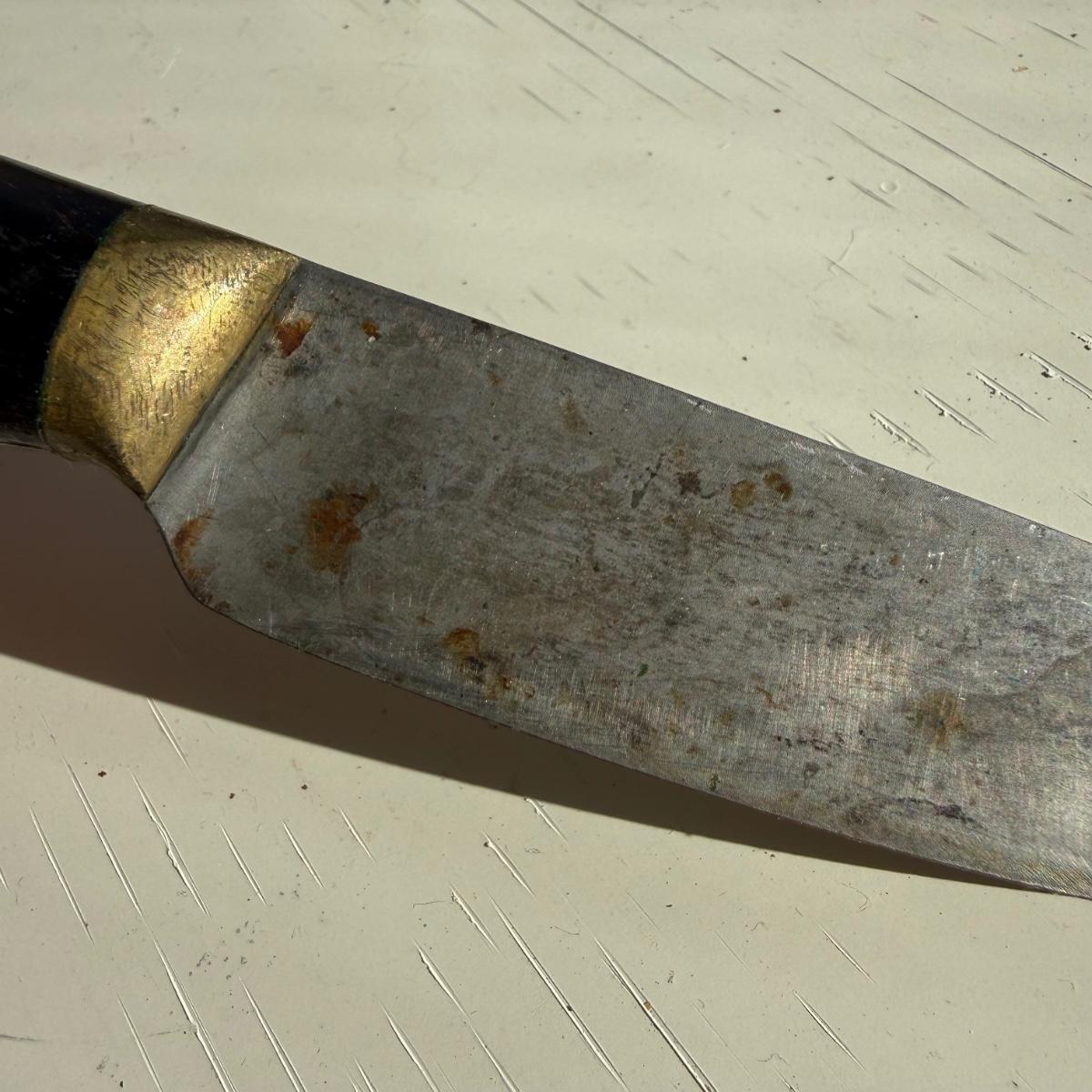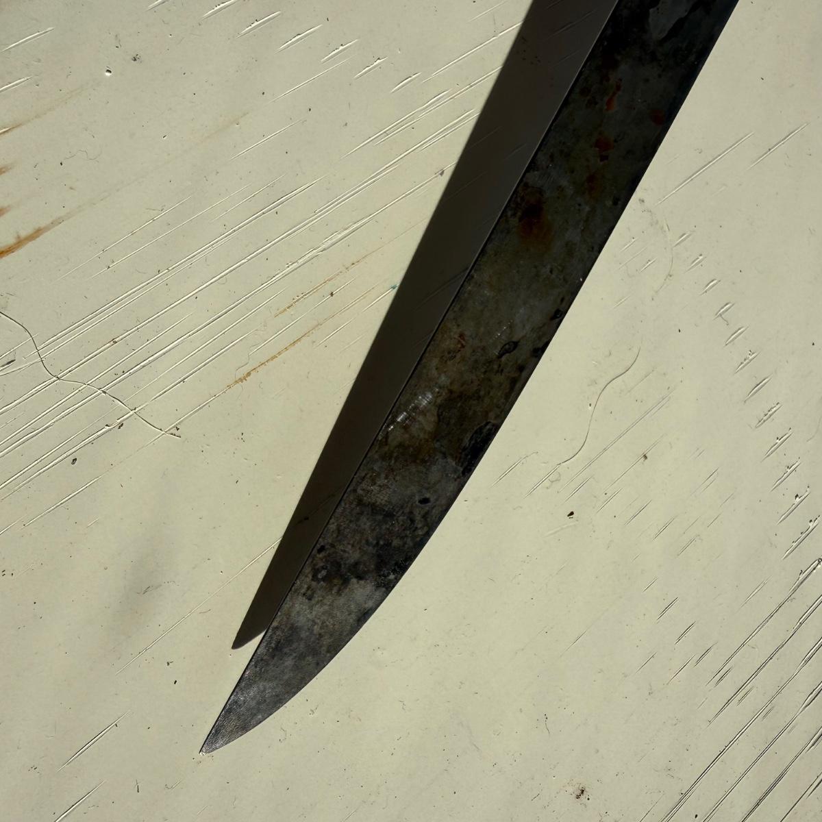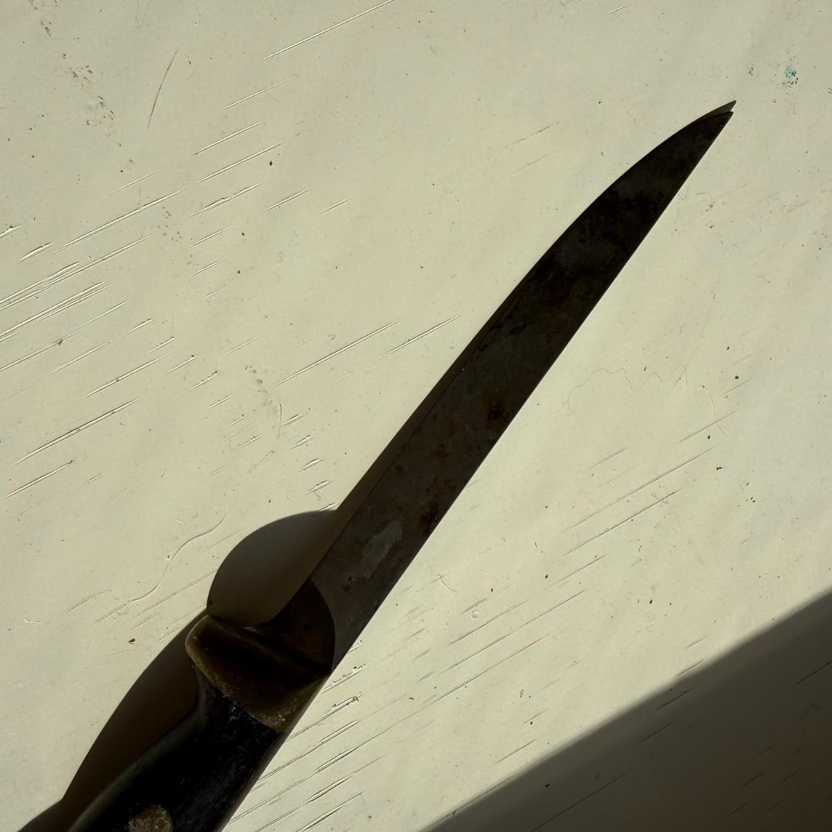 Lot includes a five piece set of Kramer knives and a J.A. Henckels sharpener. Longest knife measures 15”long.