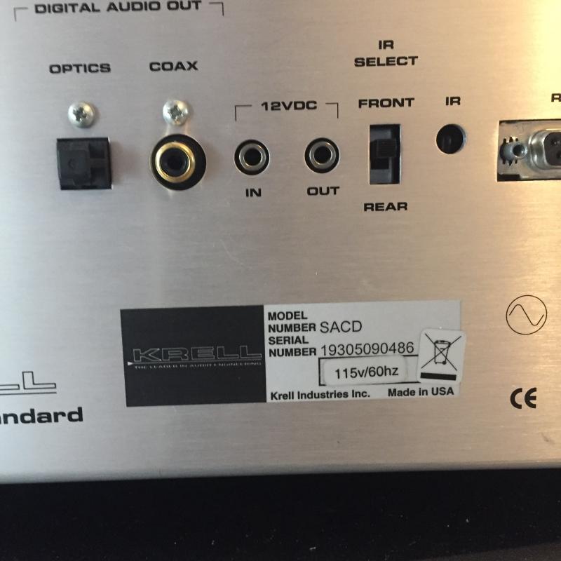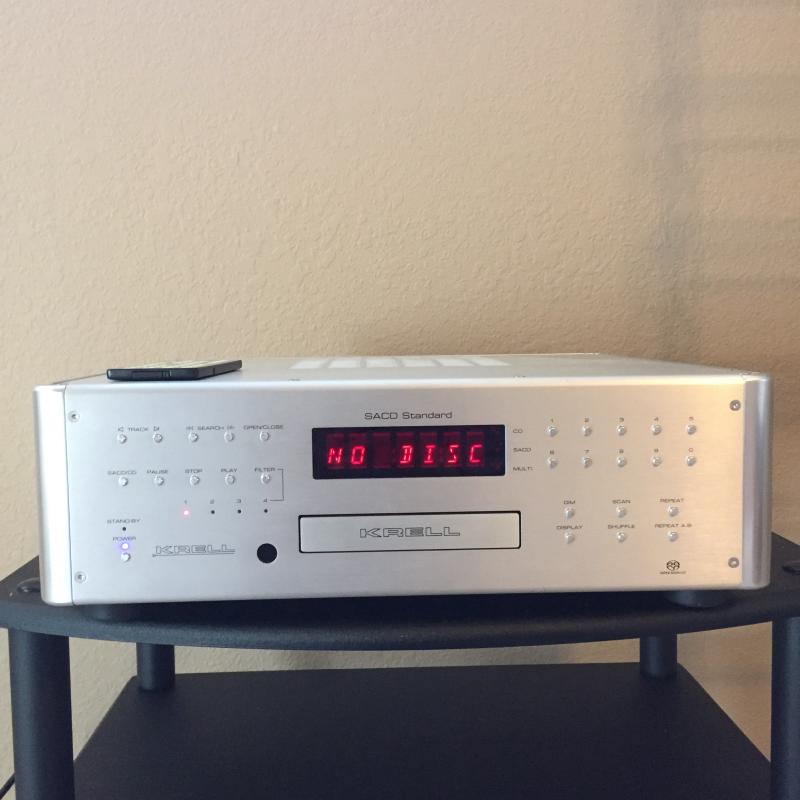 High end audio Krell SACD in silver (Specs - Multichannel SACD/CD player using 24-bit Burr-Brown, dual-differential DACs and Philips disc transport.)