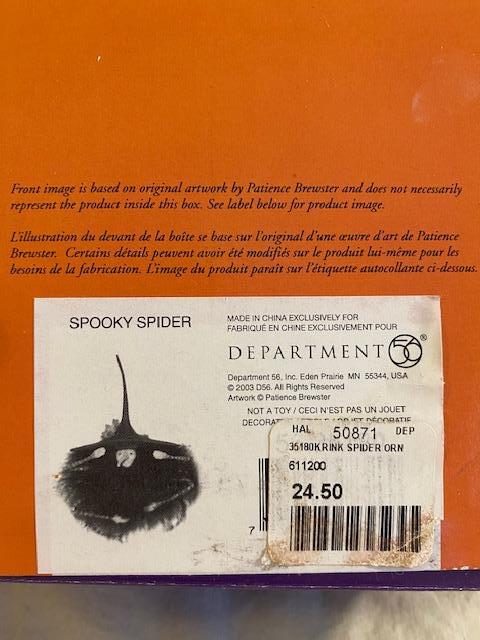 Department 56 Krinkles by Patience Brewster - early 2000's Spooky Spider ornament - Has box