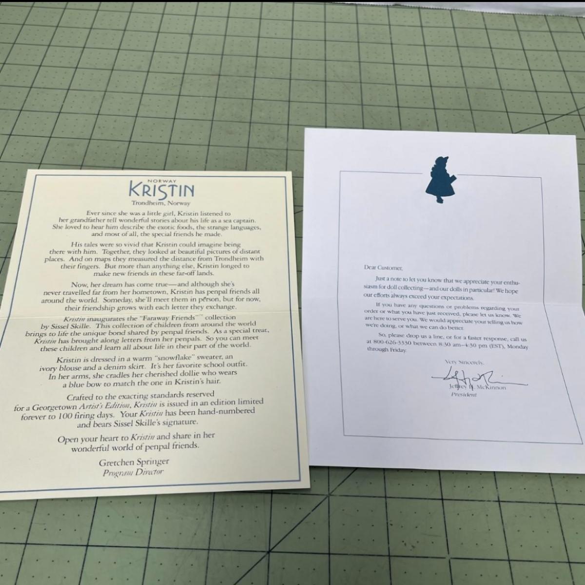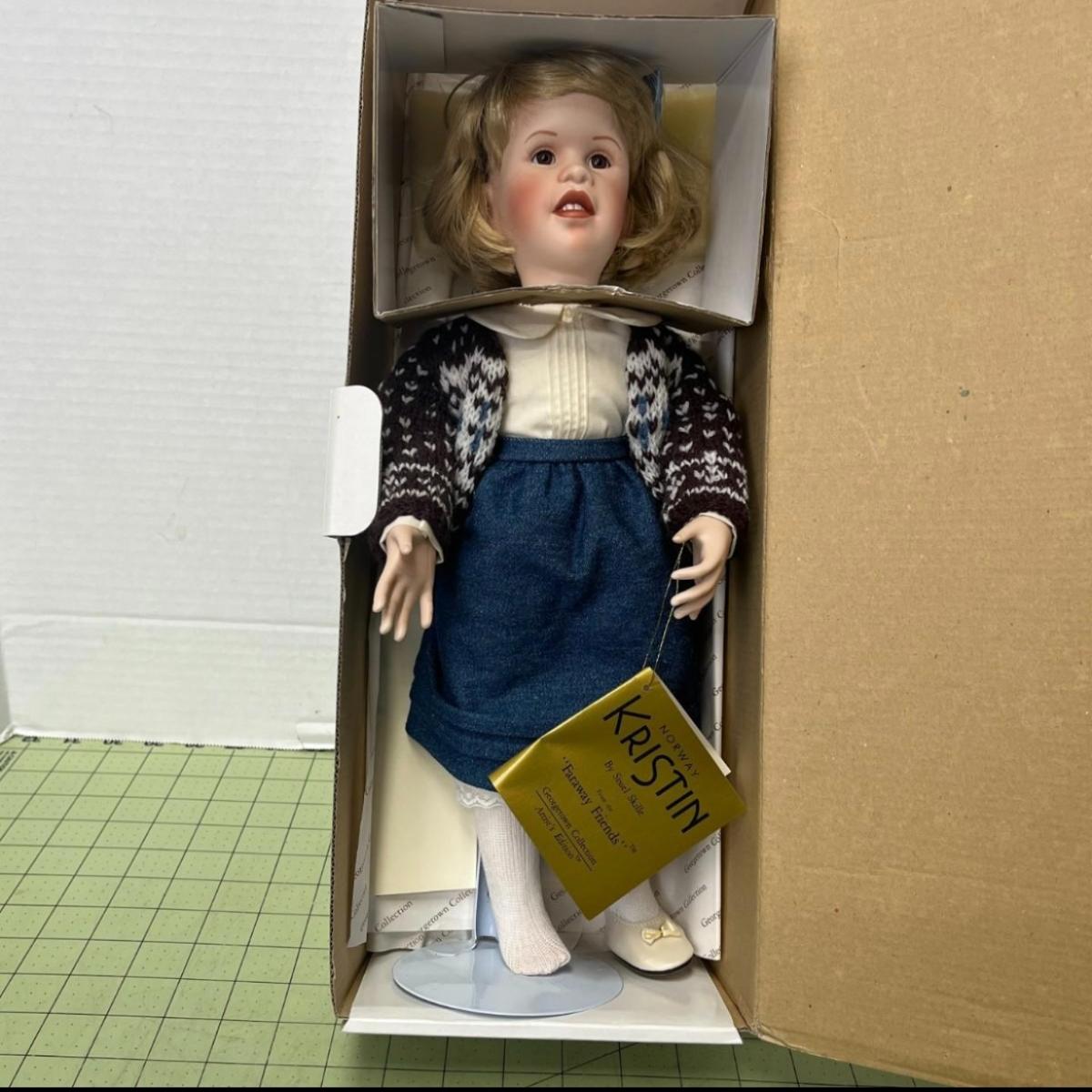 16 inch. Includes box, certificate, booklet, stand, authentic Norwegian costume.