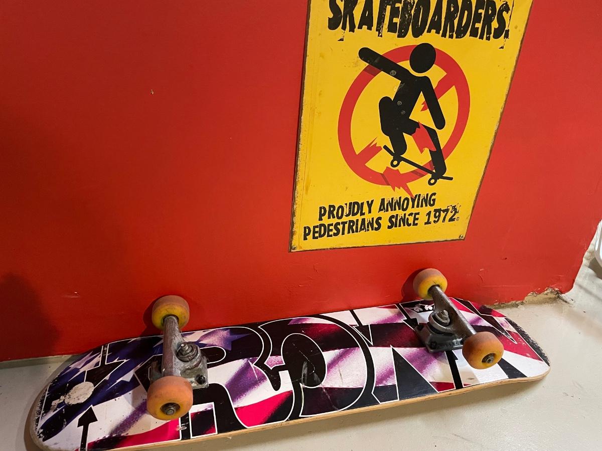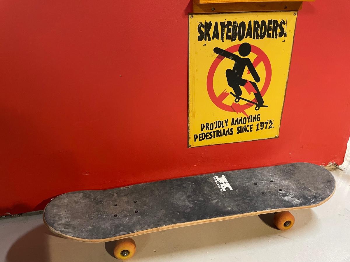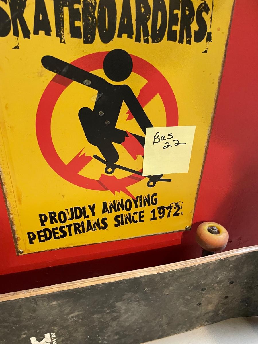 Skateboard and sign