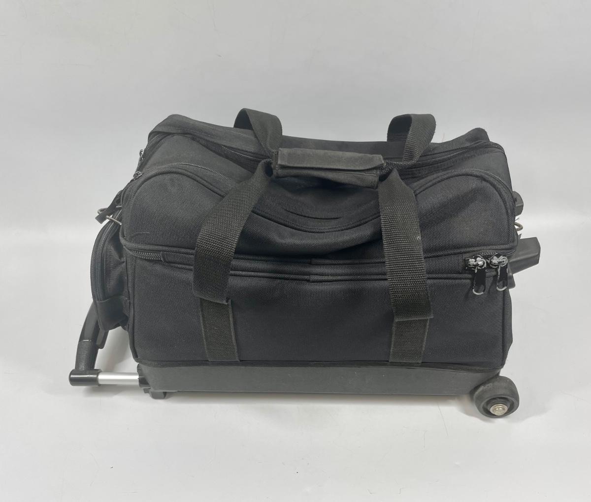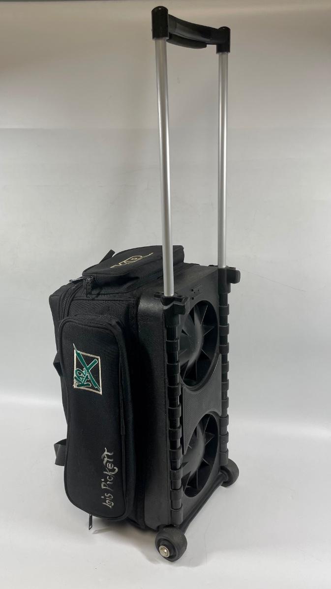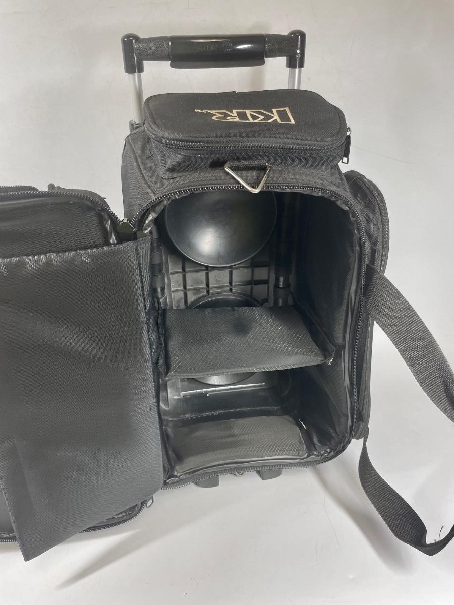 KRX 2-Ball Bowling Ball Bag. Made of ballistic nylon, has telescopic handle and roller wheels.