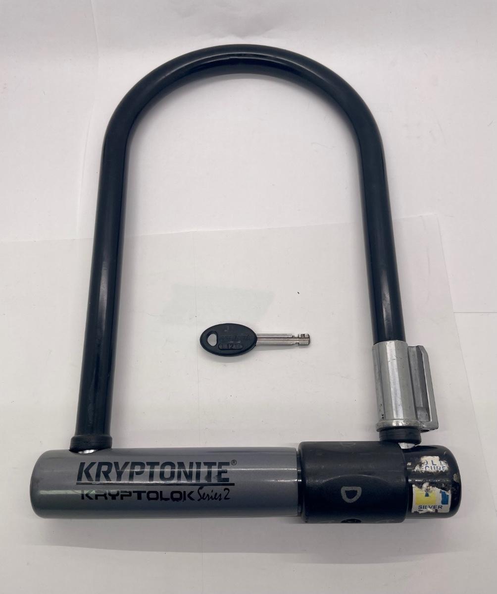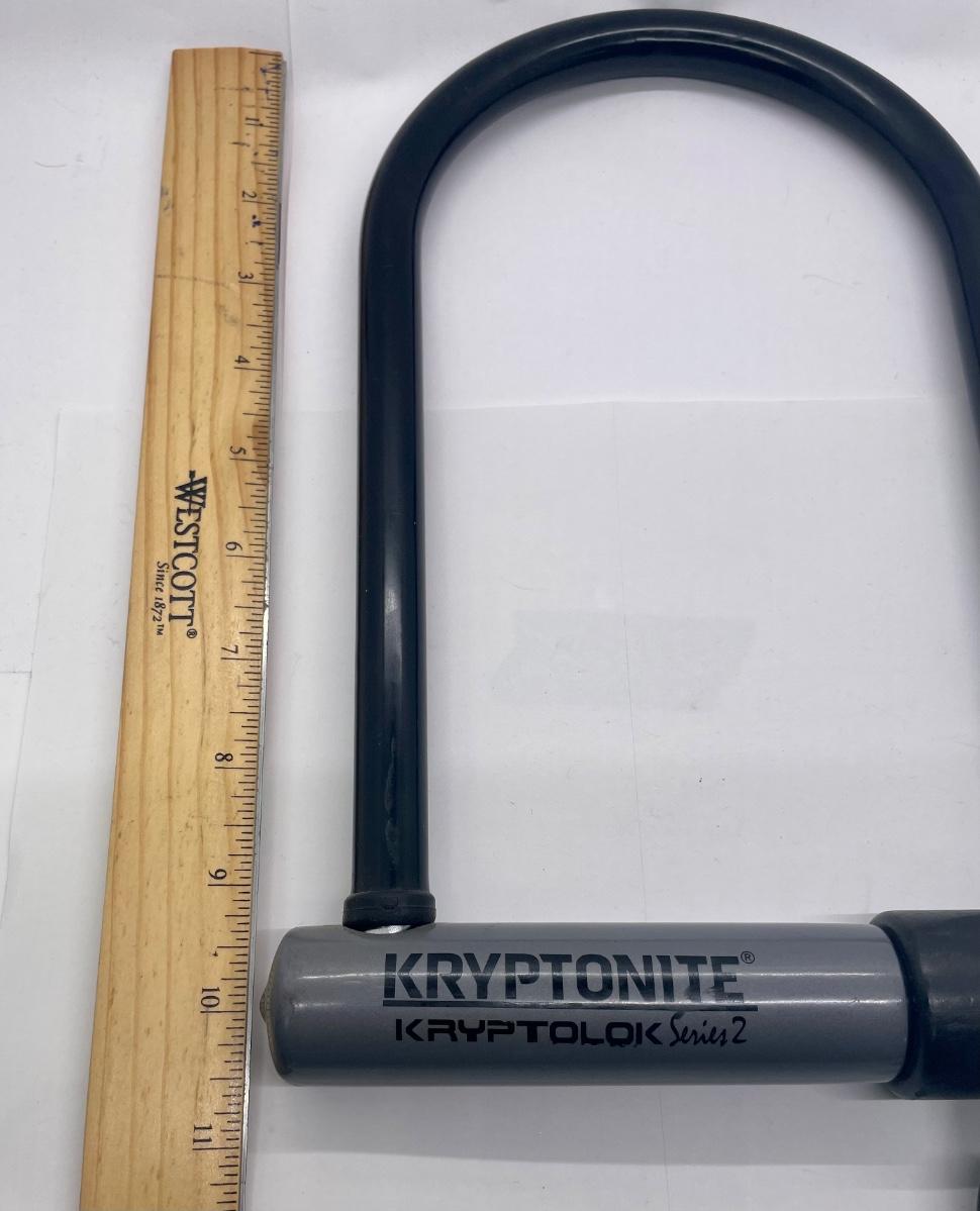 Kryptonite KryptoLok Series 2 Standard Bicycle U-Lock. Hardened steel, weighs 3.38 lb, Comes with 1 key.