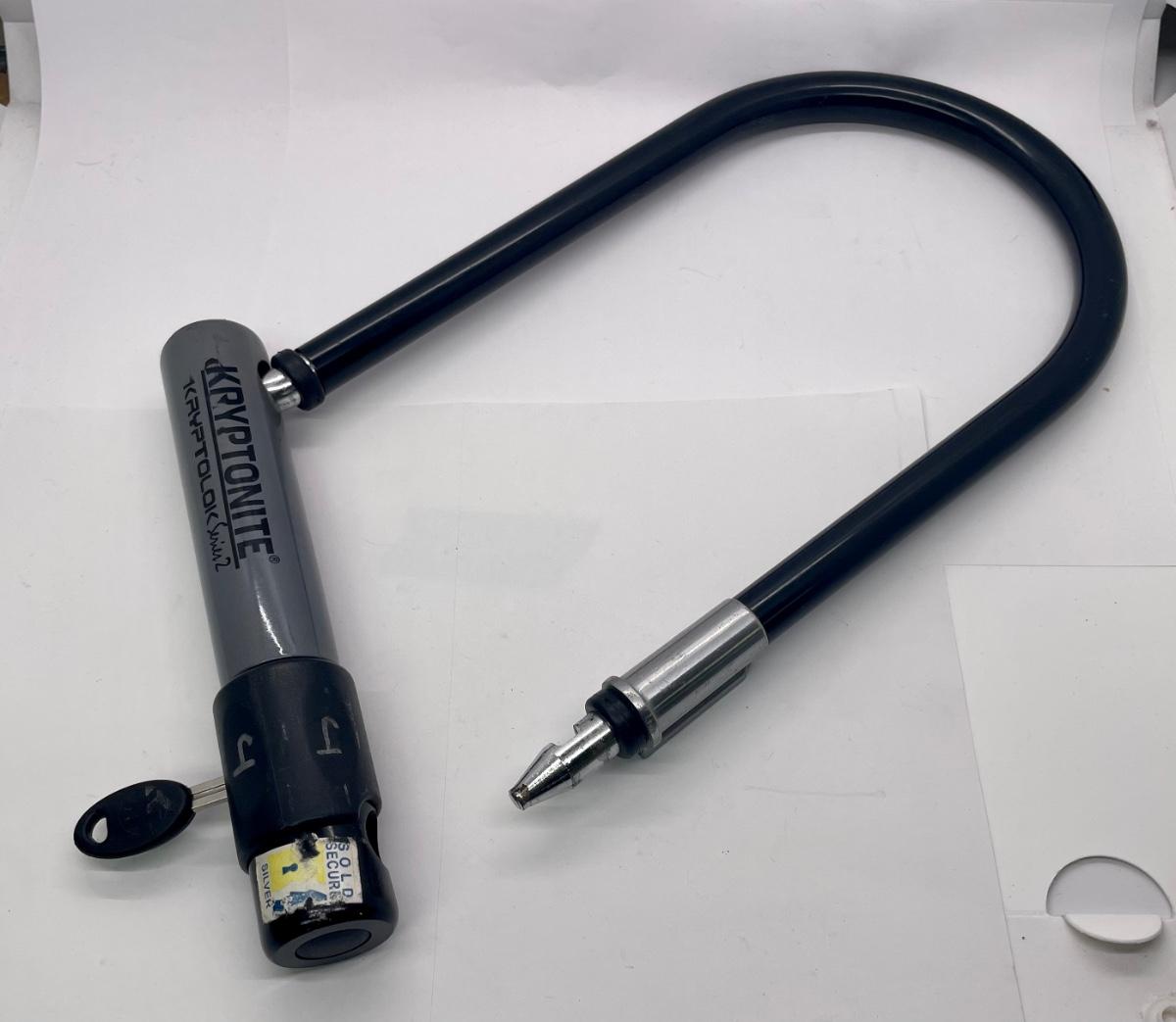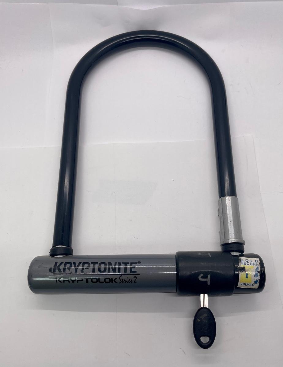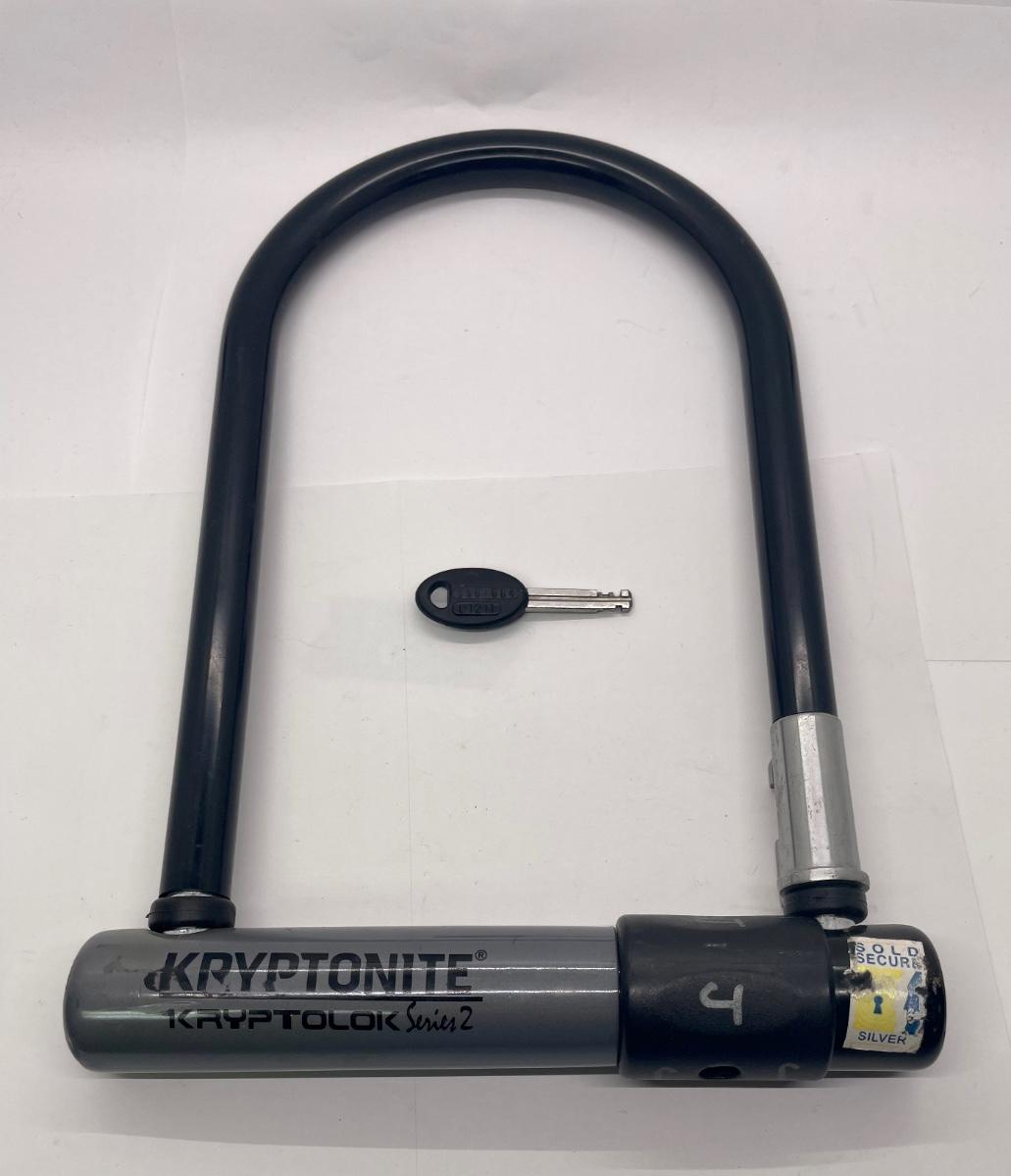 Kryptonite KryptoLok Series 2 Standard Bicycle U-Lock. Hardened steel, weighs 3.38 lb, Comes with 1 key.