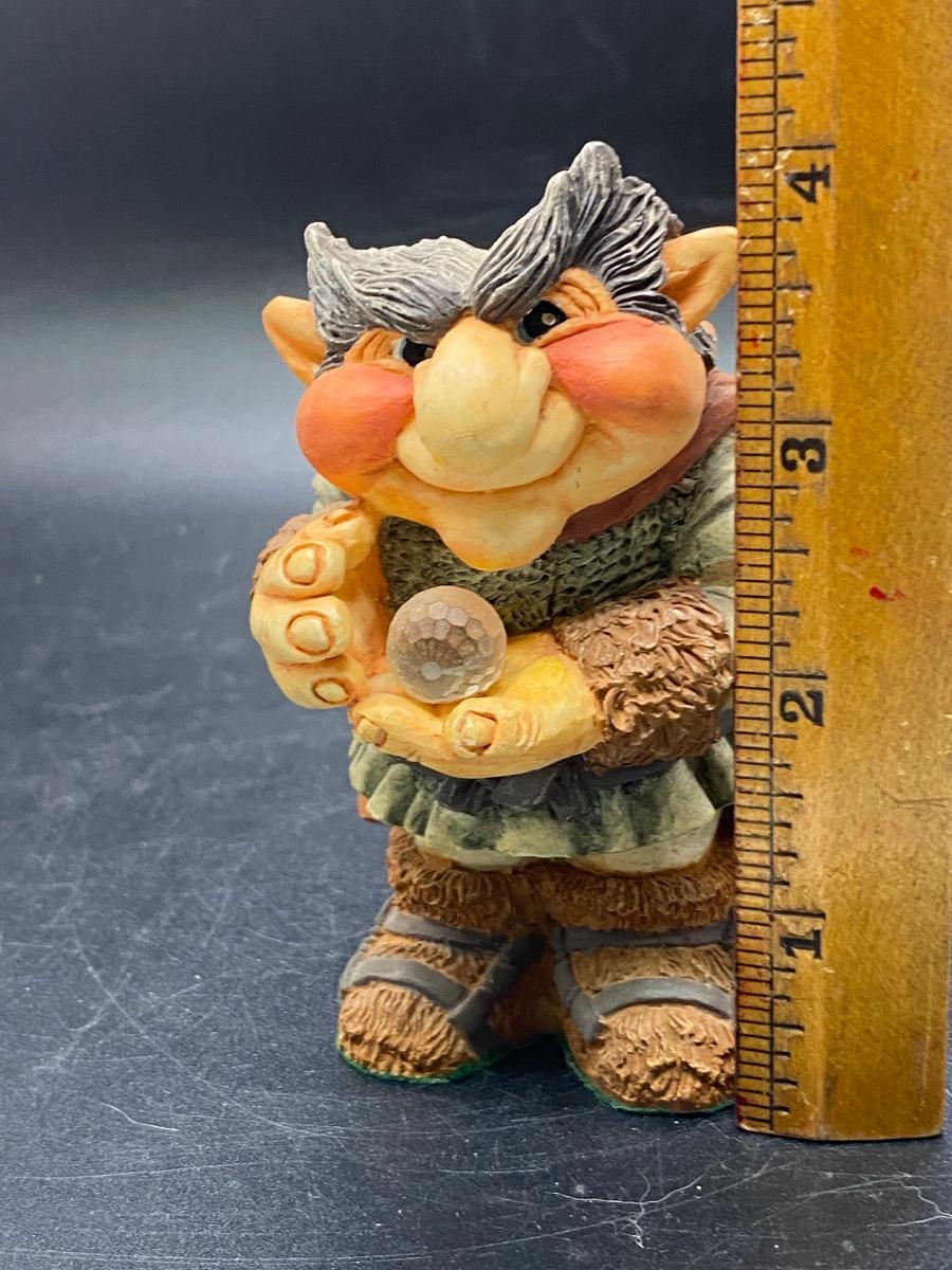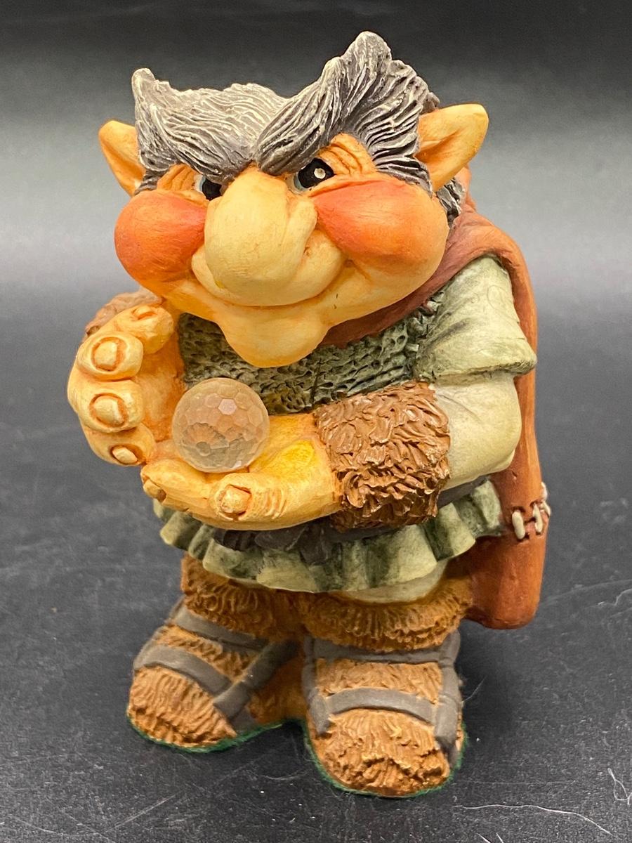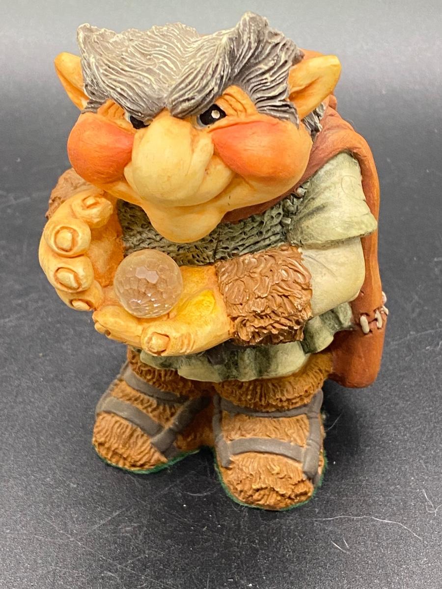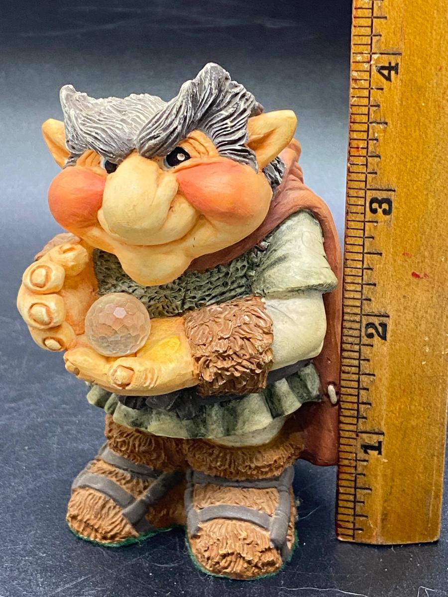 Krystonia mythical creature figurine. Cape wearing troll with a crystal orb in his hands. Good condition, about 4" size. Has Made in England sticker on the bottom.