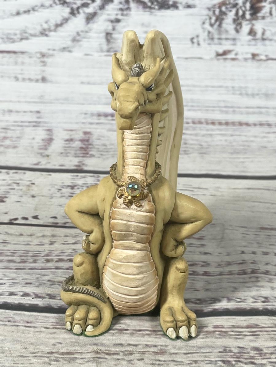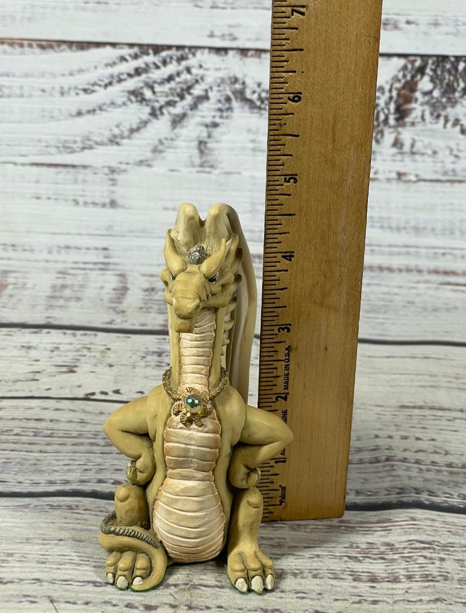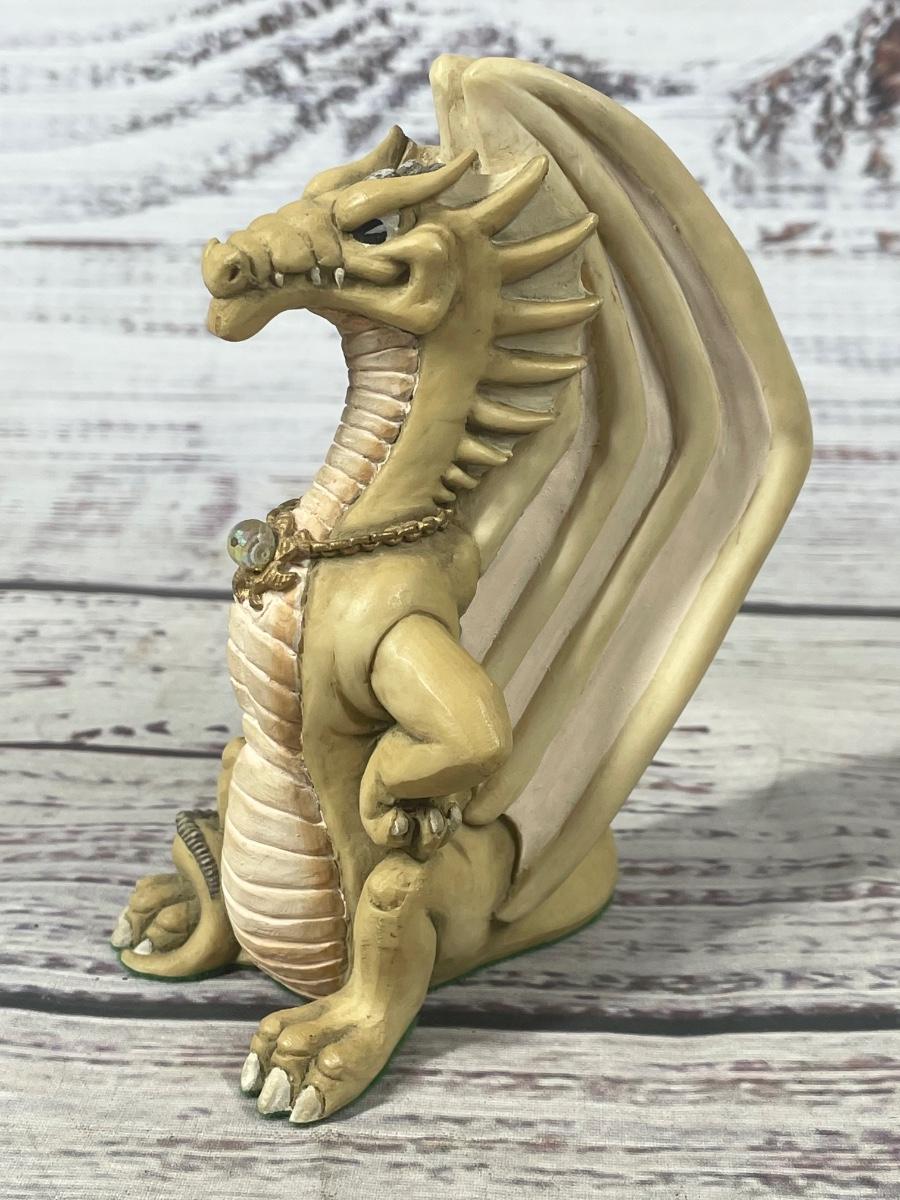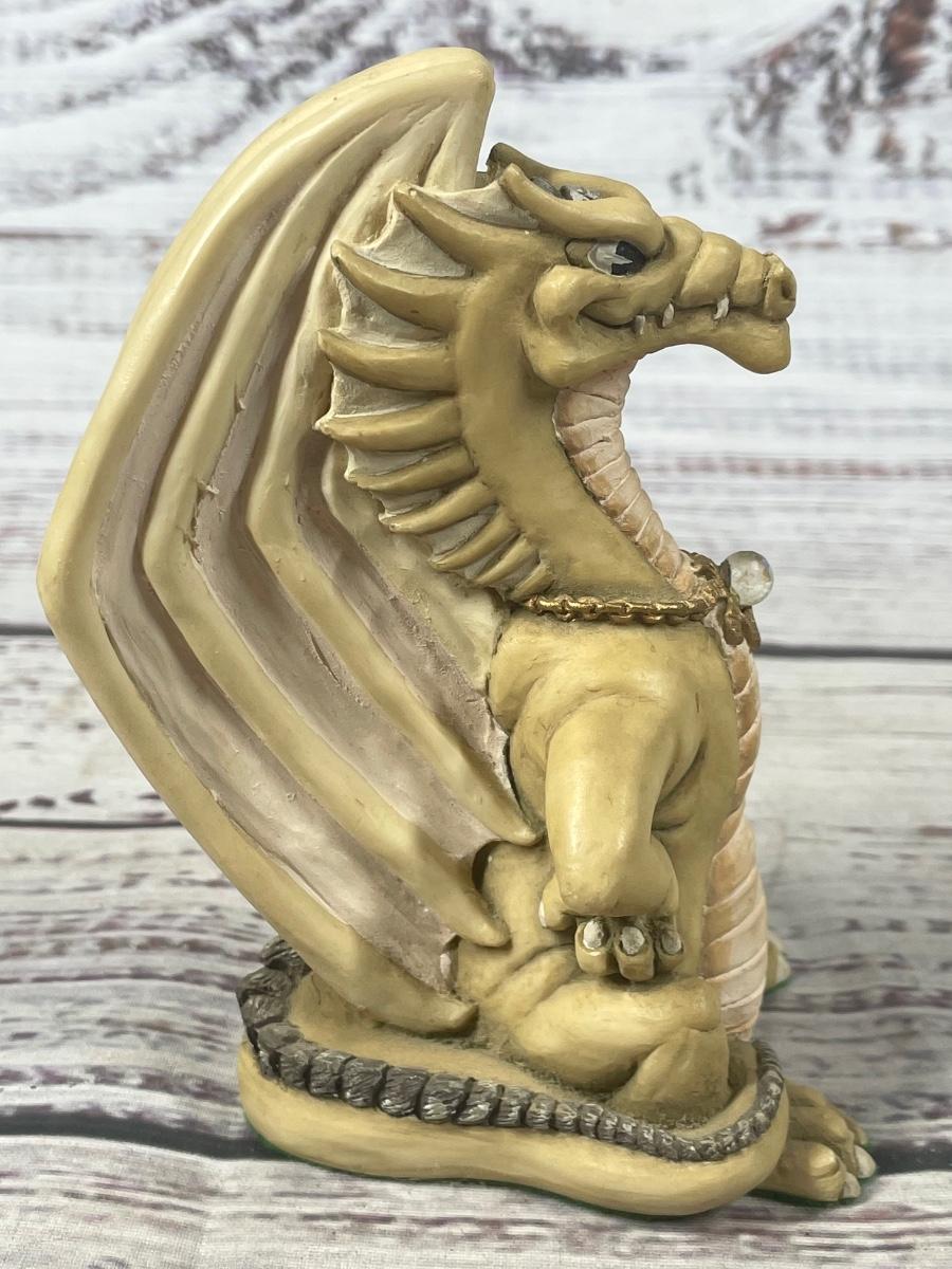 Krystonia Mythical Creature N'Grall Beige Fierce Standing Dragon with Crystal Orb Figurine