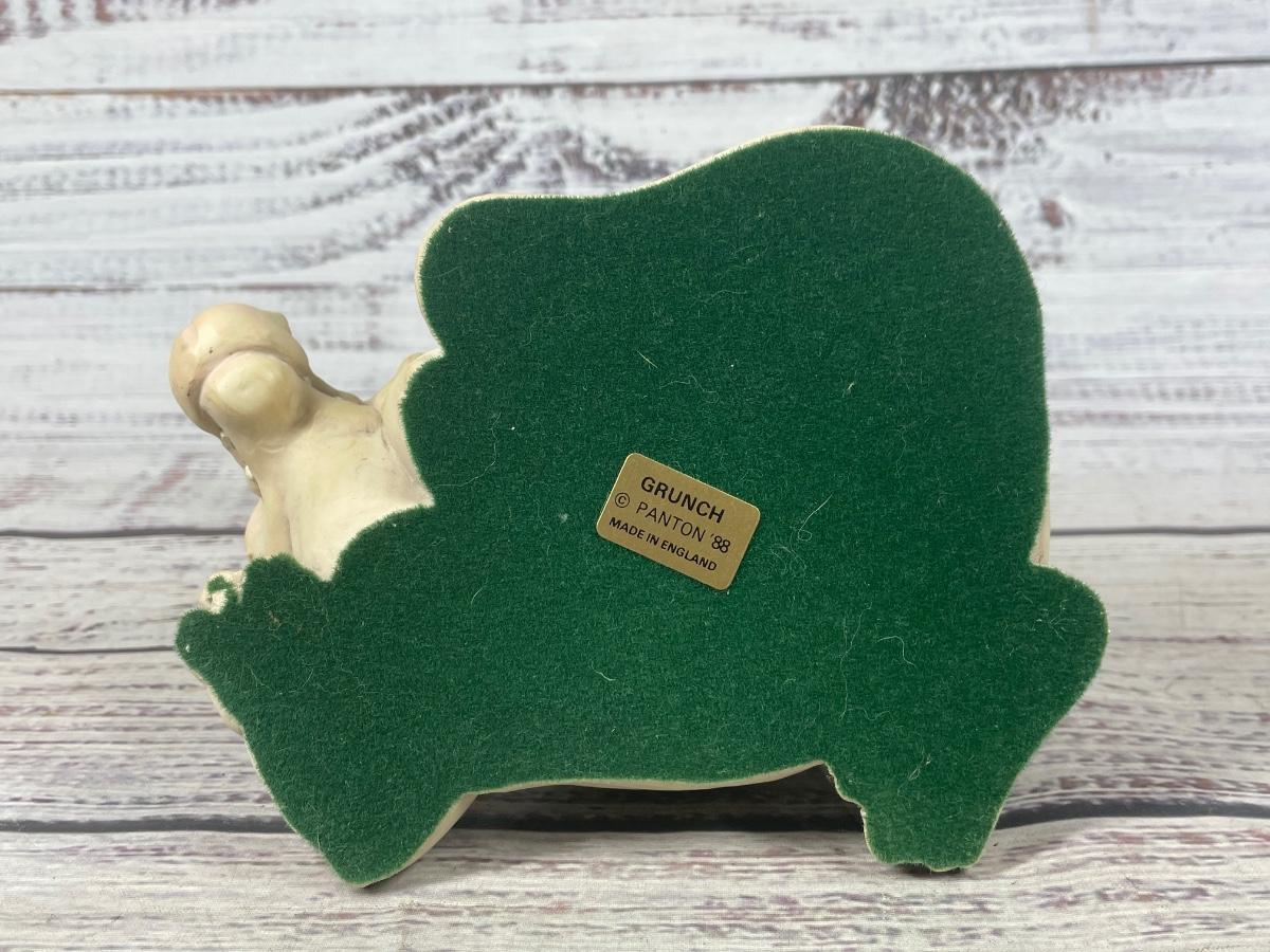 This item is in good condition, but has some discoloration here and there. There is felt on the bottom of the statue to prevent it from scratching. It is approximately 6” wide & 3.5” tall. The statue was made in England.