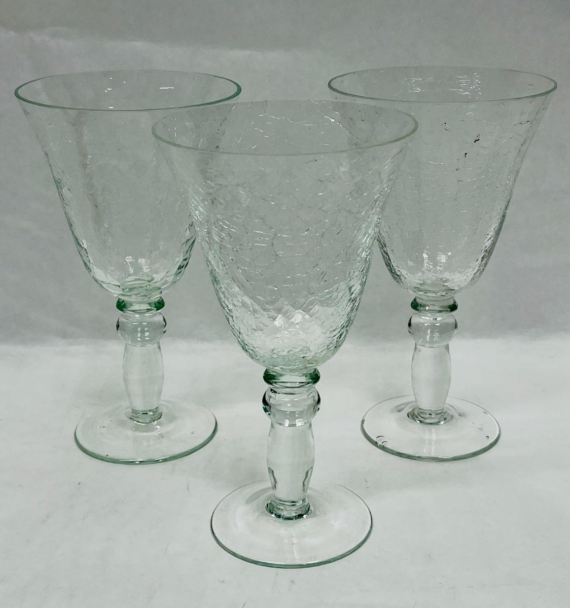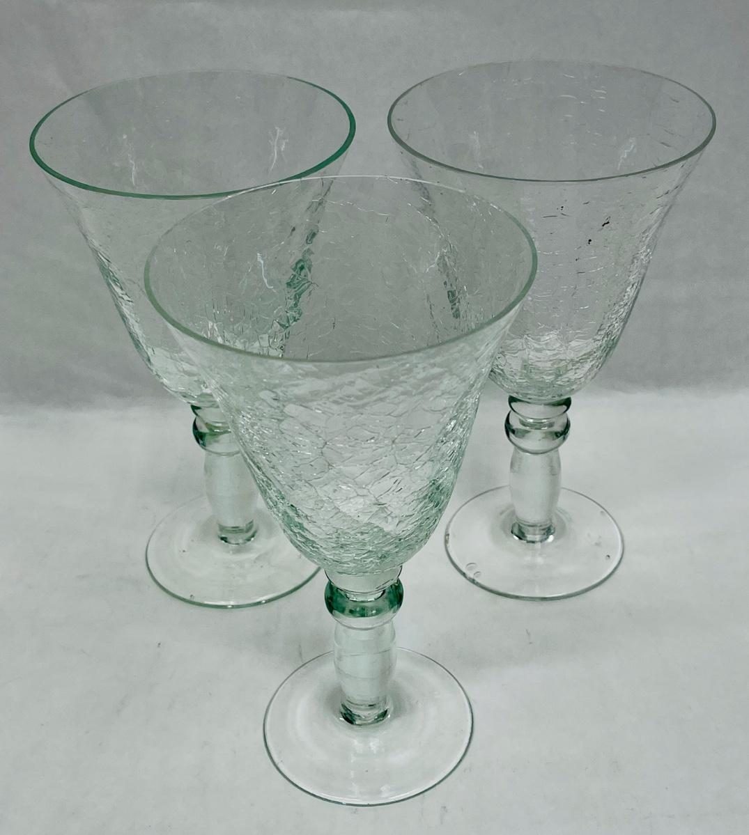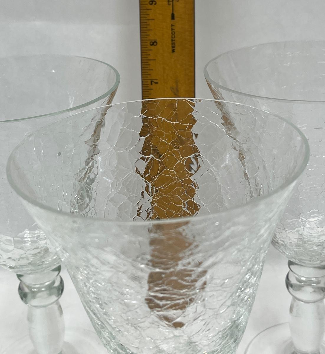 Lot of 3 Crackle Clear Glass Wine Goblets stemware