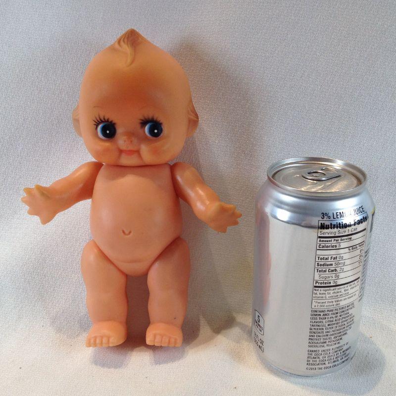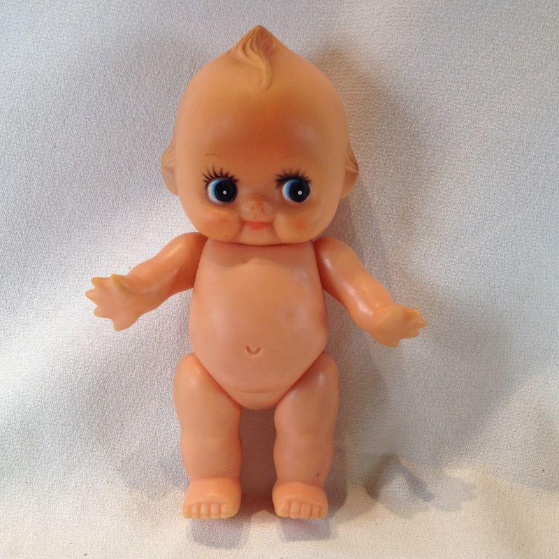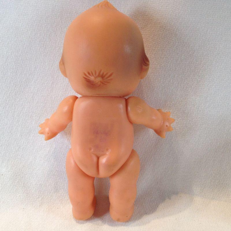 This little vintage baby - molded in the Kewpie Doll fashion, is in very good condition. Just waiting for someone to love and cloth her. Found stashed on an upper shelf in our client's closet, she has been long orphaned and is looking for a new home.