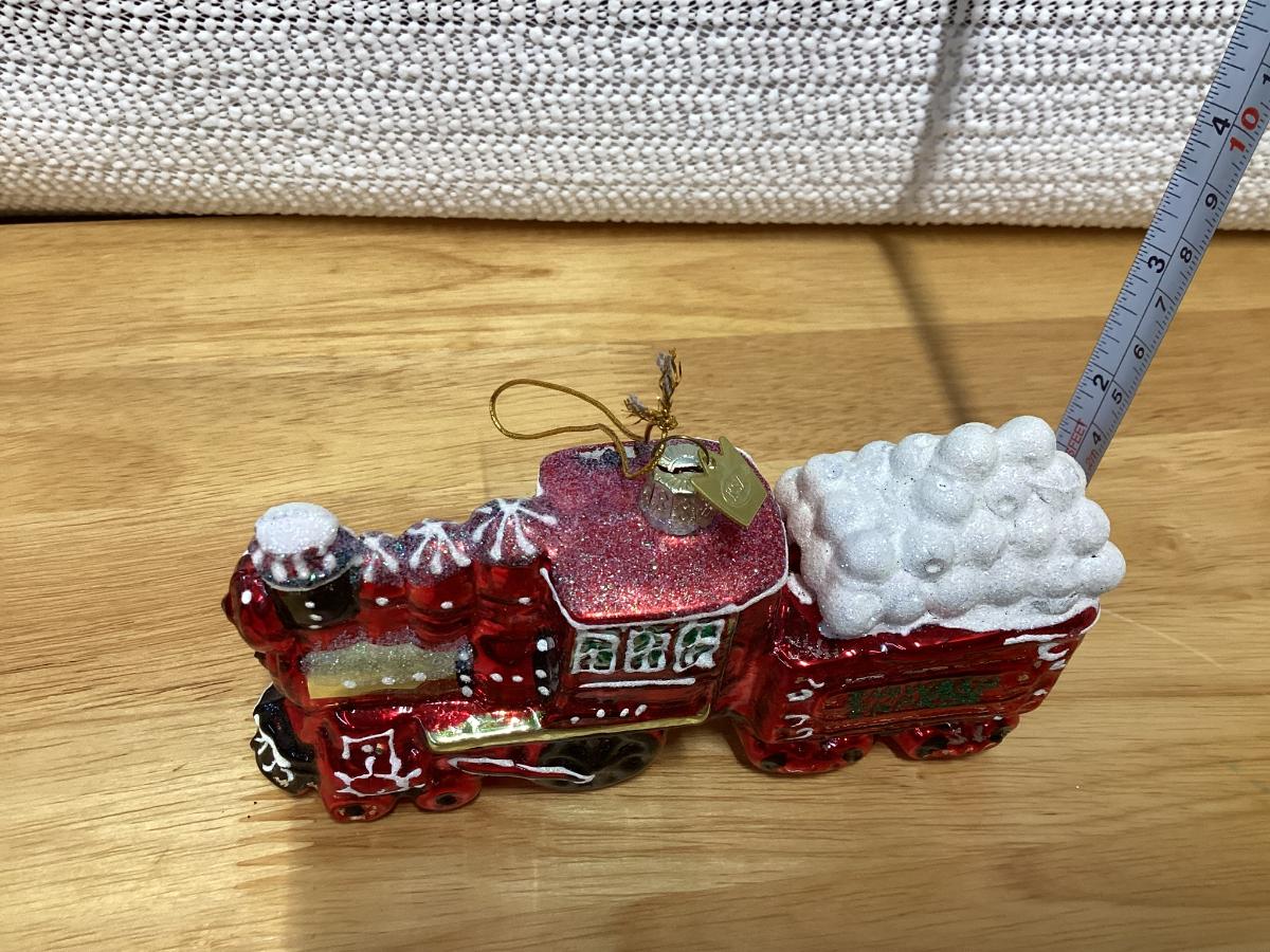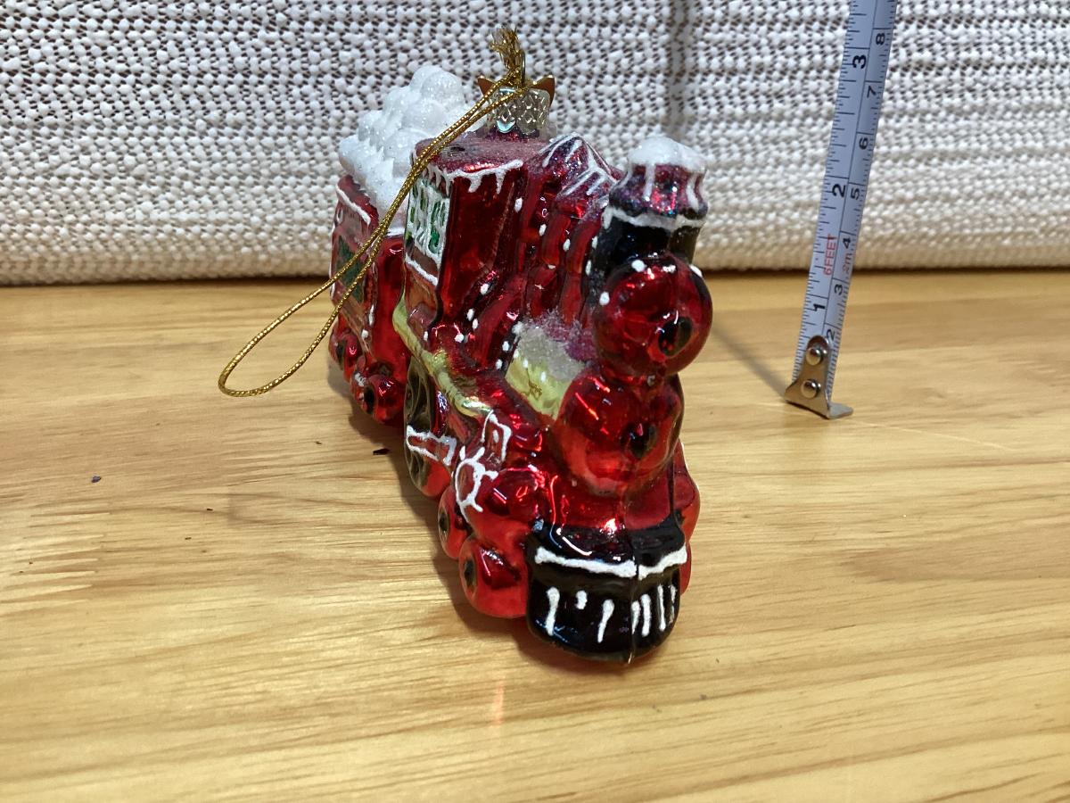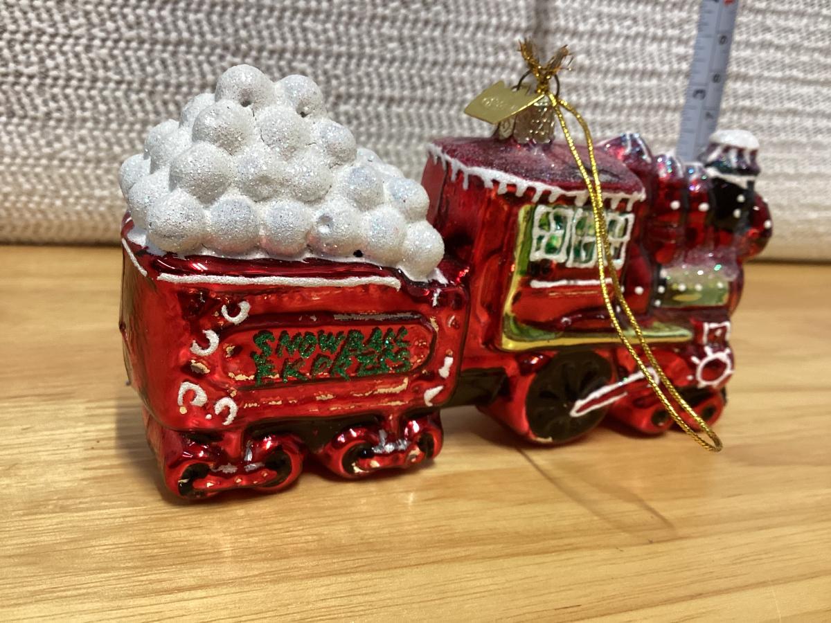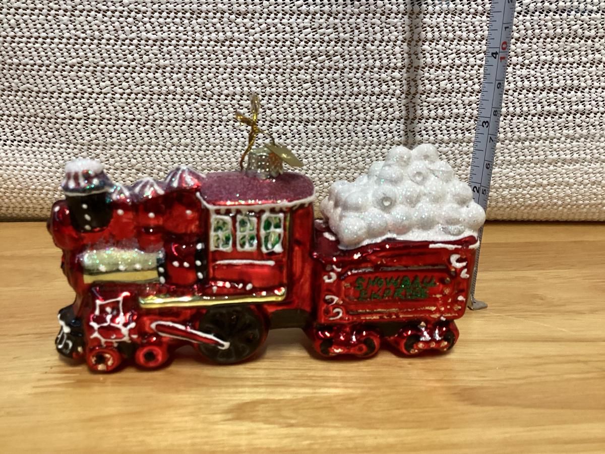 Kurt Adler Noble Gems Snowball Express red train engine glass ornament.