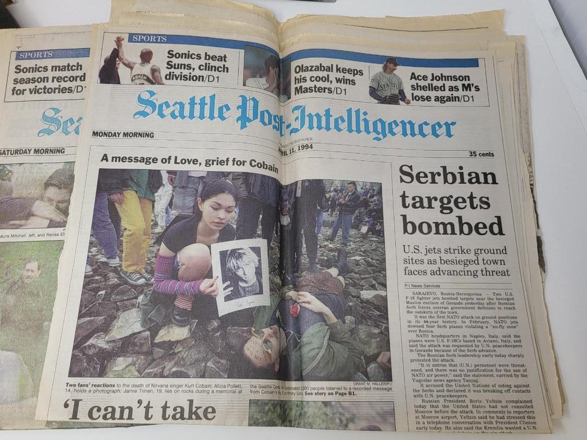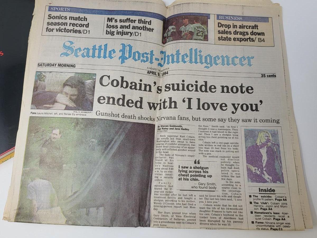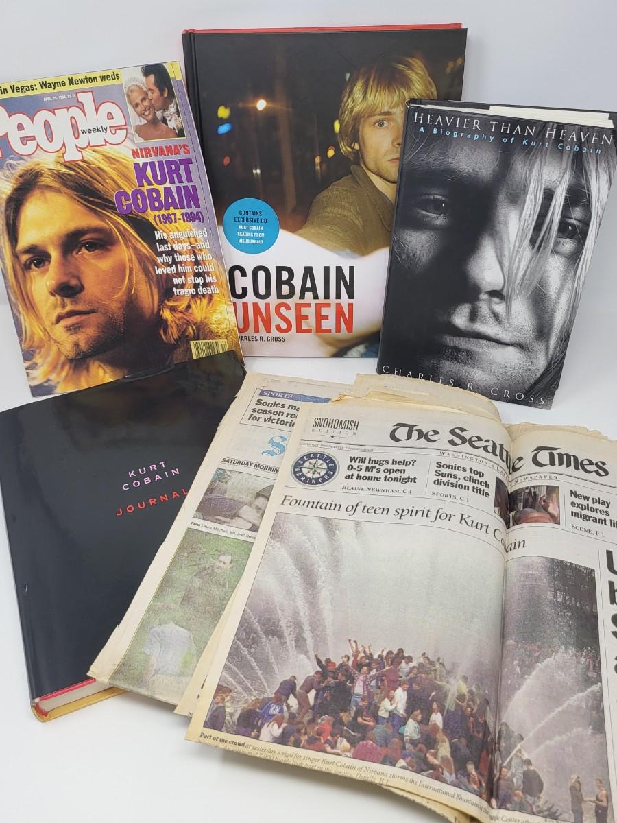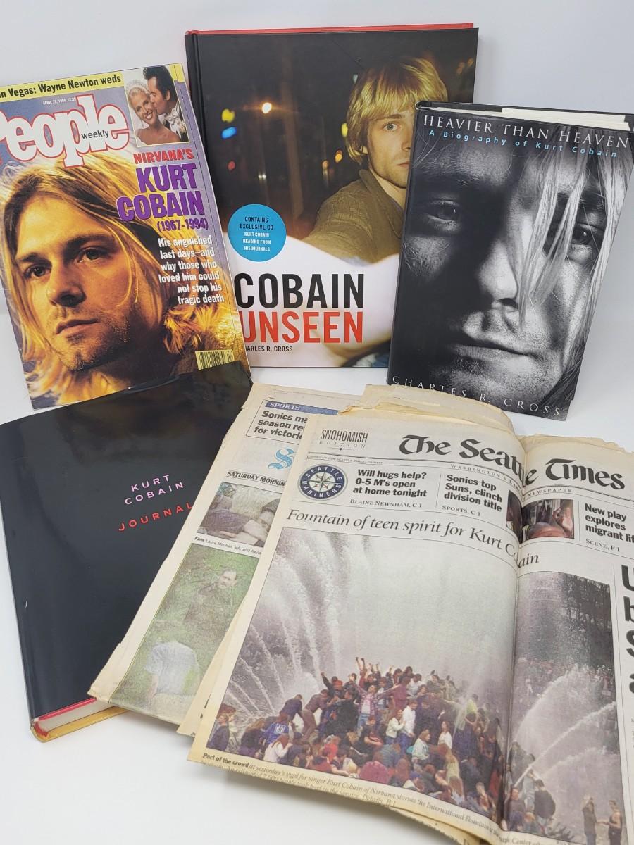 Three Books, People magazine, and several local newspaper articles about Kurt Cobain's life and tragic death 30 years ago.