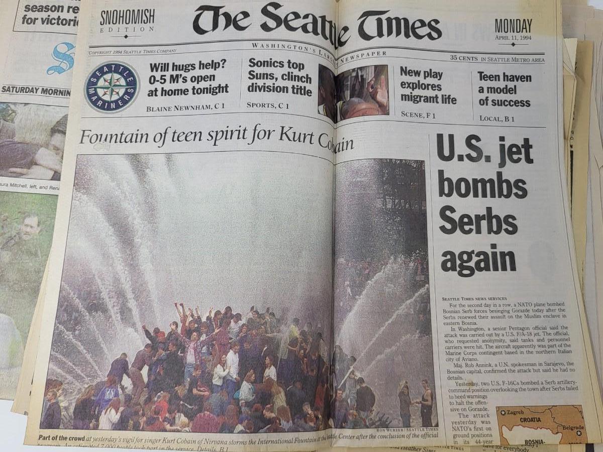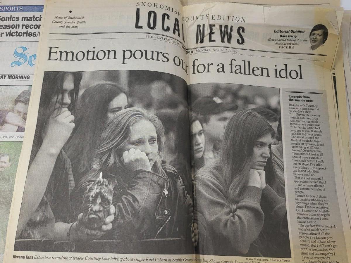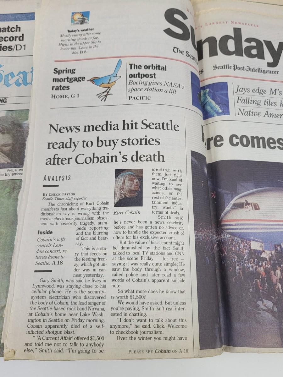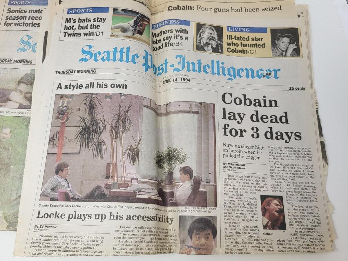 Three Books, People magazine, and several local newspaper articles about Kurt Cobain's life and tragic death 30 years ago.