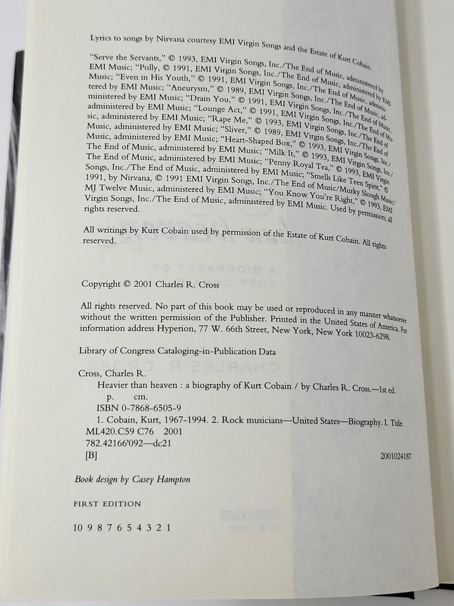 Author, Charles Cross book, Heavier Than Heaven. 2002 edition Kurt Cobain Journals. Cobain Unseen, book, has CD and features reproductions of Kurt Cobains writings & illustrations. Original newspaper articles, and People magazine.