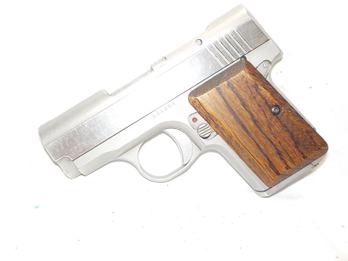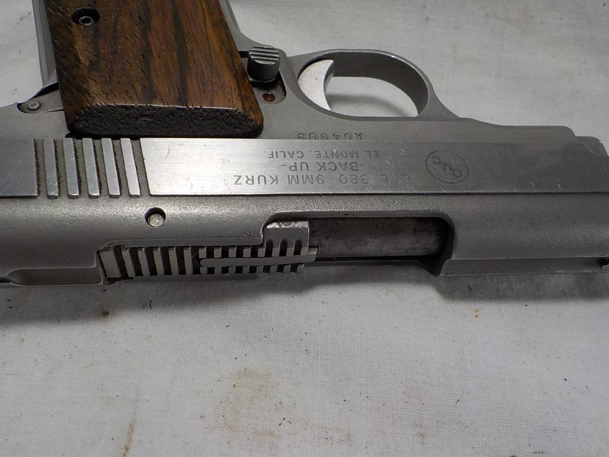 Kurz 9mm backup , metal design, stainless steel, V513, 2 in . barrel, metal mag, excel wood grips and smooth action , no patina and has a holster.