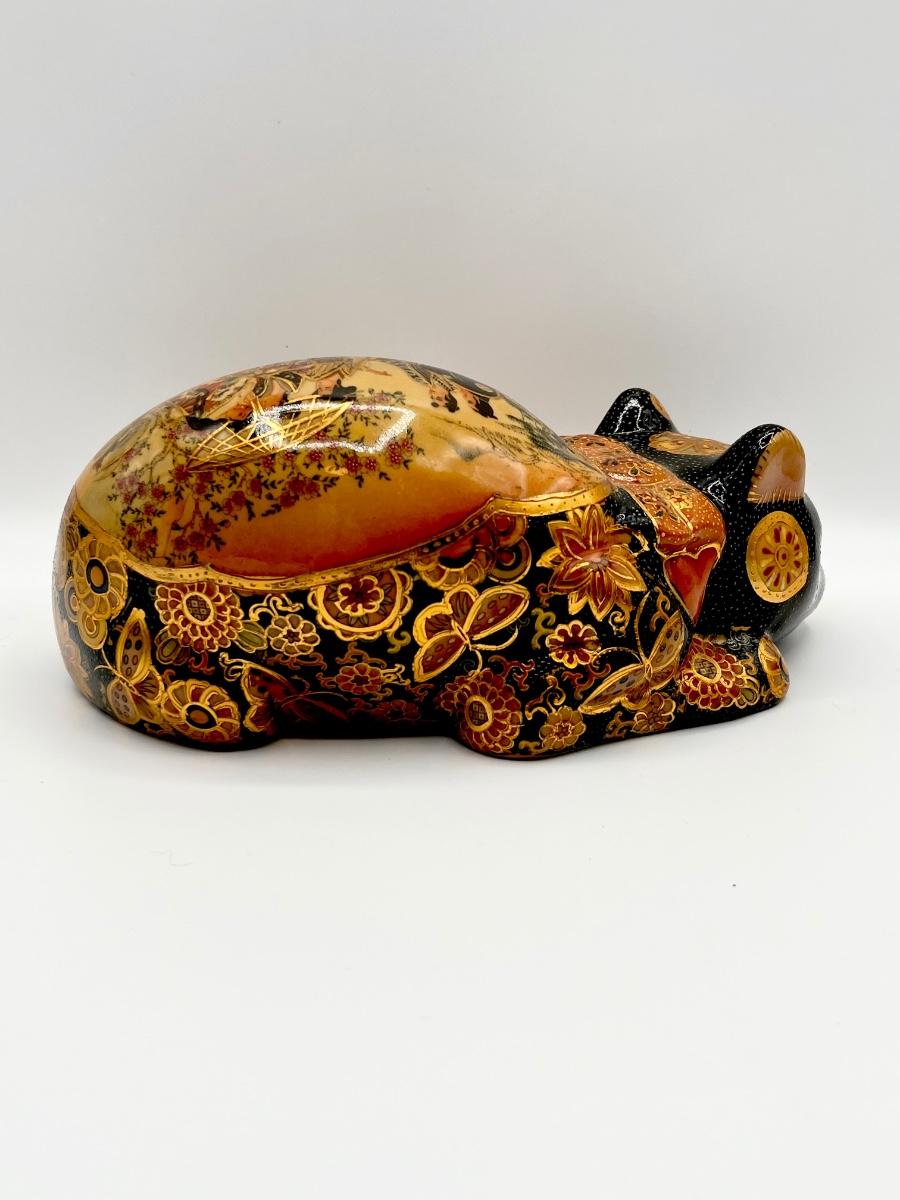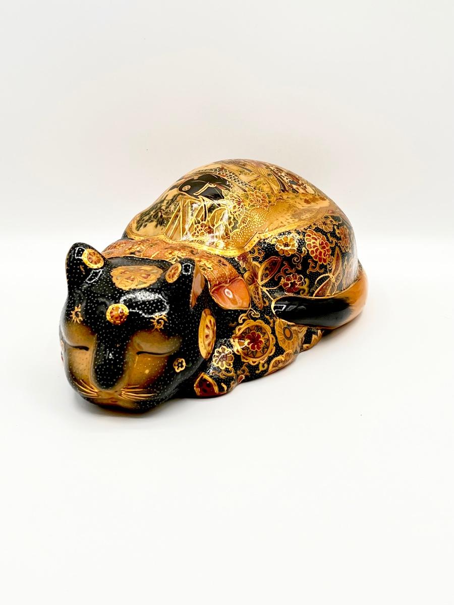Kutani Japanese Sleeping Cat Porcelain Figurine