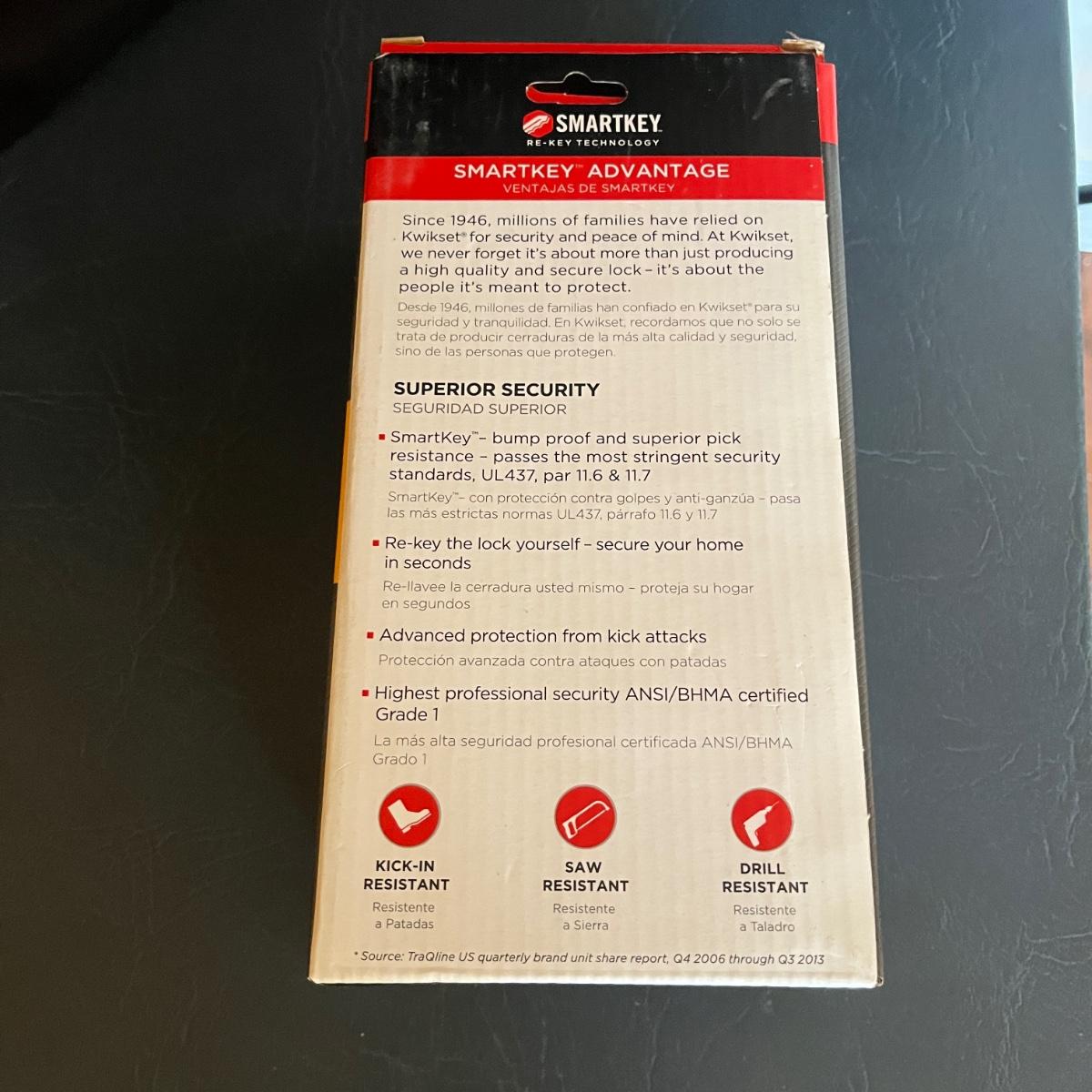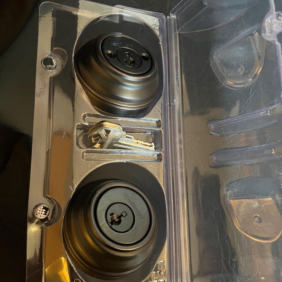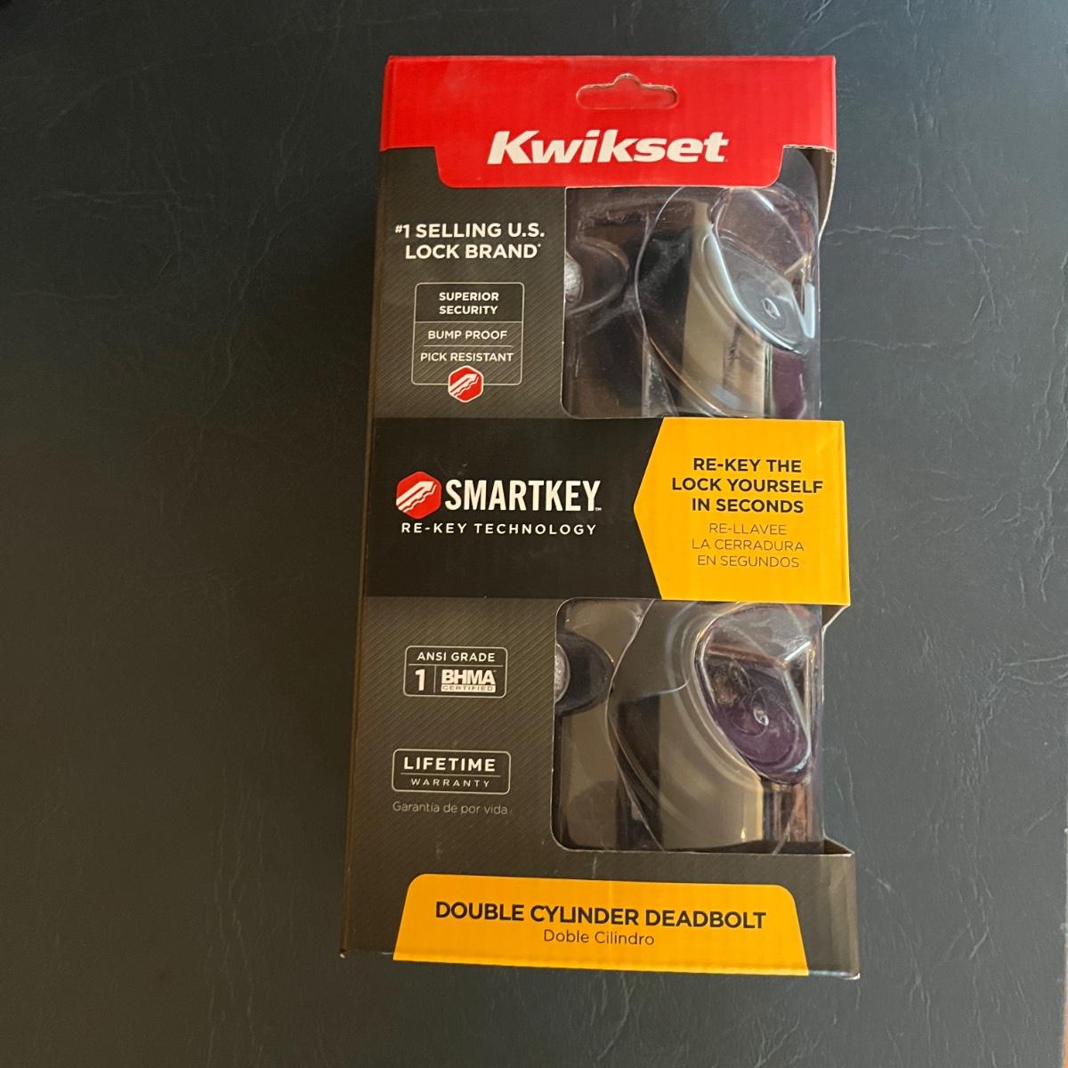 Lot includes a NIB Kwikset Smartkey double cylinder deadbolt in bronze.