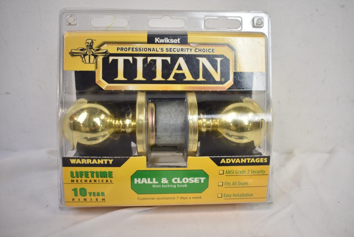 Kwikset Titan Hall/Closet NON-Locking Knobs, Gold Finish