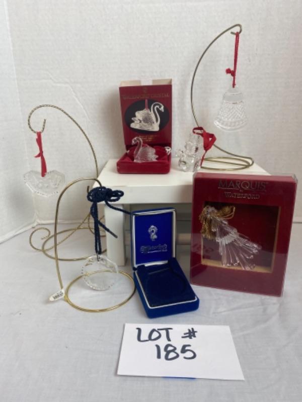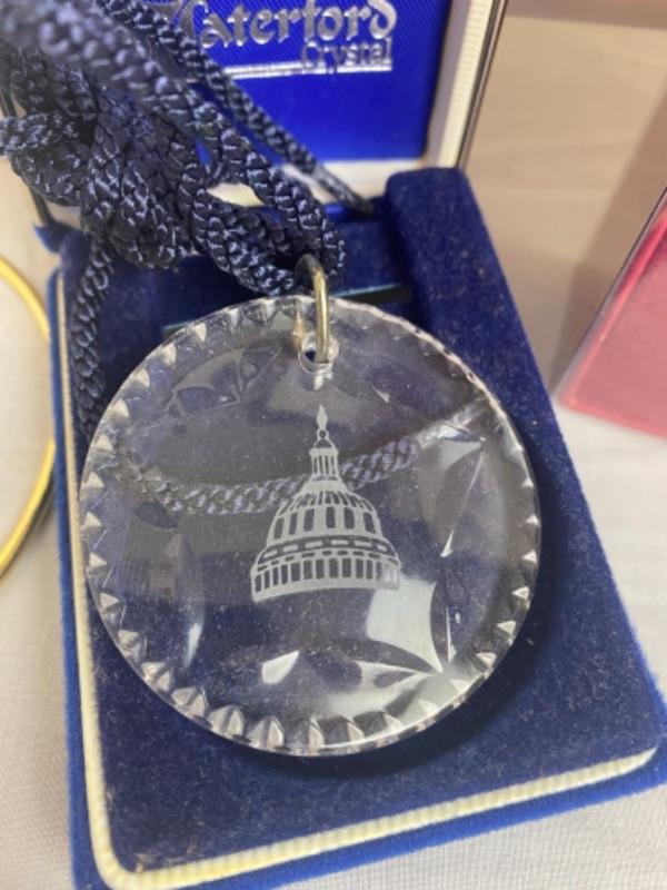 Waterford capitol necklace, 5 ornaments and one Waterford marquis tree ornament