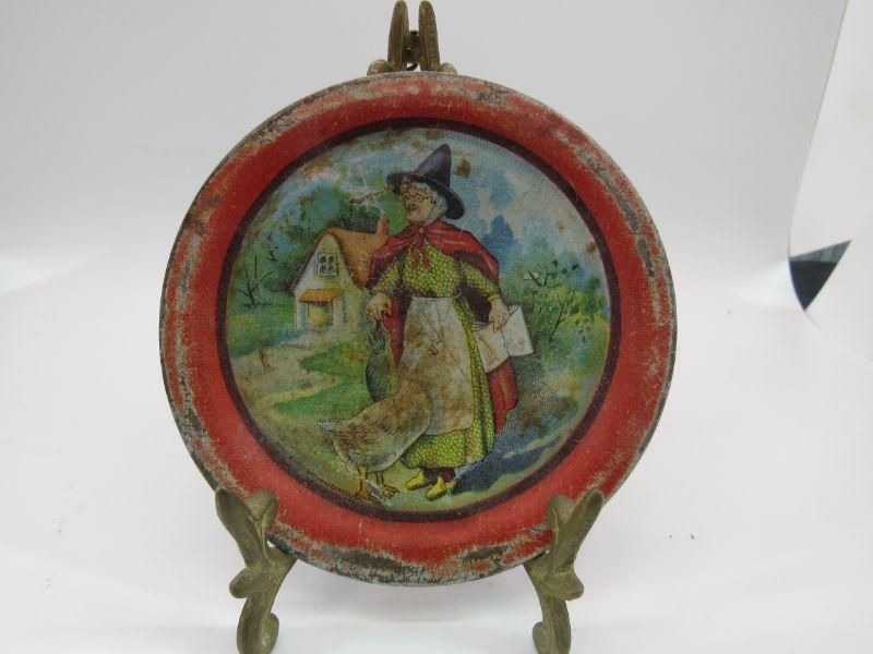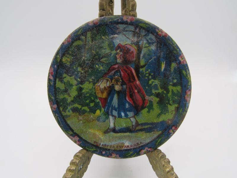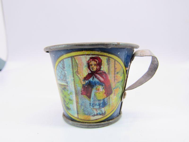 Antique Mother Goose Red Riding Hood Children's Litho Tin Tea Lunch Plate Cup
